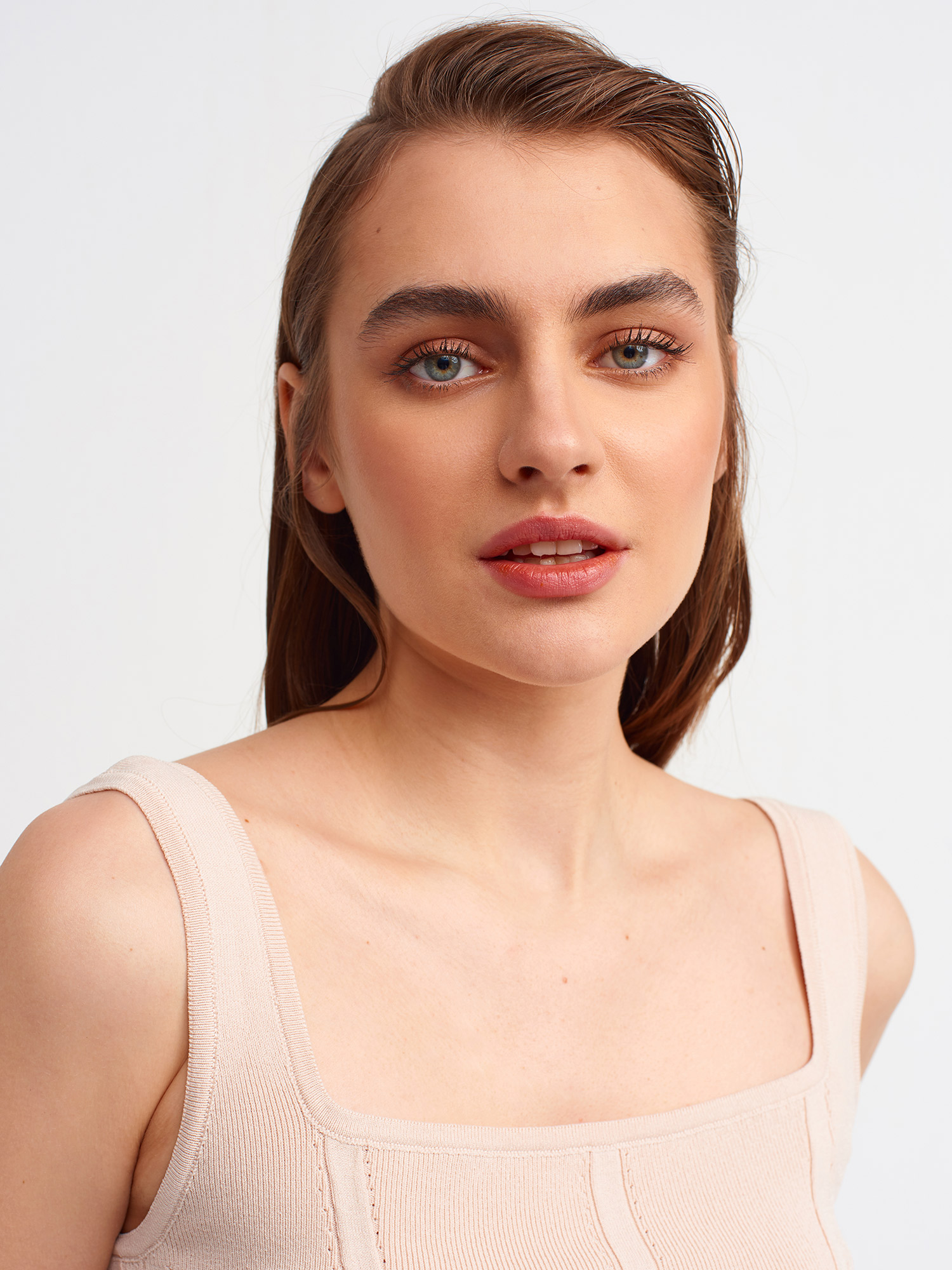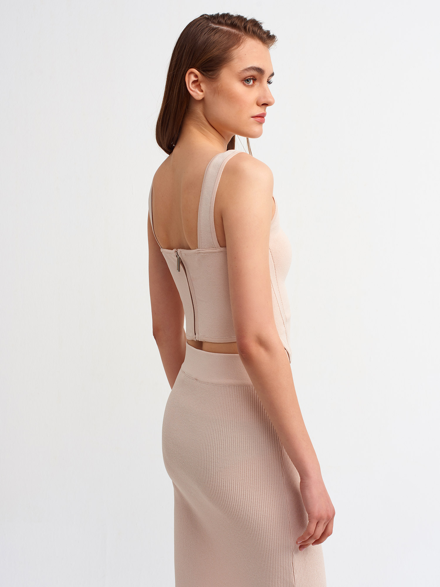 1019 Arkası Fermuarlı Triko Atlet-Bej