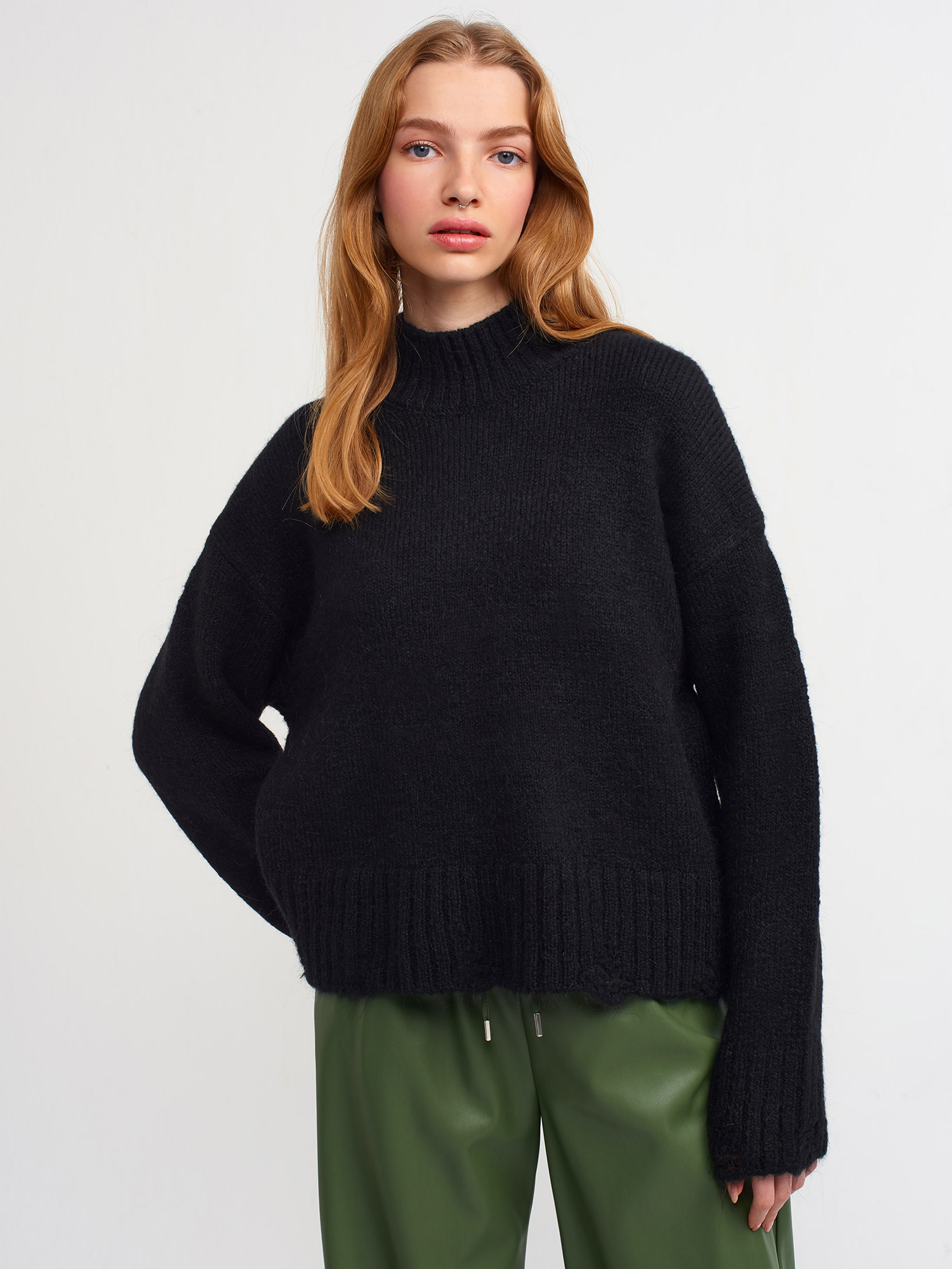 10296 Kol Uçları Yırtık Kazak-Siyah