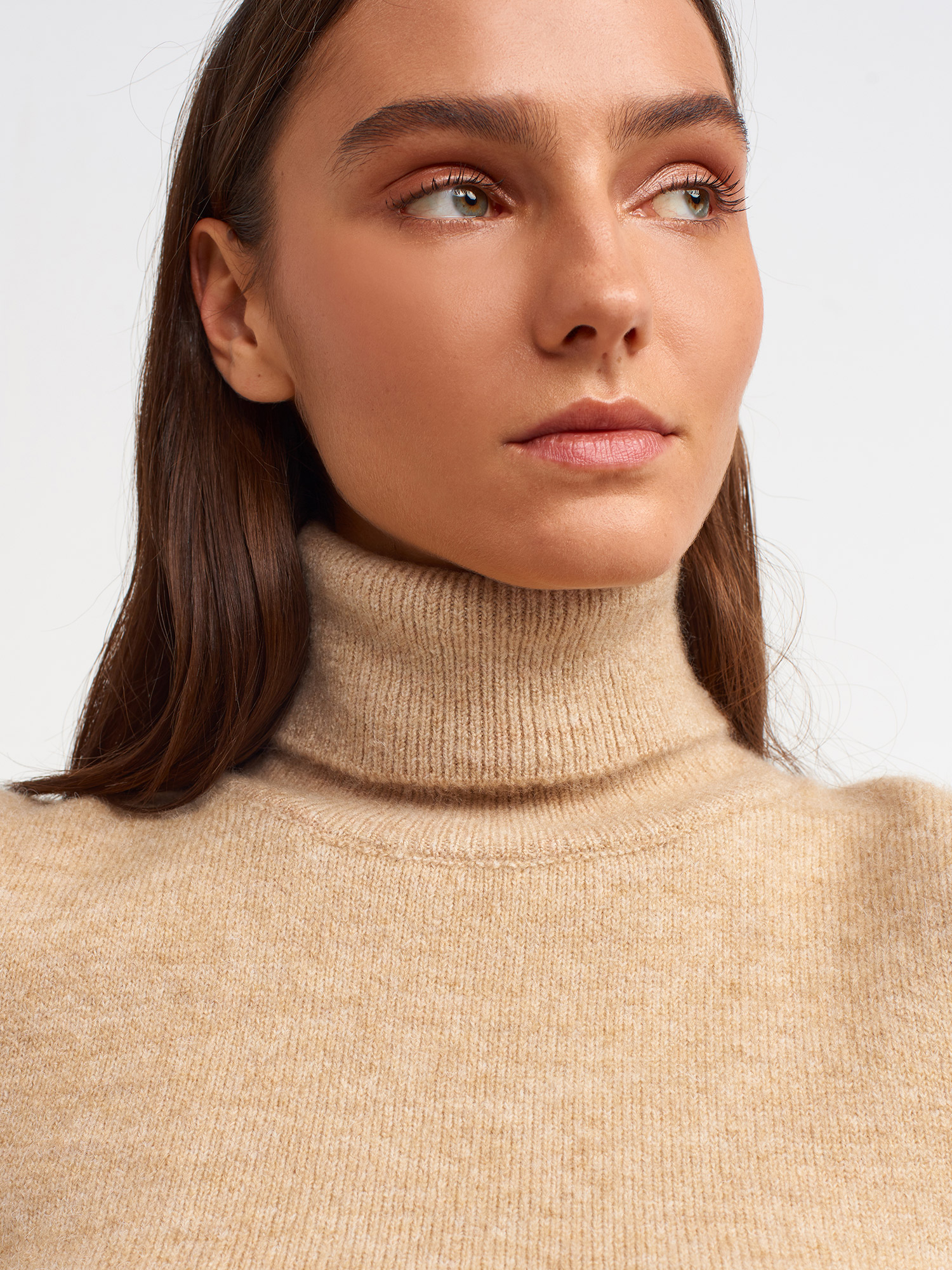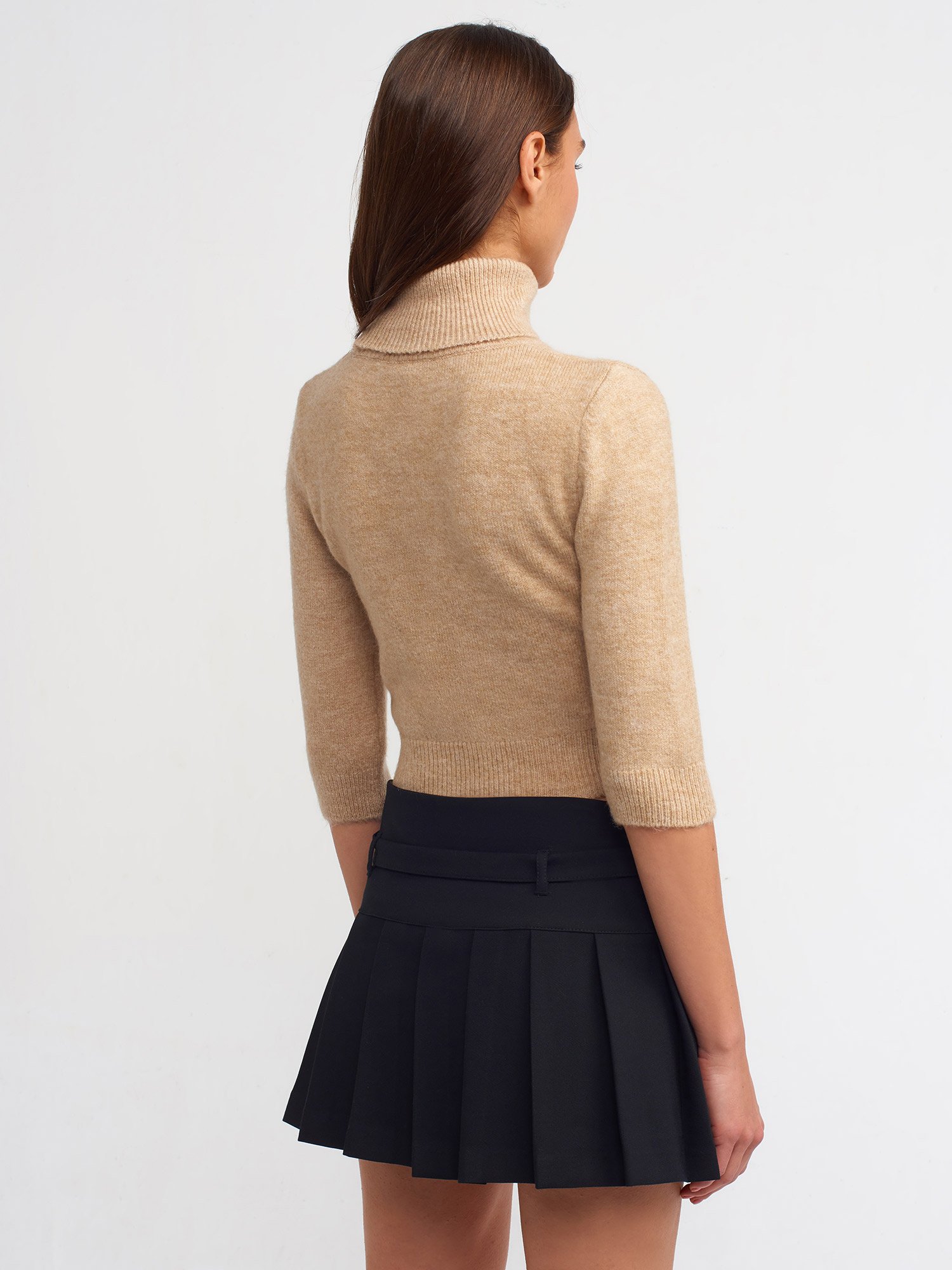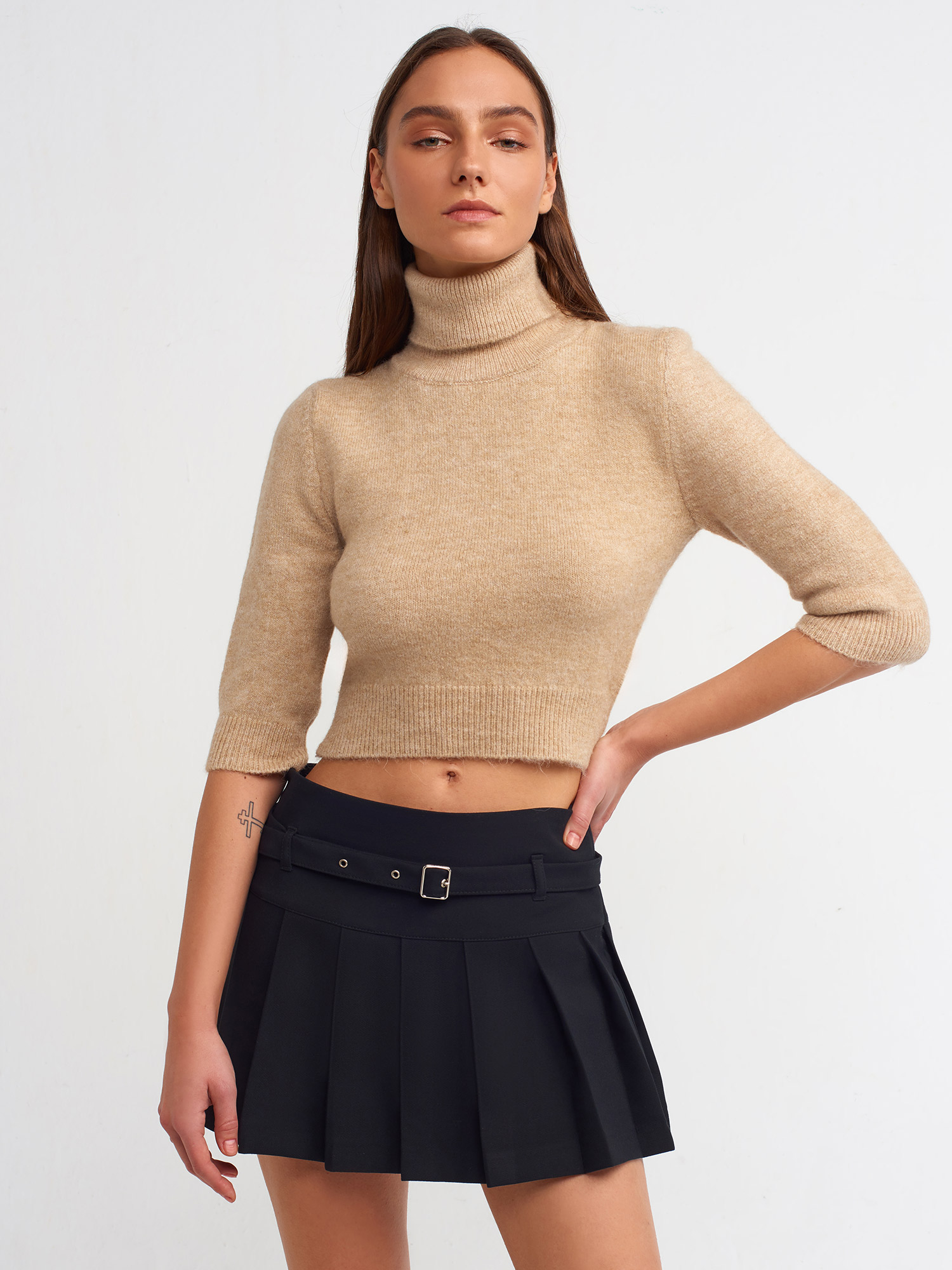 10306 Balıkçı Yaka Kısa Kollu Crop Kazak-Bej