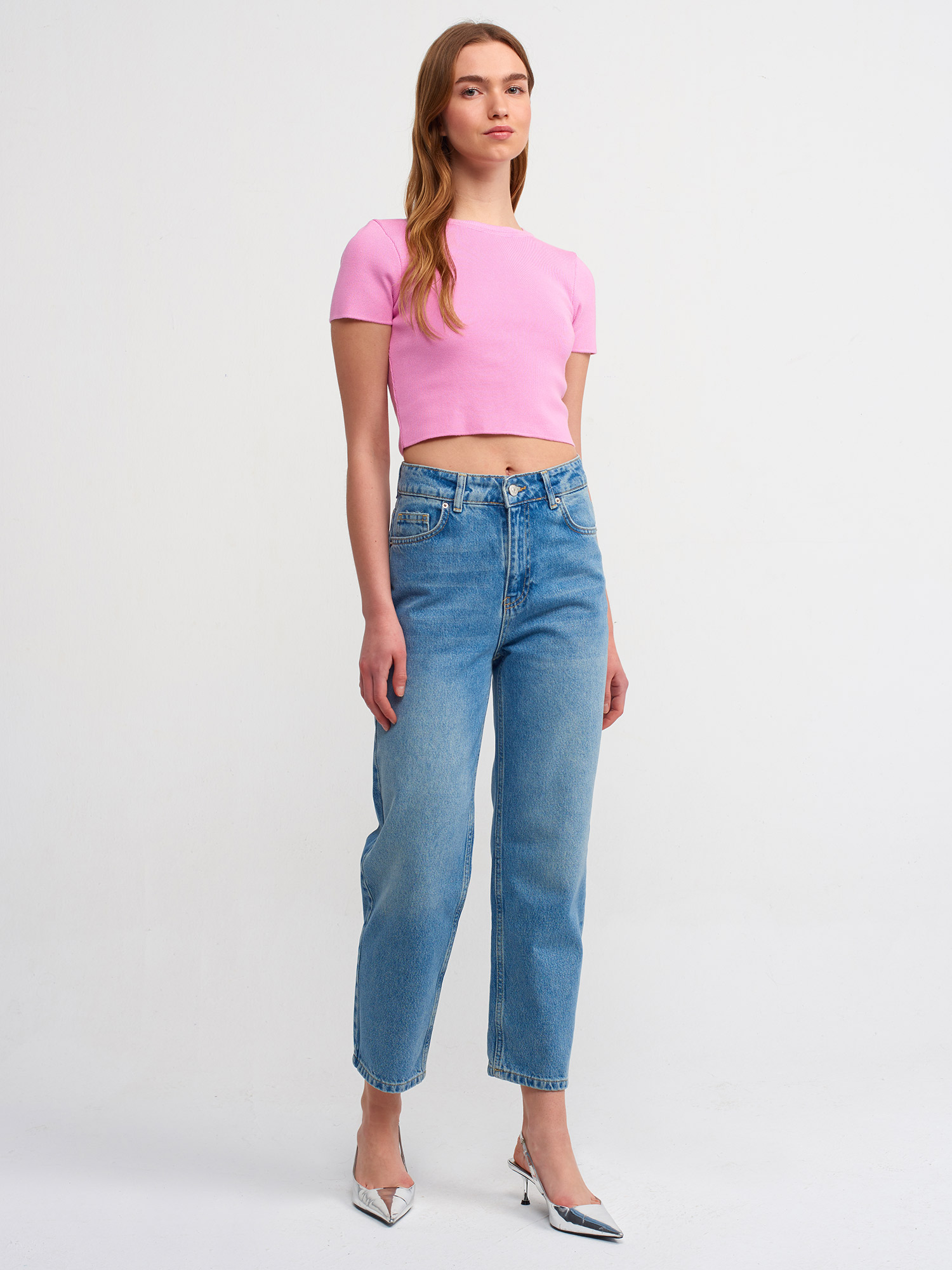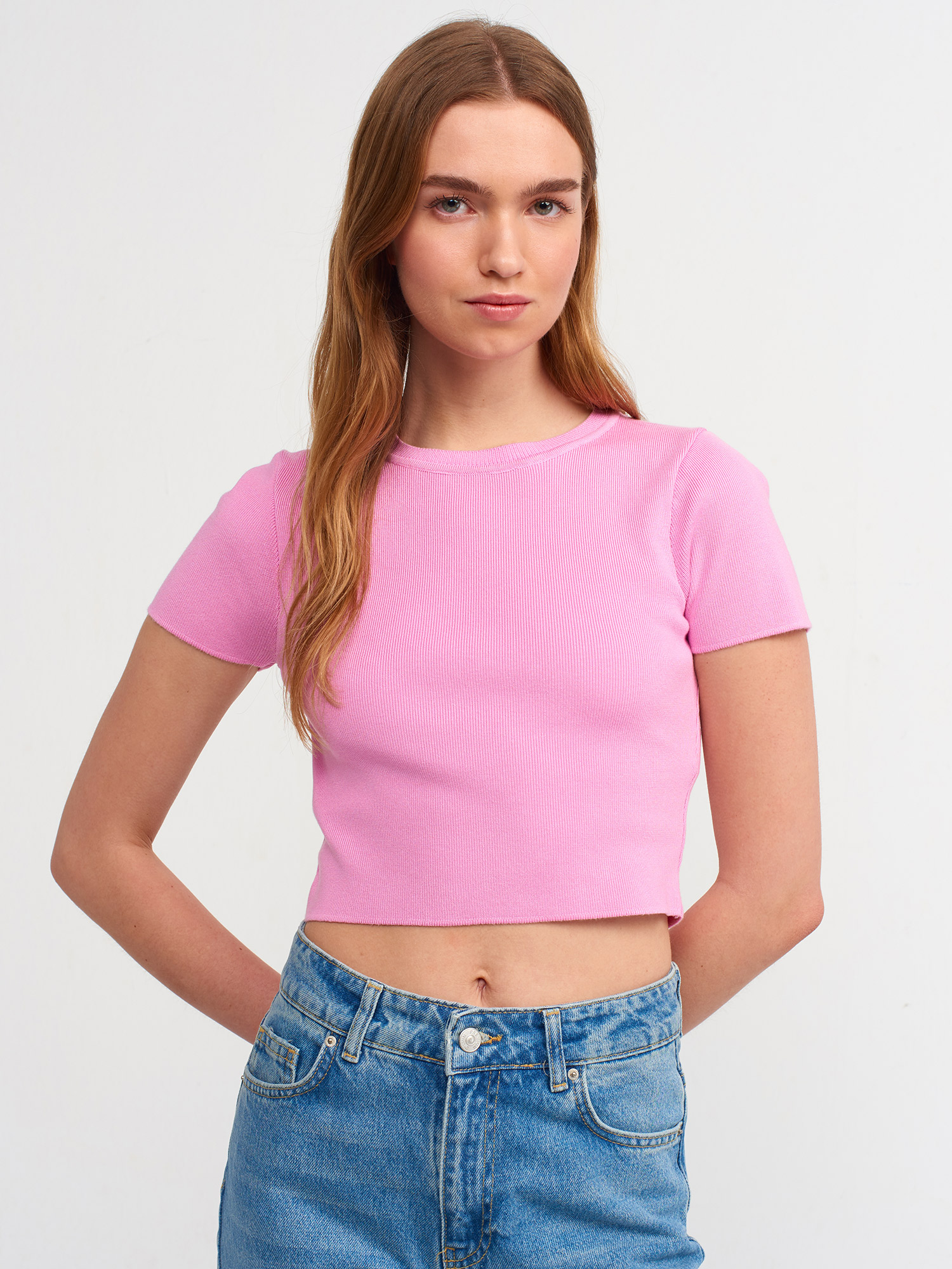 10357 Bisiklet Yaka Kısa Kol Crop Kazak-Pembe