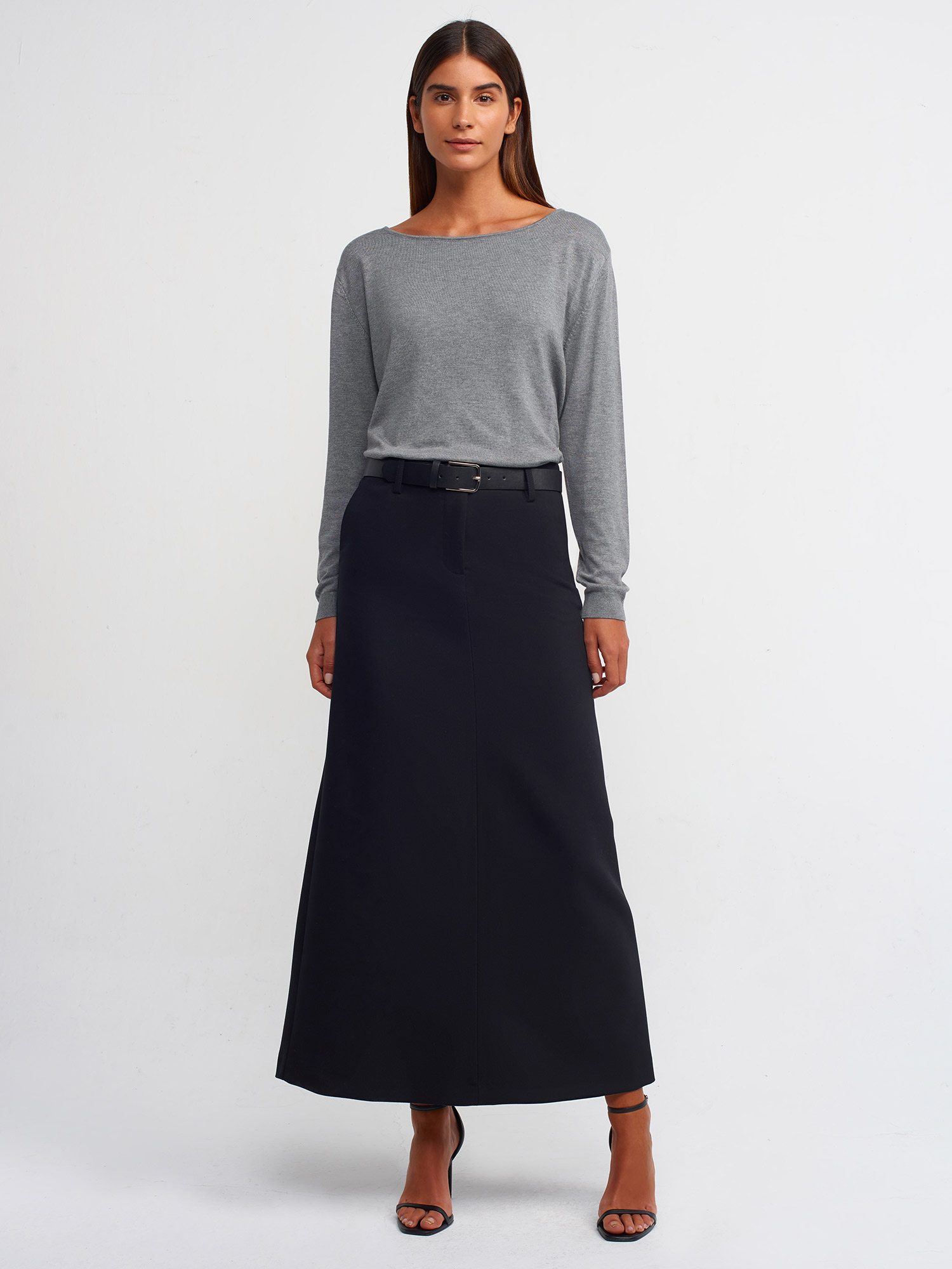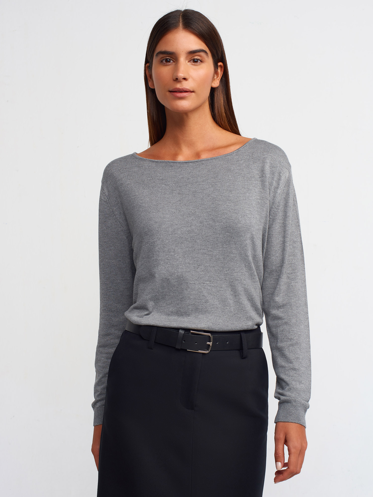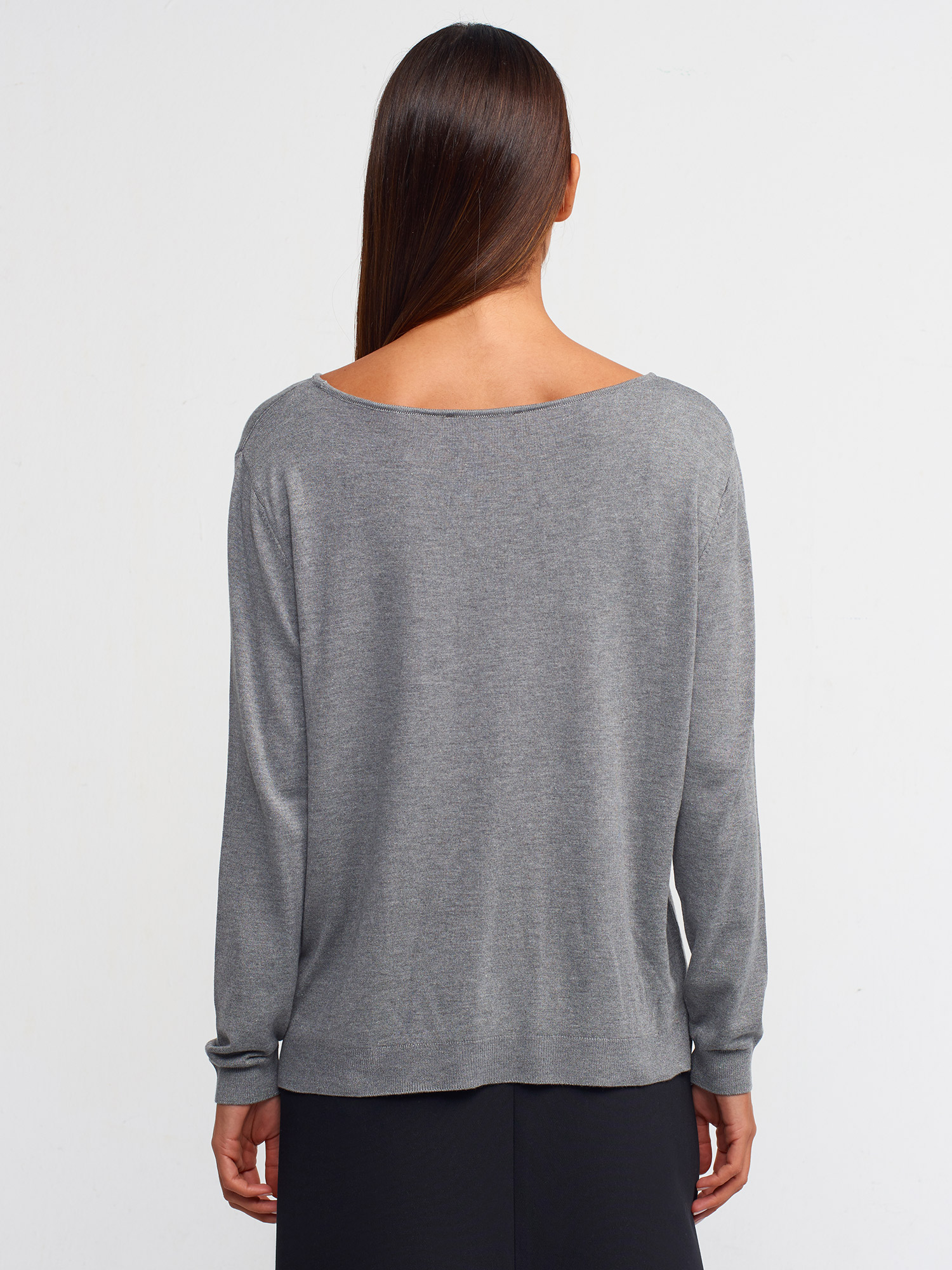 10360 Kayık Yaka Yırtmaçlı Kazak-Füme M.
