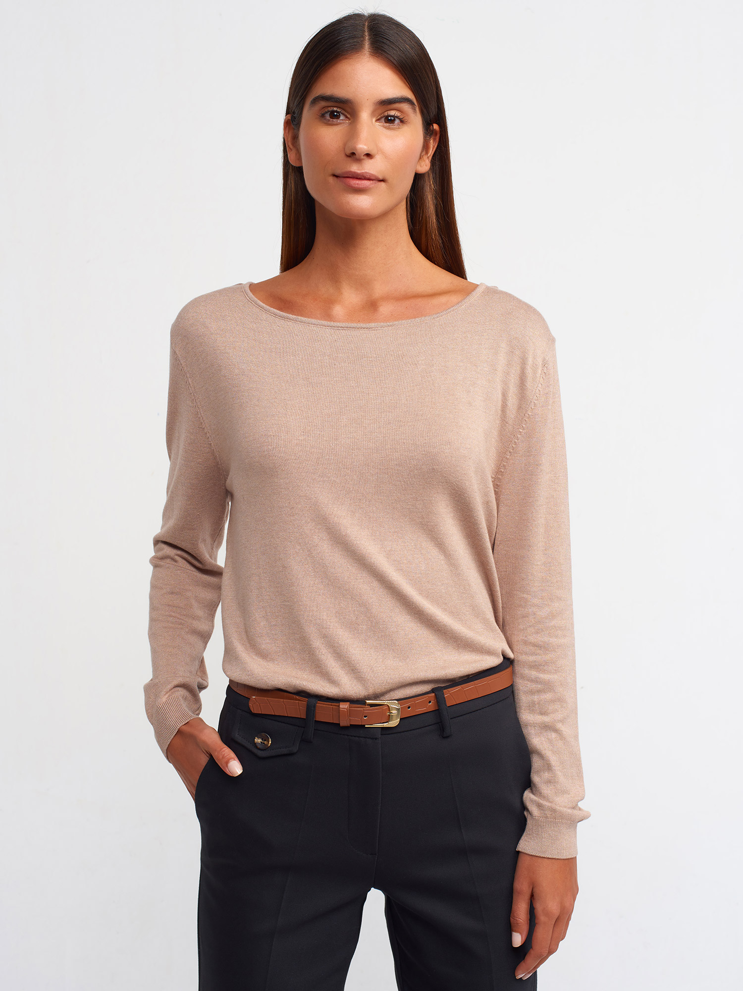 10360 Kayık Yaka Yırtmaçlı Kazak-Vizon M.