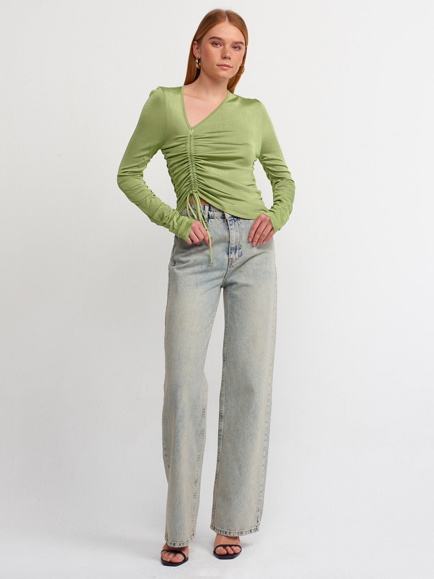 10364 Yanı V Önü Büzgülü Kazak-Yeşil