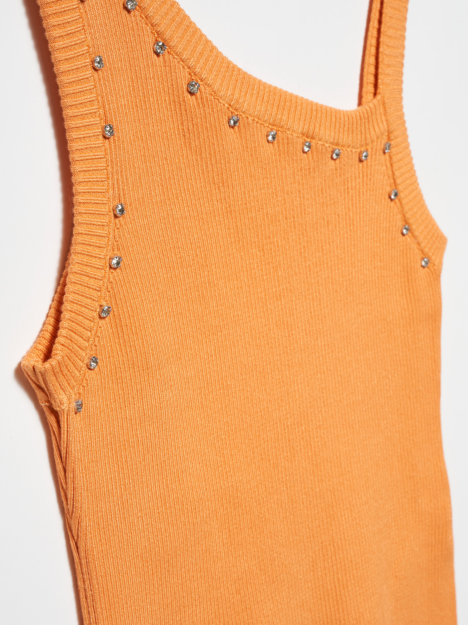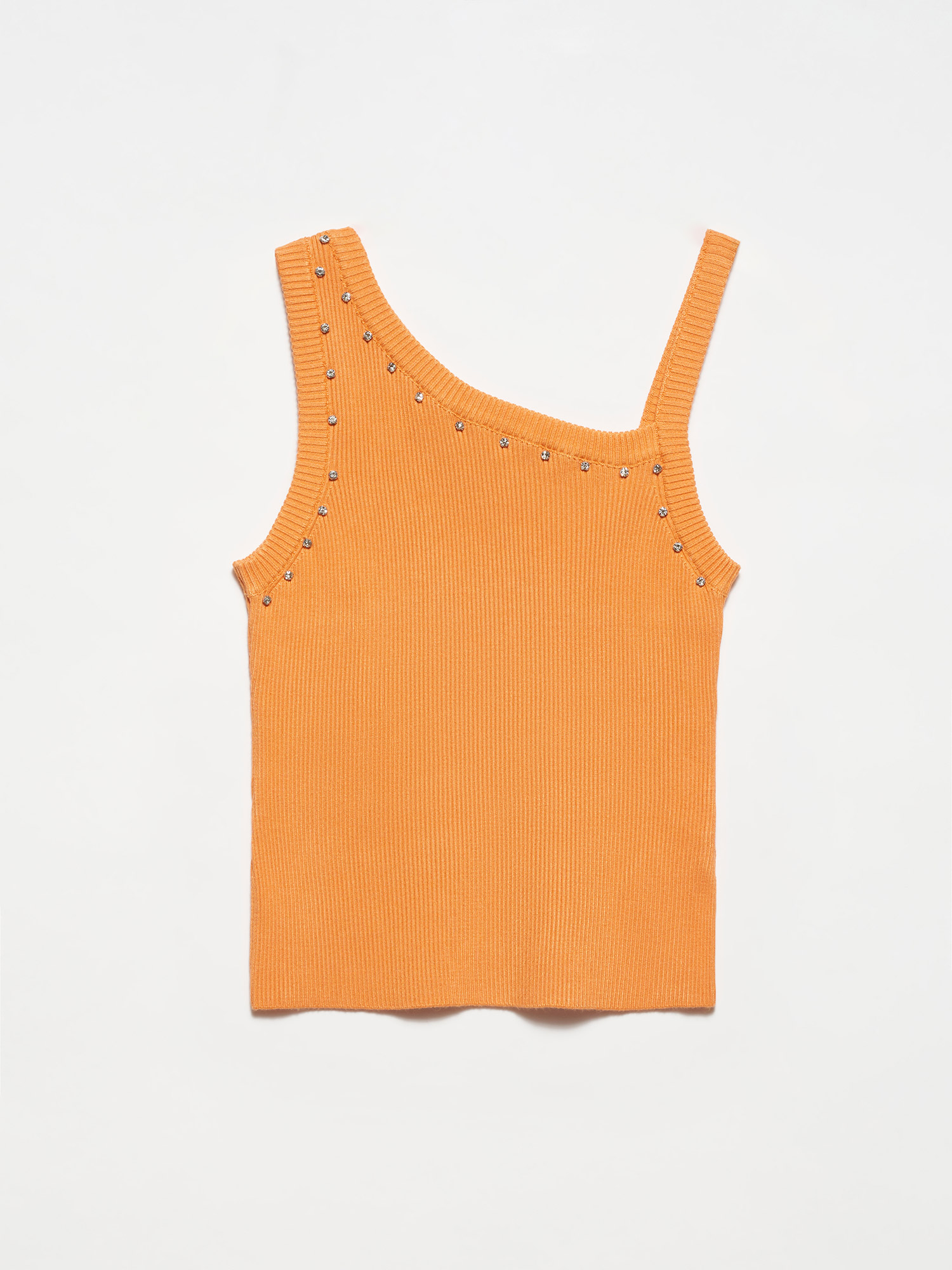 10385 Yaka Kol Kenarı Taşlı Triko Atlet-Turuncu