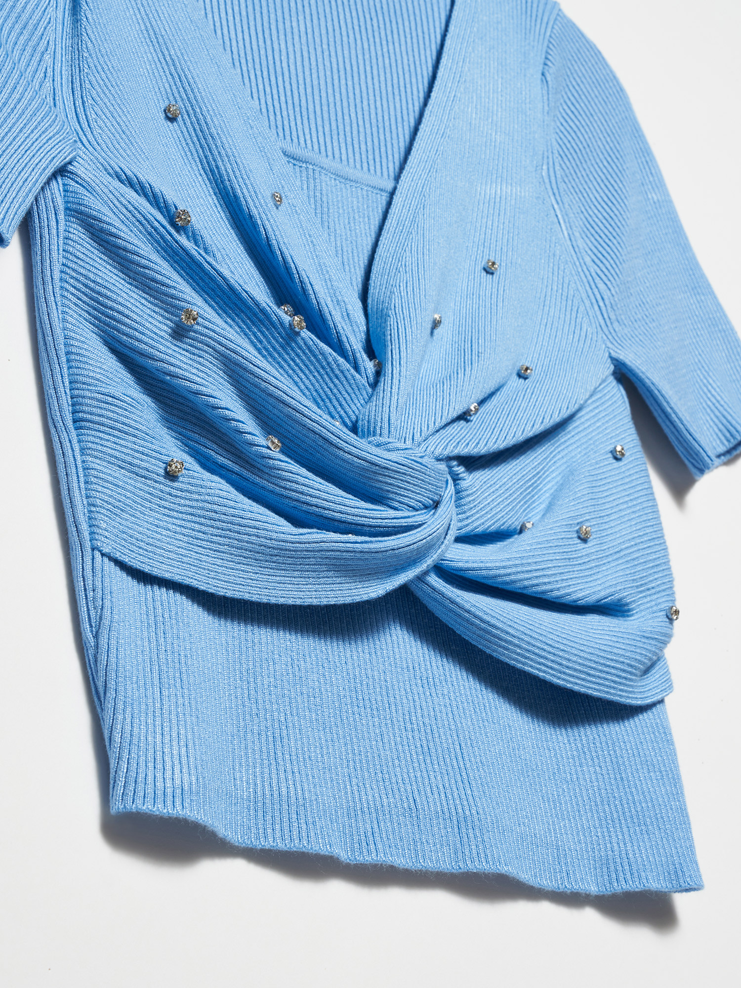 10389 Önü Taşlı Triko Kazak-Açık Mavi