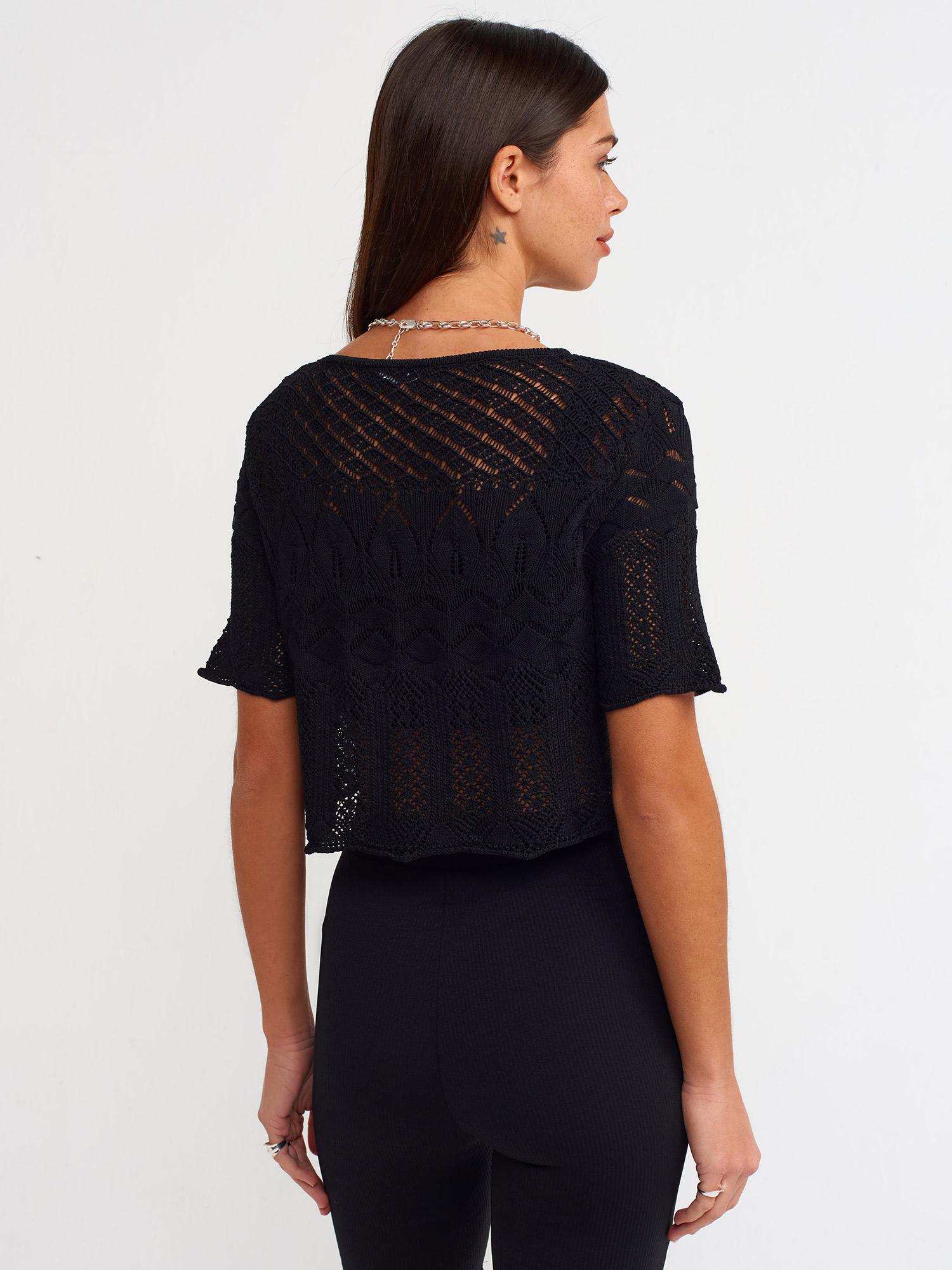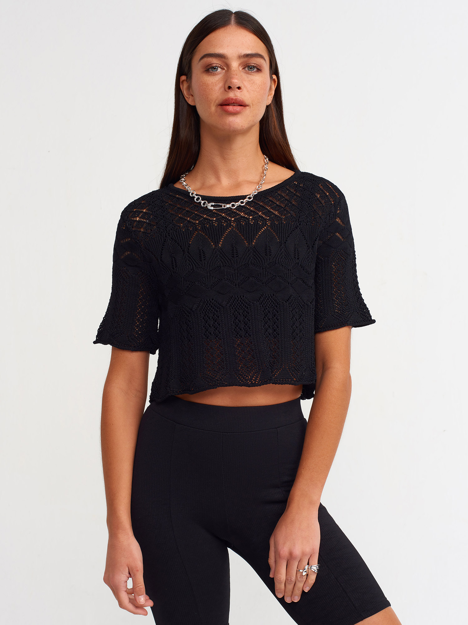 10394 Kayık Yaka Kısa Kol Crop-Siyah