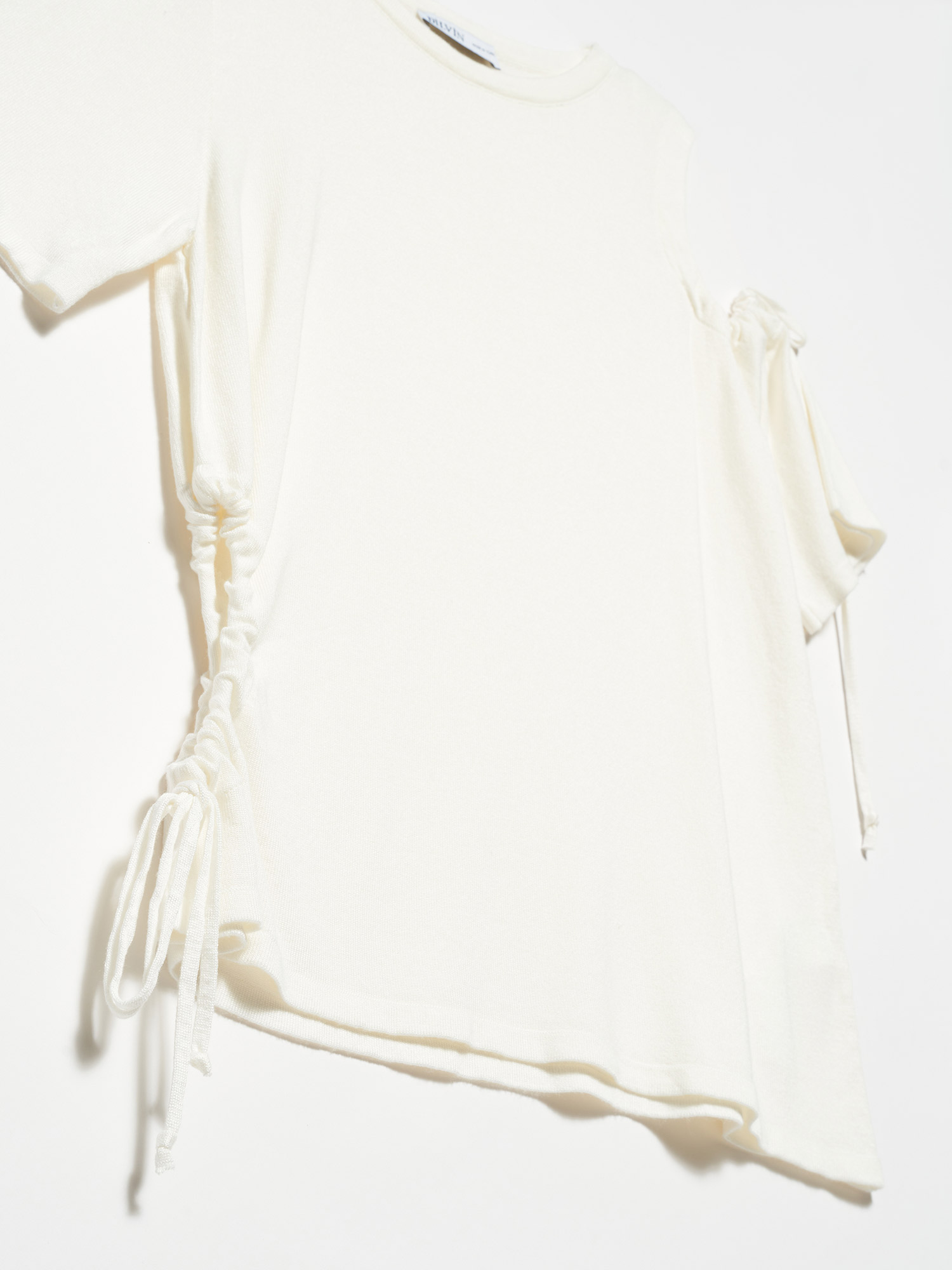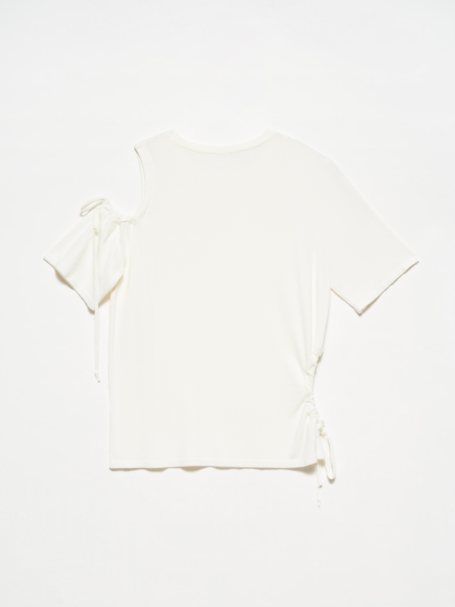 10400 Bisiklet Yaka Sol Omzu Açık Kısa Kol Kazak-Ekru