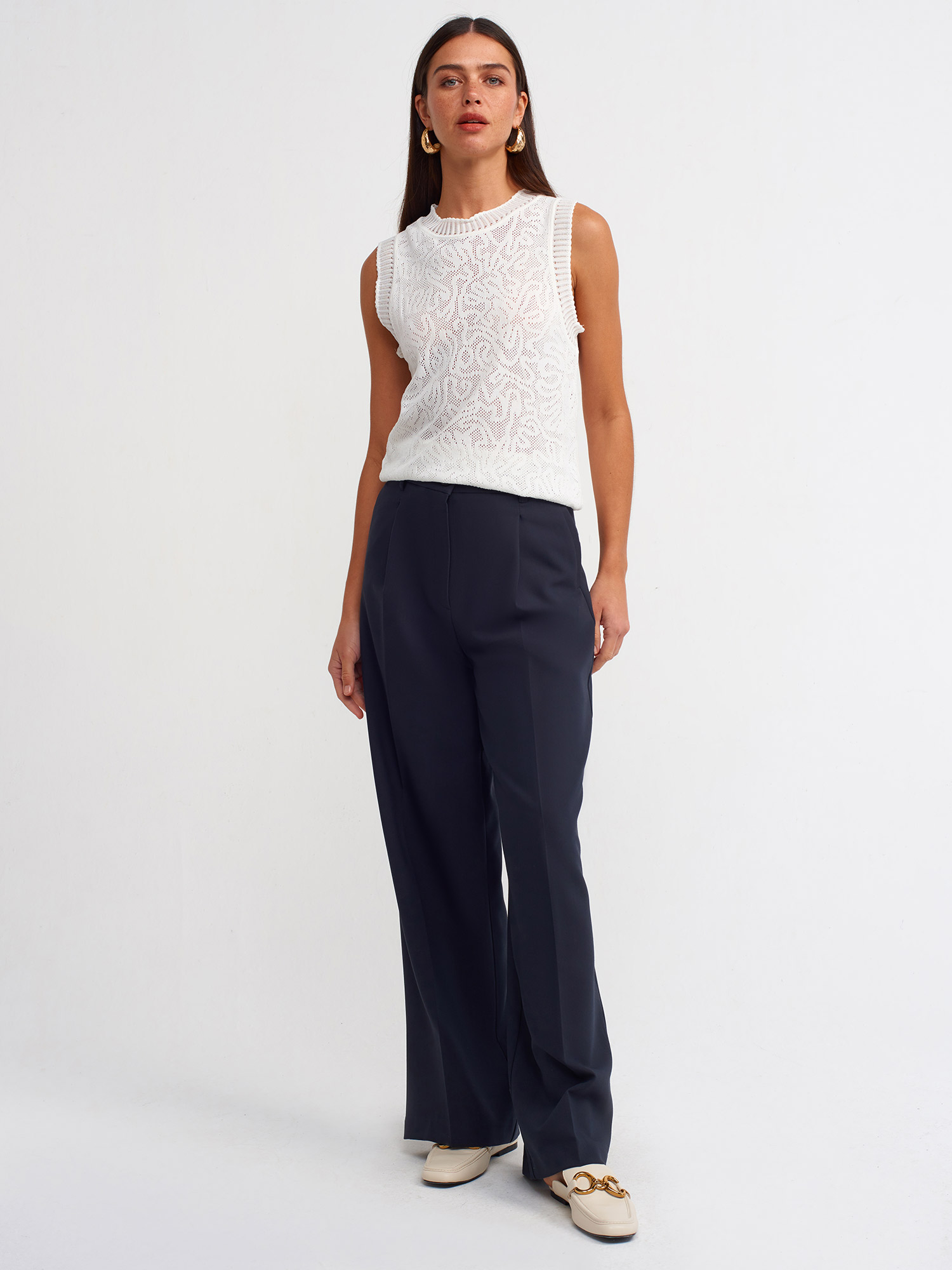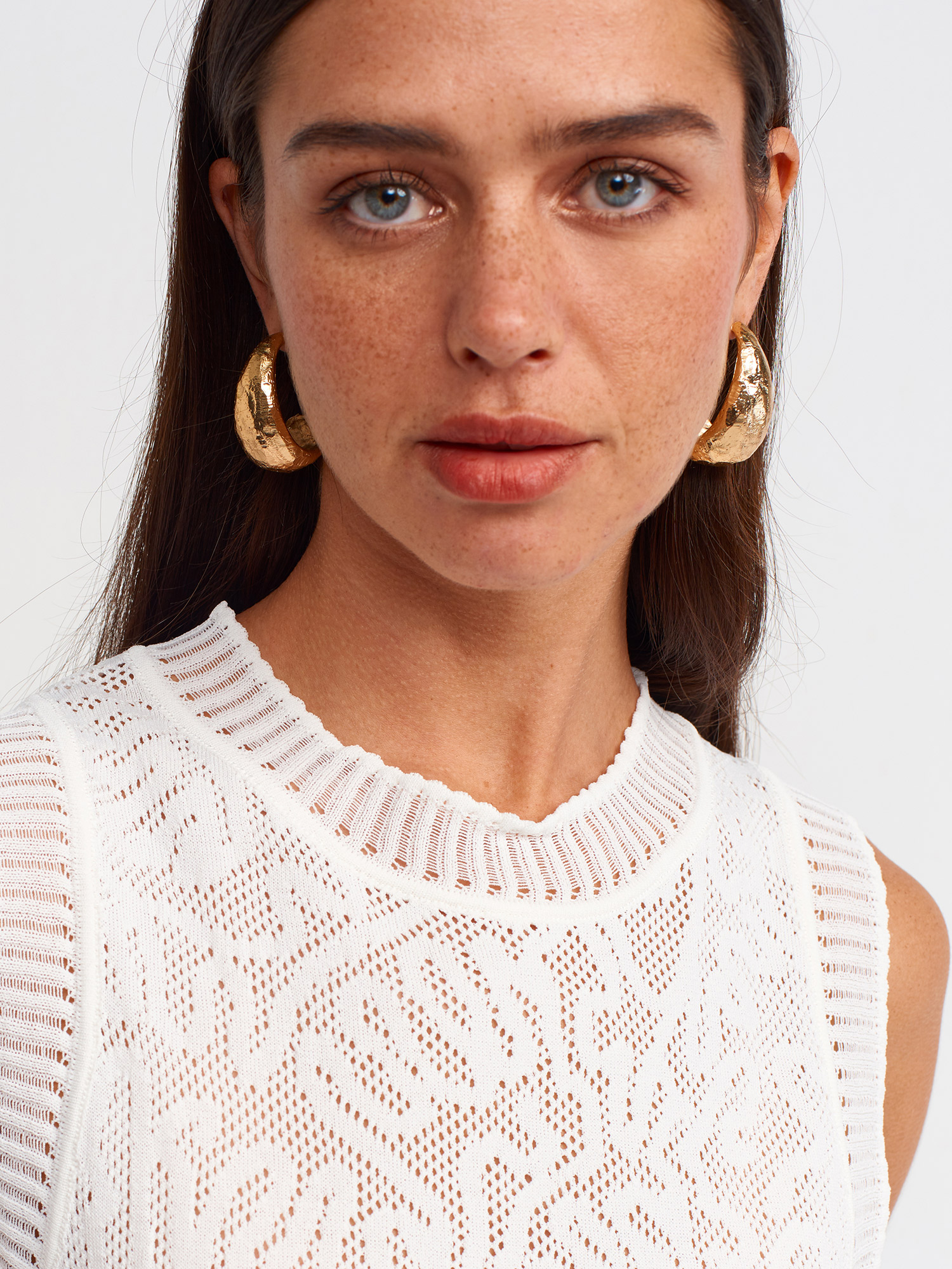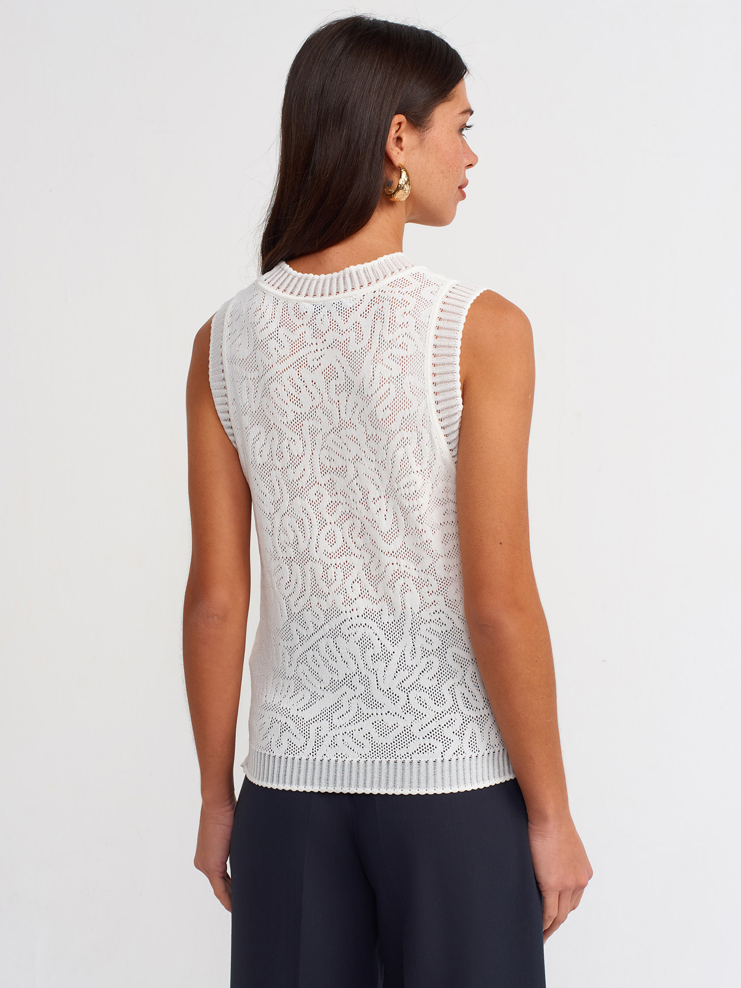 10409 Bisiklet Yaka Ajur Desenli Triko Atlet-Ekru