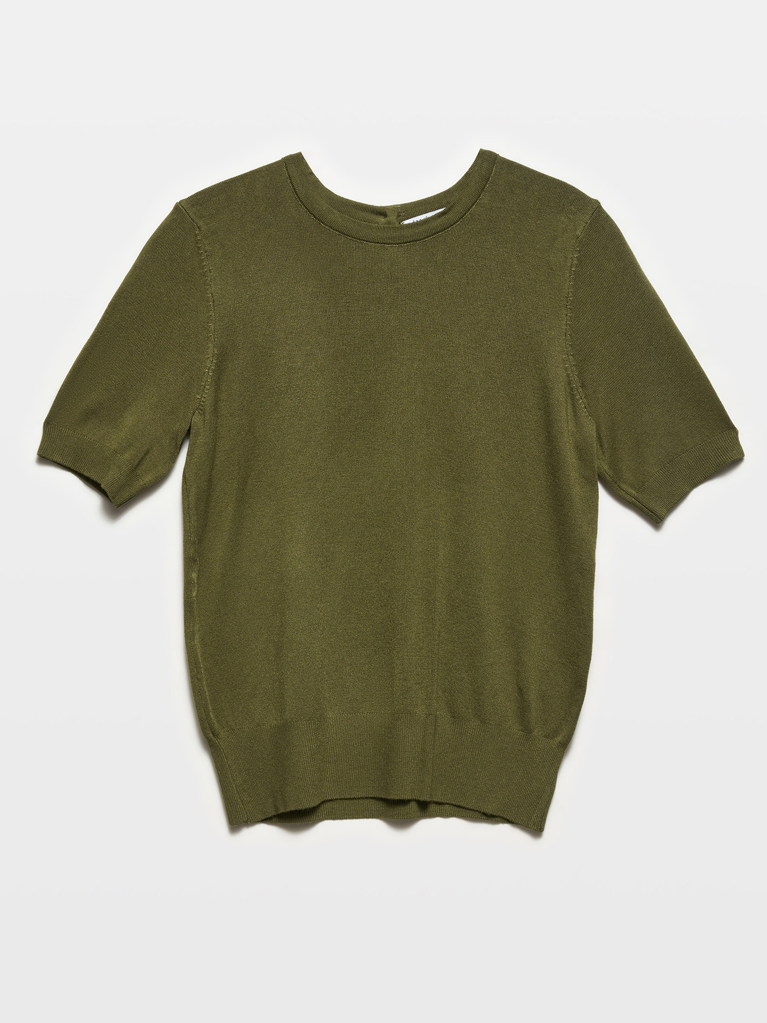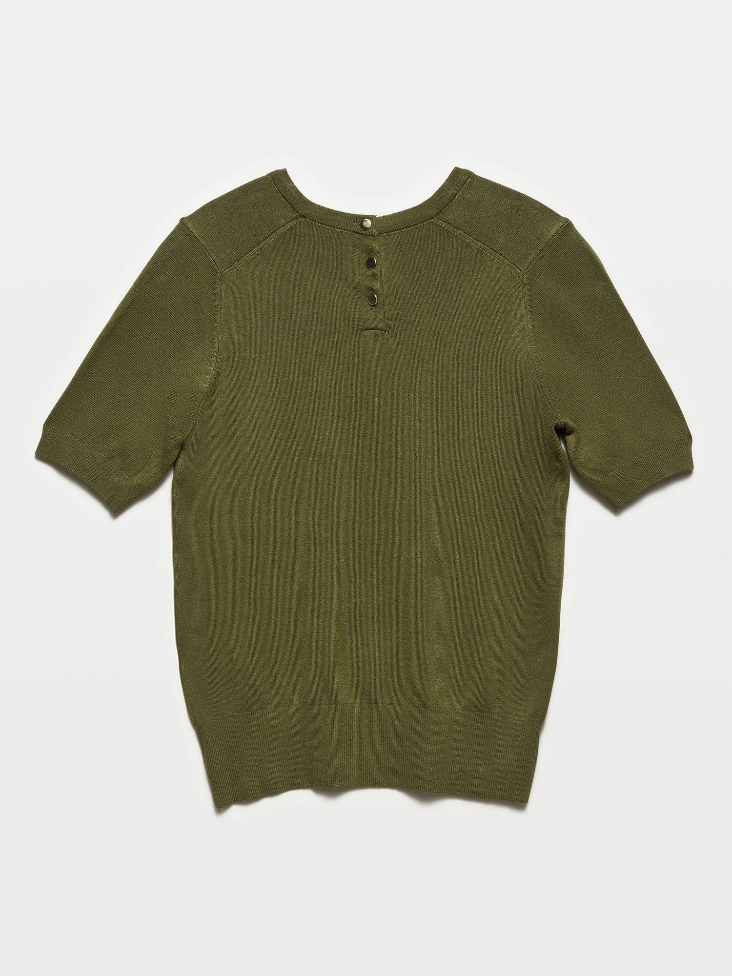 10426 Bisiklet Yaka Arkası Düğmeli Triko Kazak-Haki
