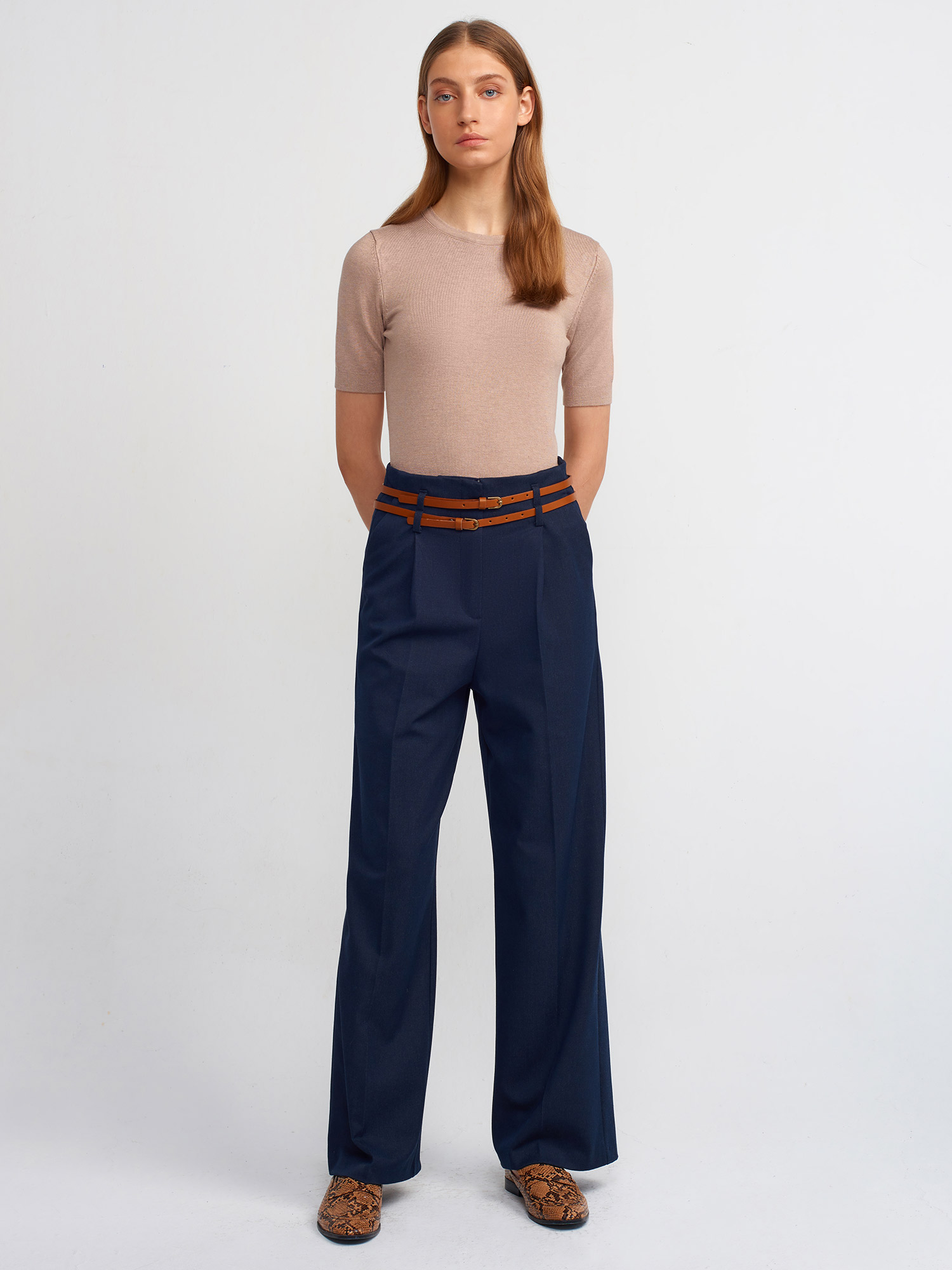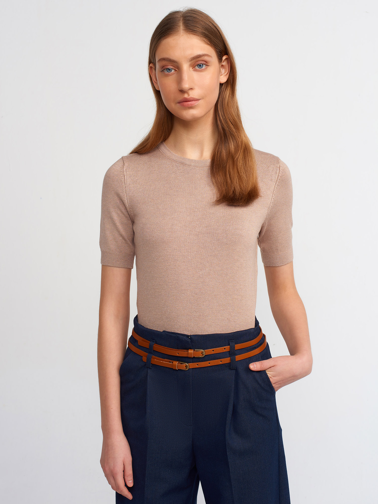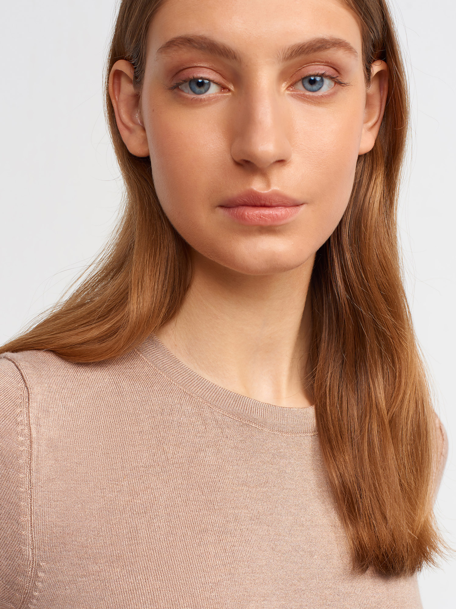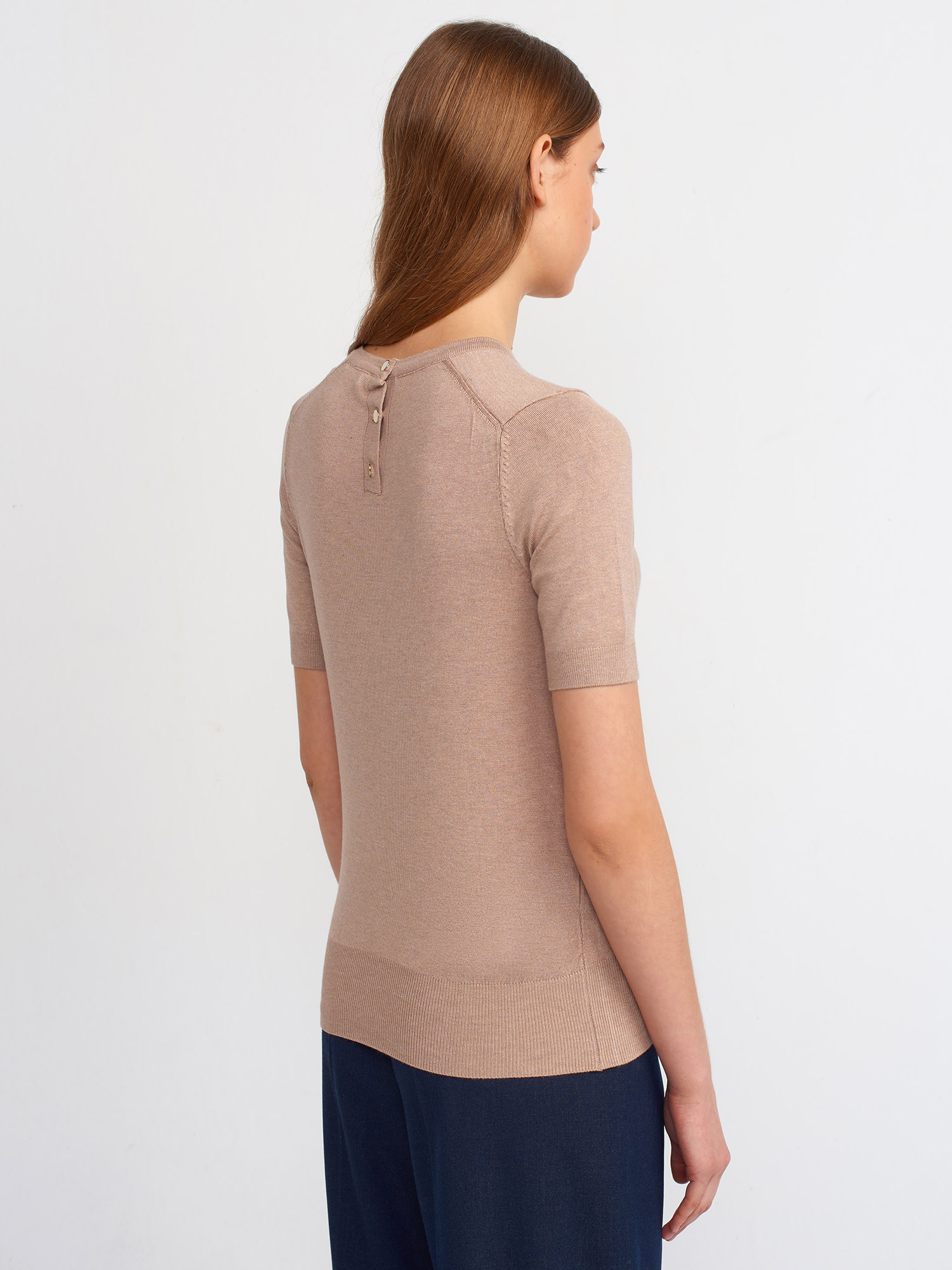 10426 Bisiklet Yaka Arkası Düğmeli Triko Kazak-Vizon M.