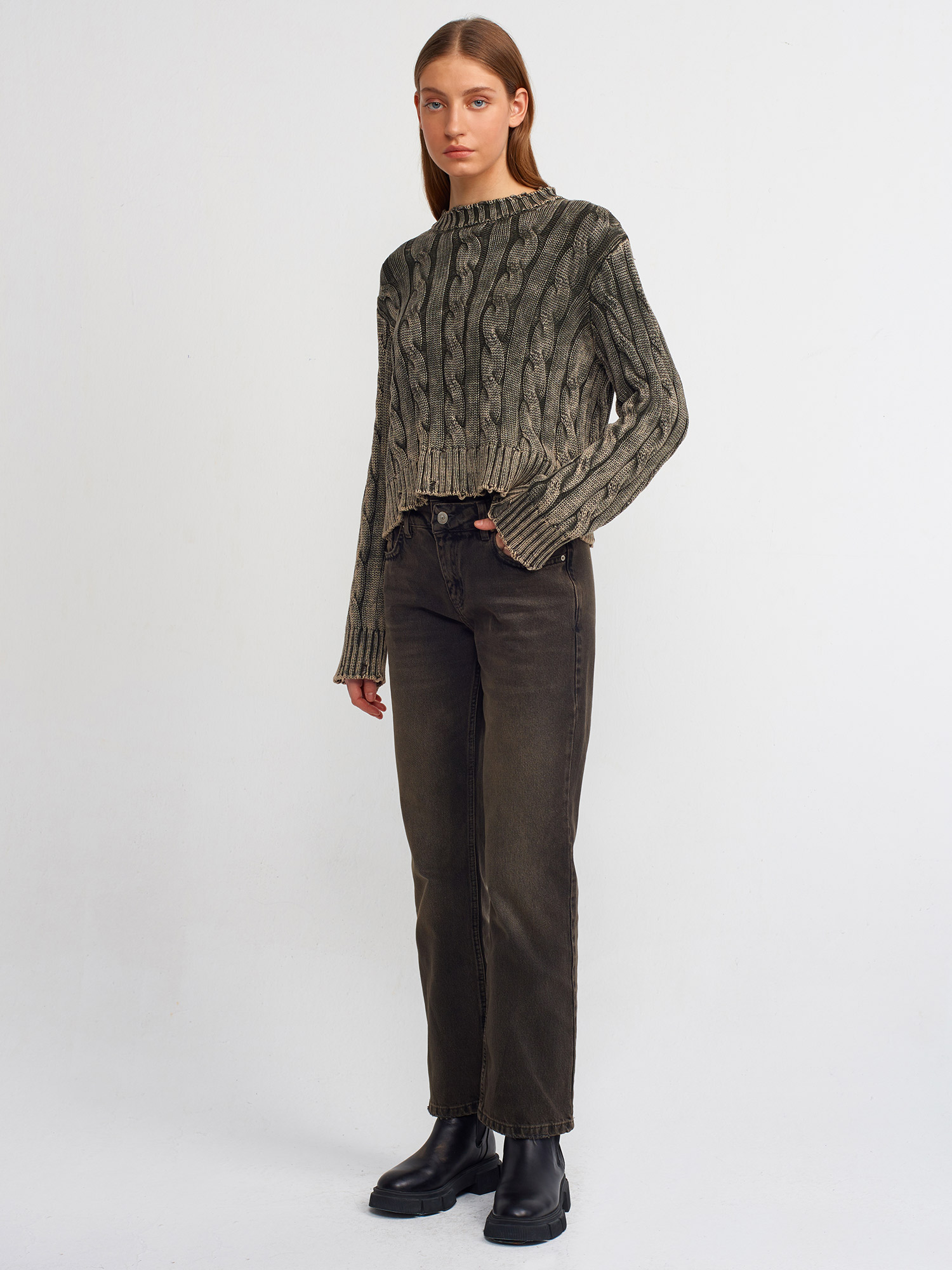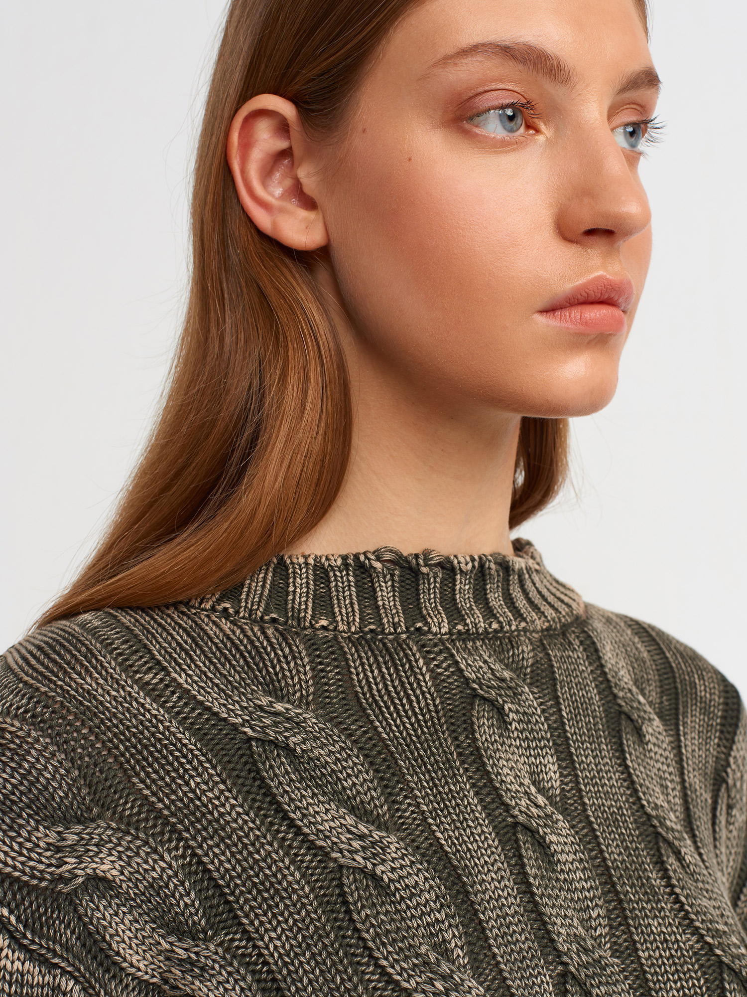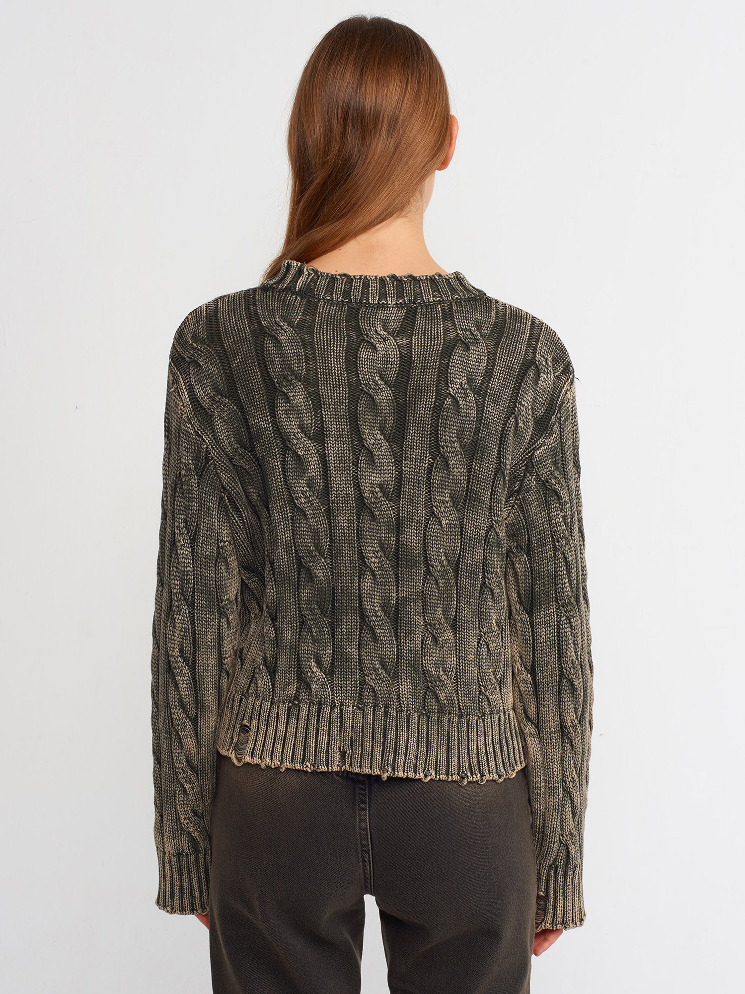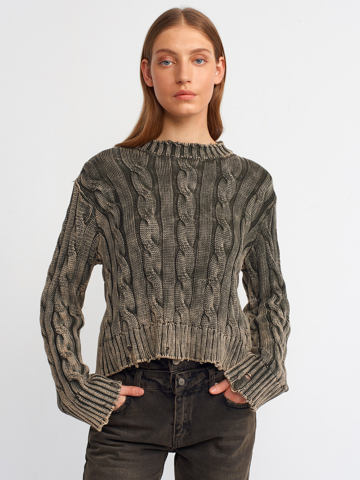 10458 Soluk Efeketli Saç örgülü Kazak-Bej