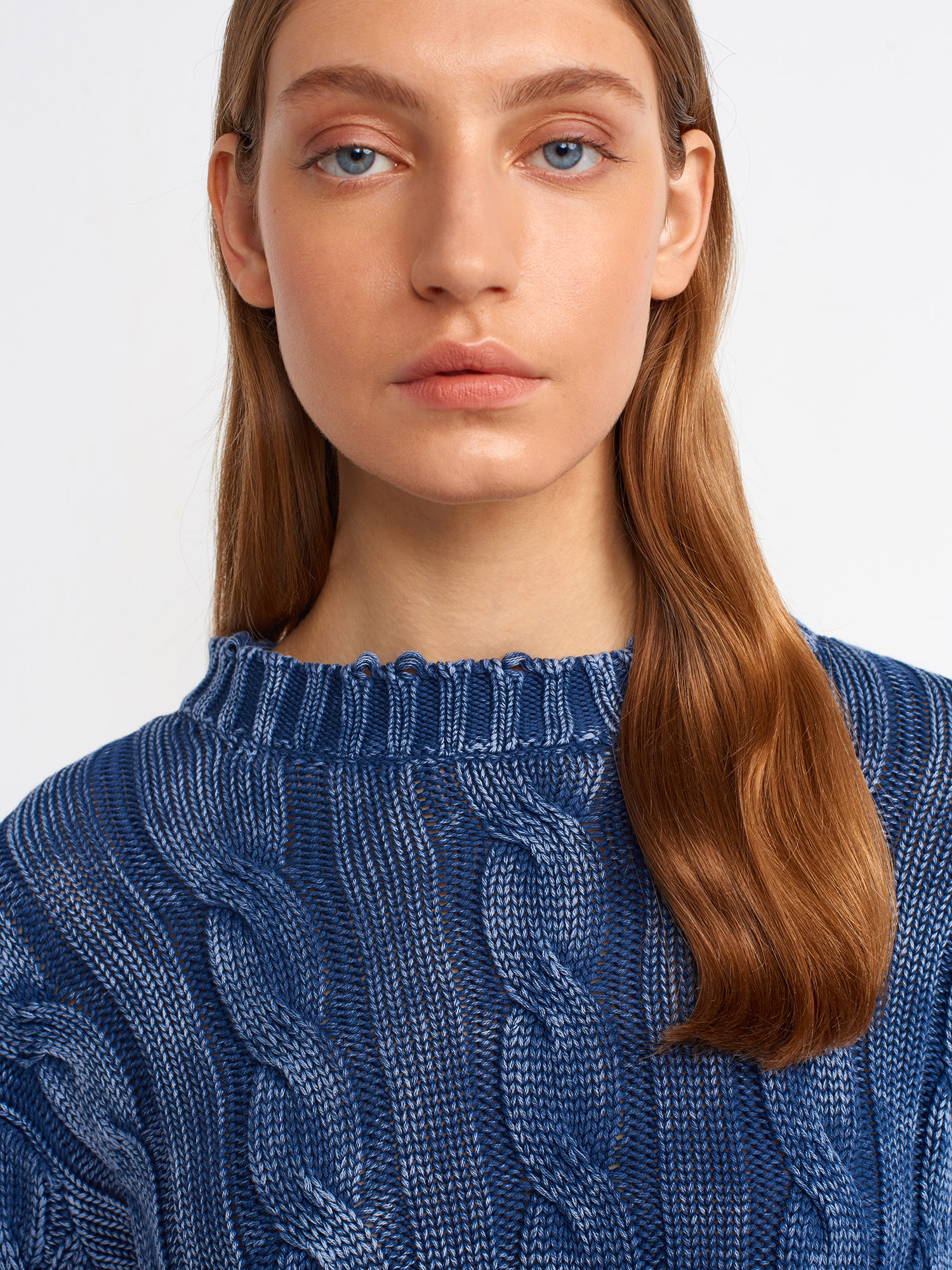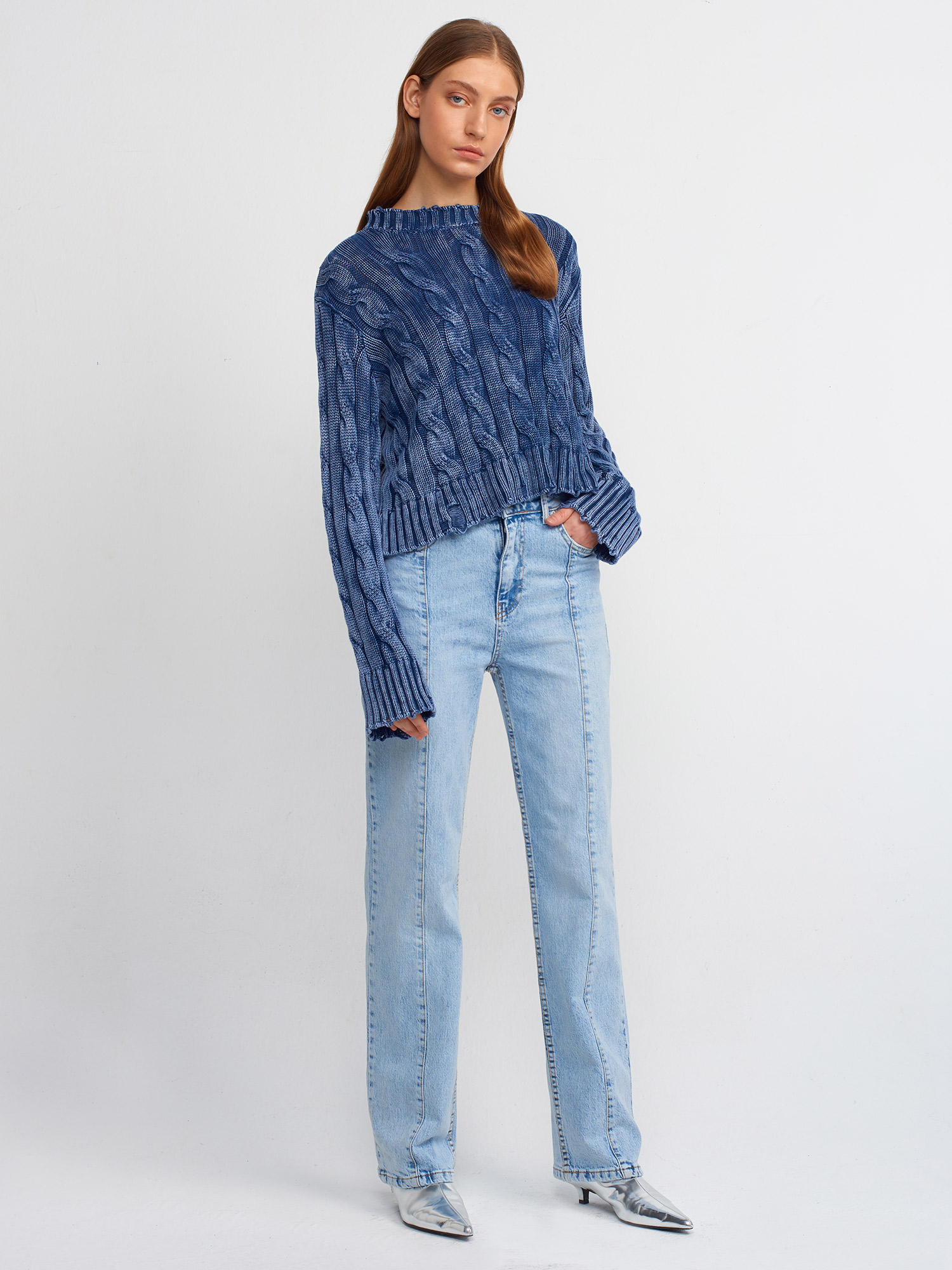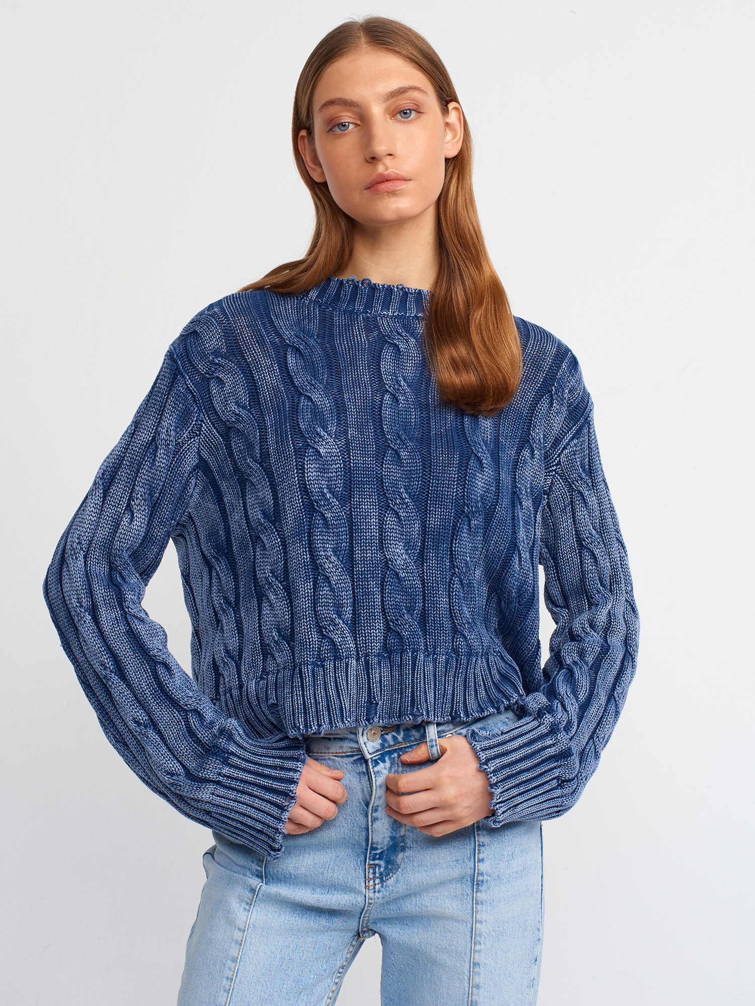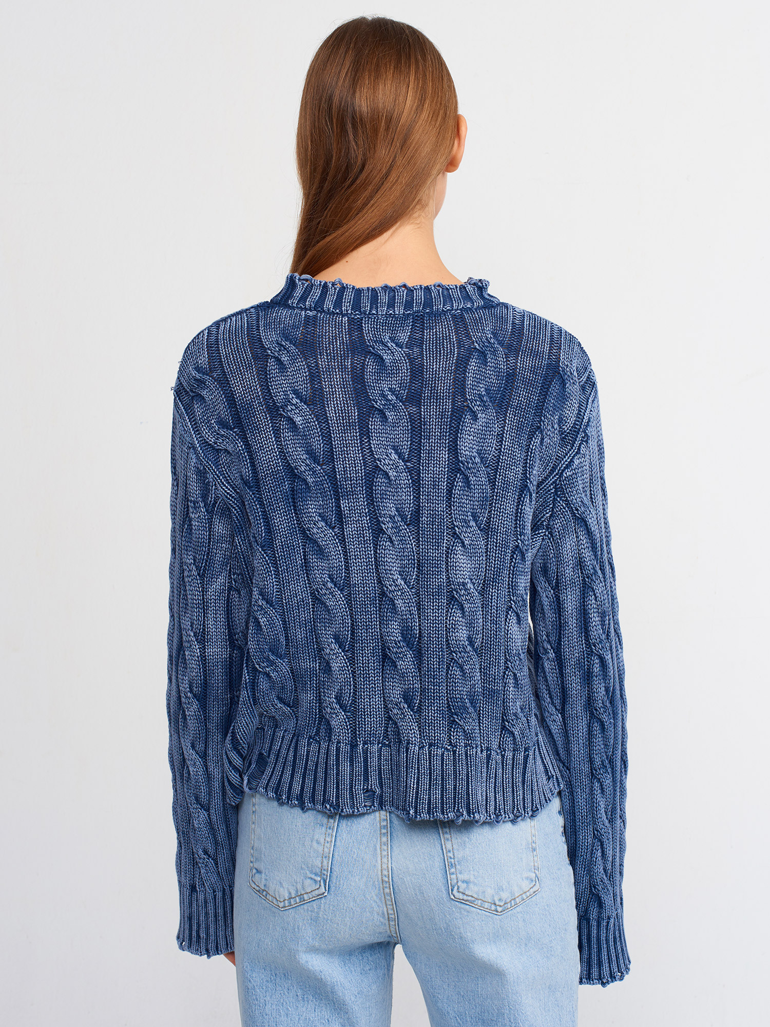 10458 Soluk Efeketli Saç örgülü Kazak-İndigo