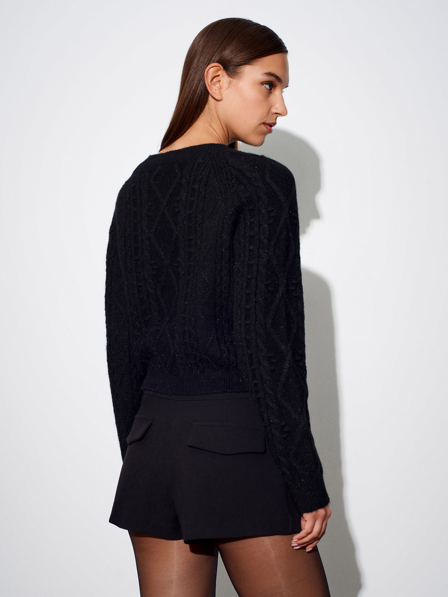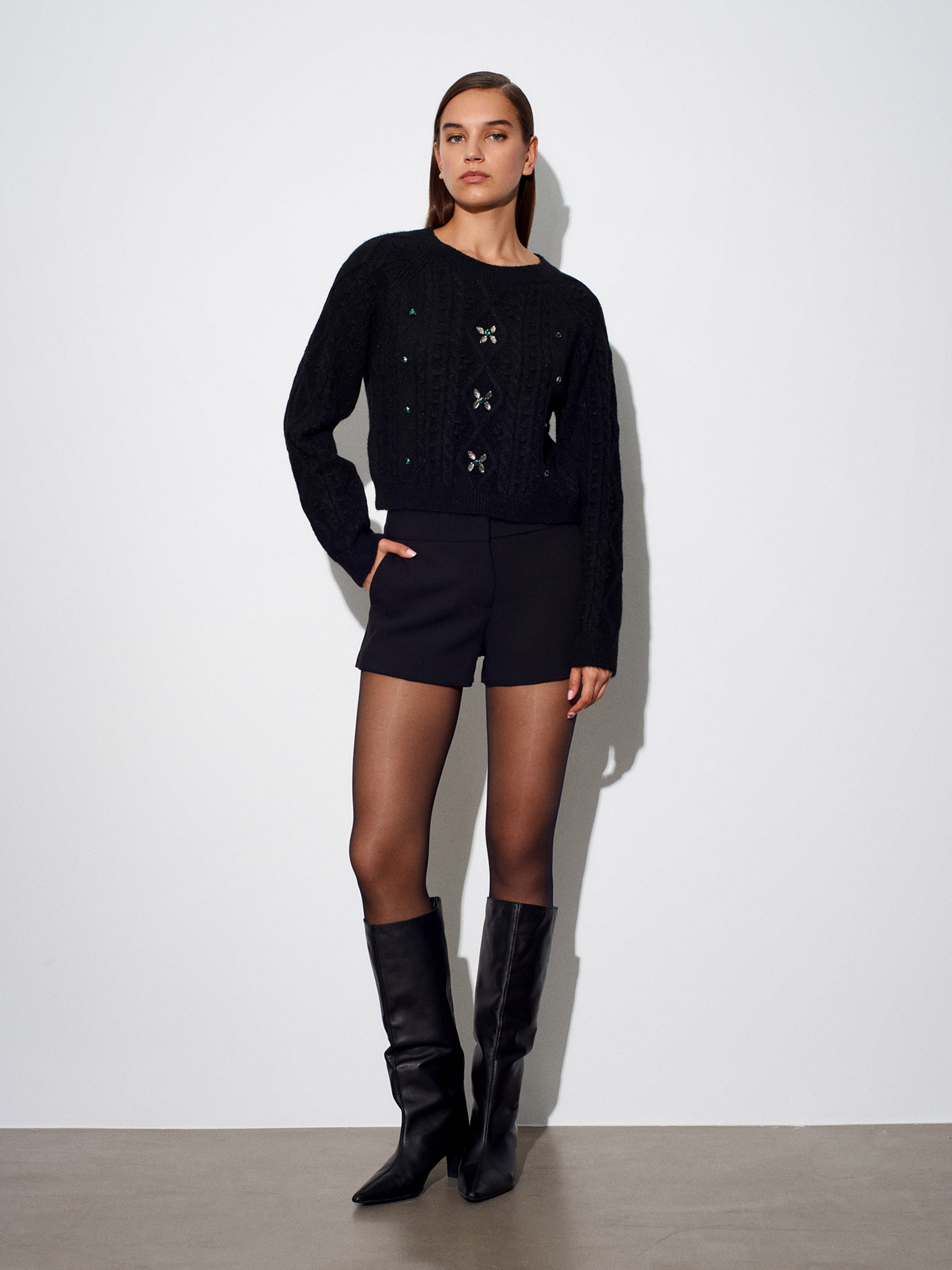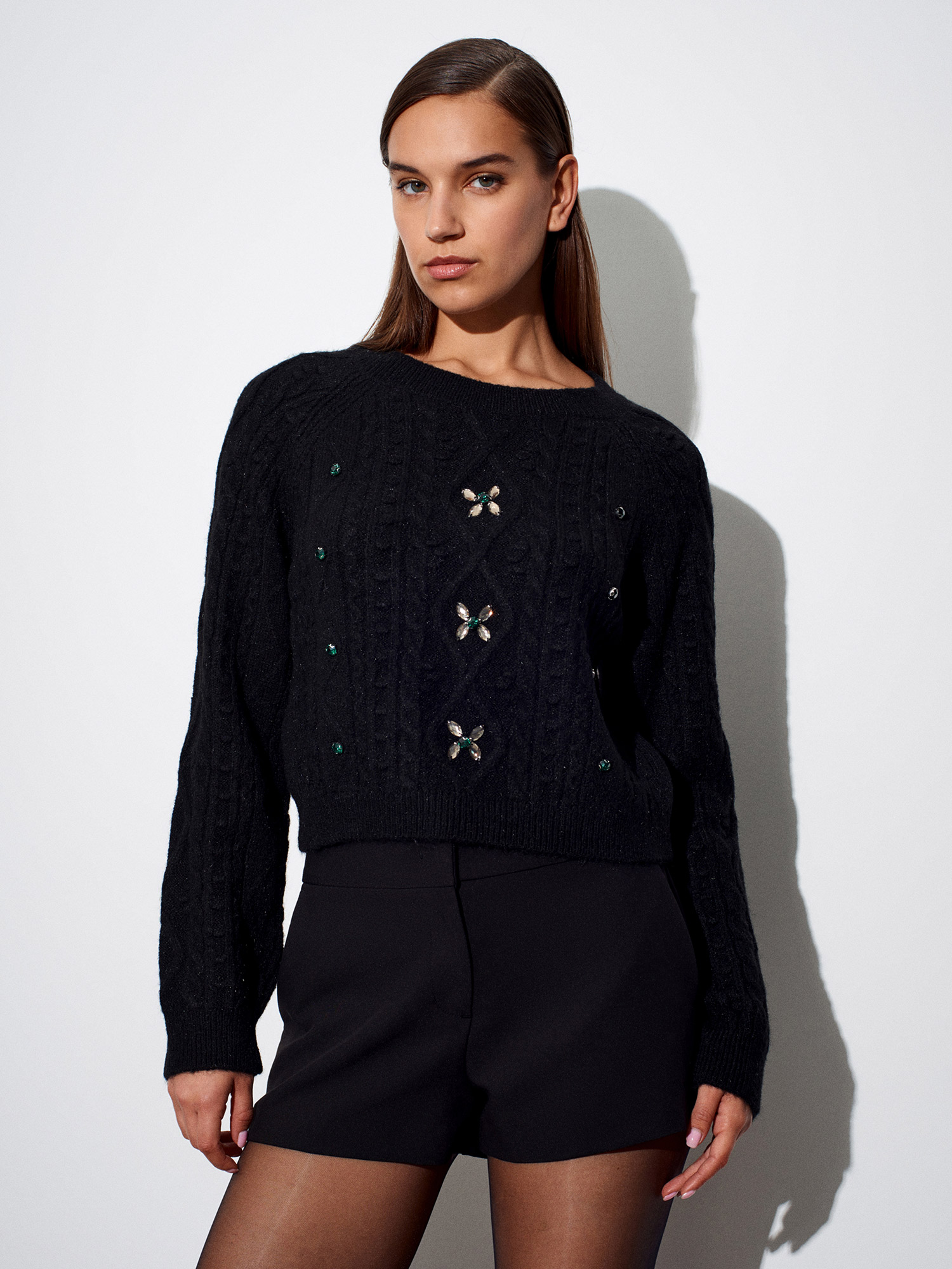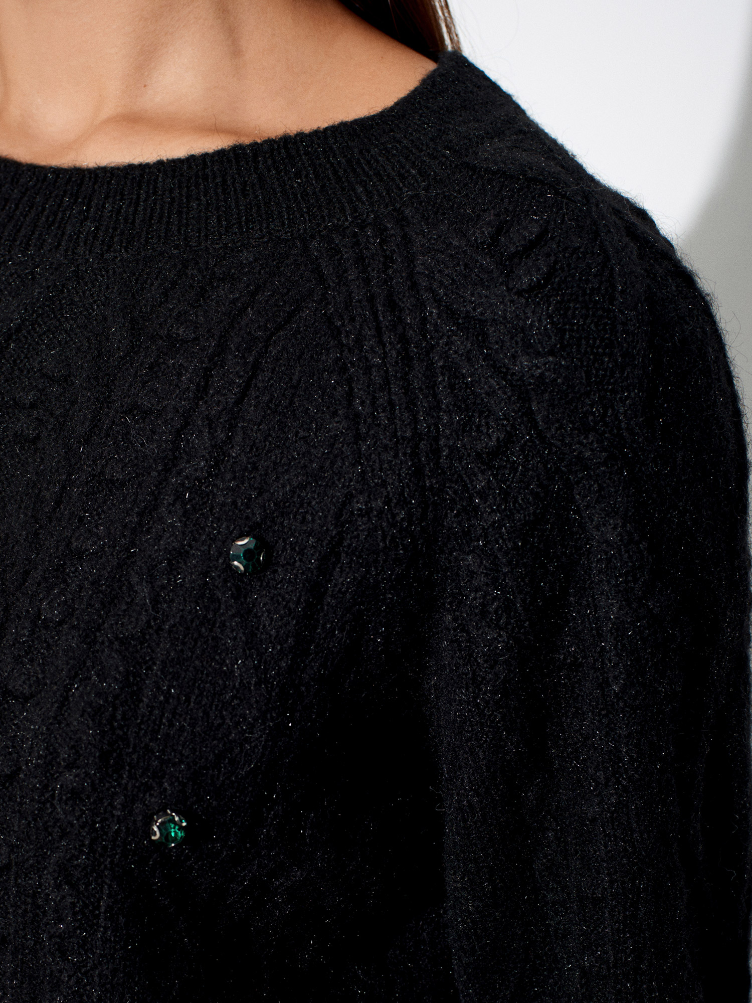 10462 Bisiklet Yaka Taş İşlemeli Kazak-Siyah