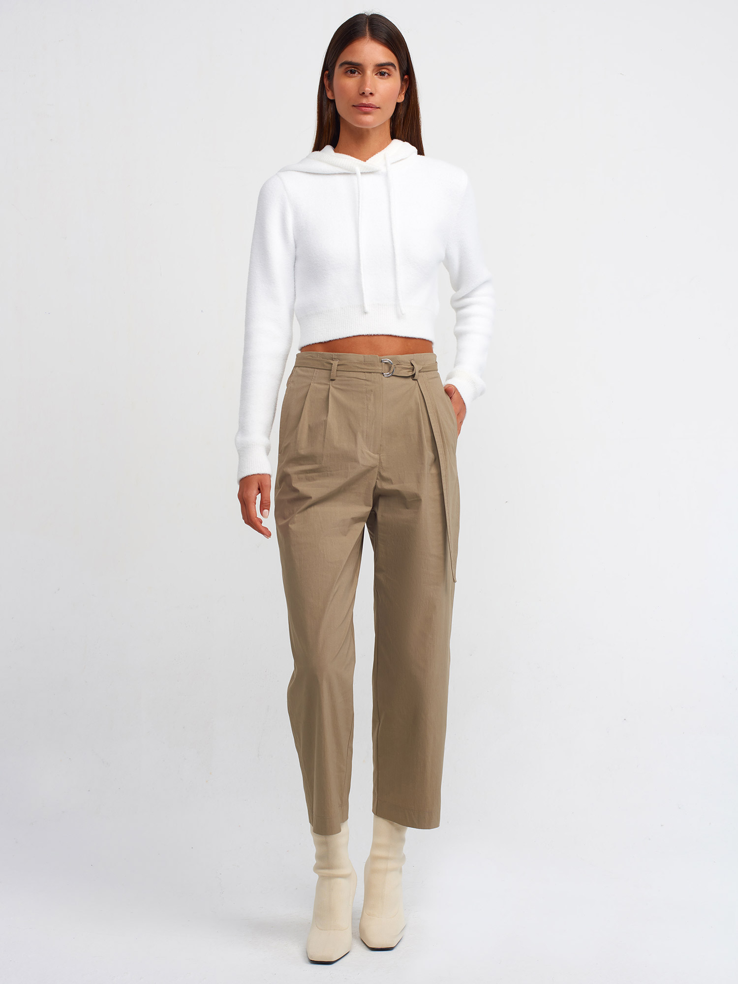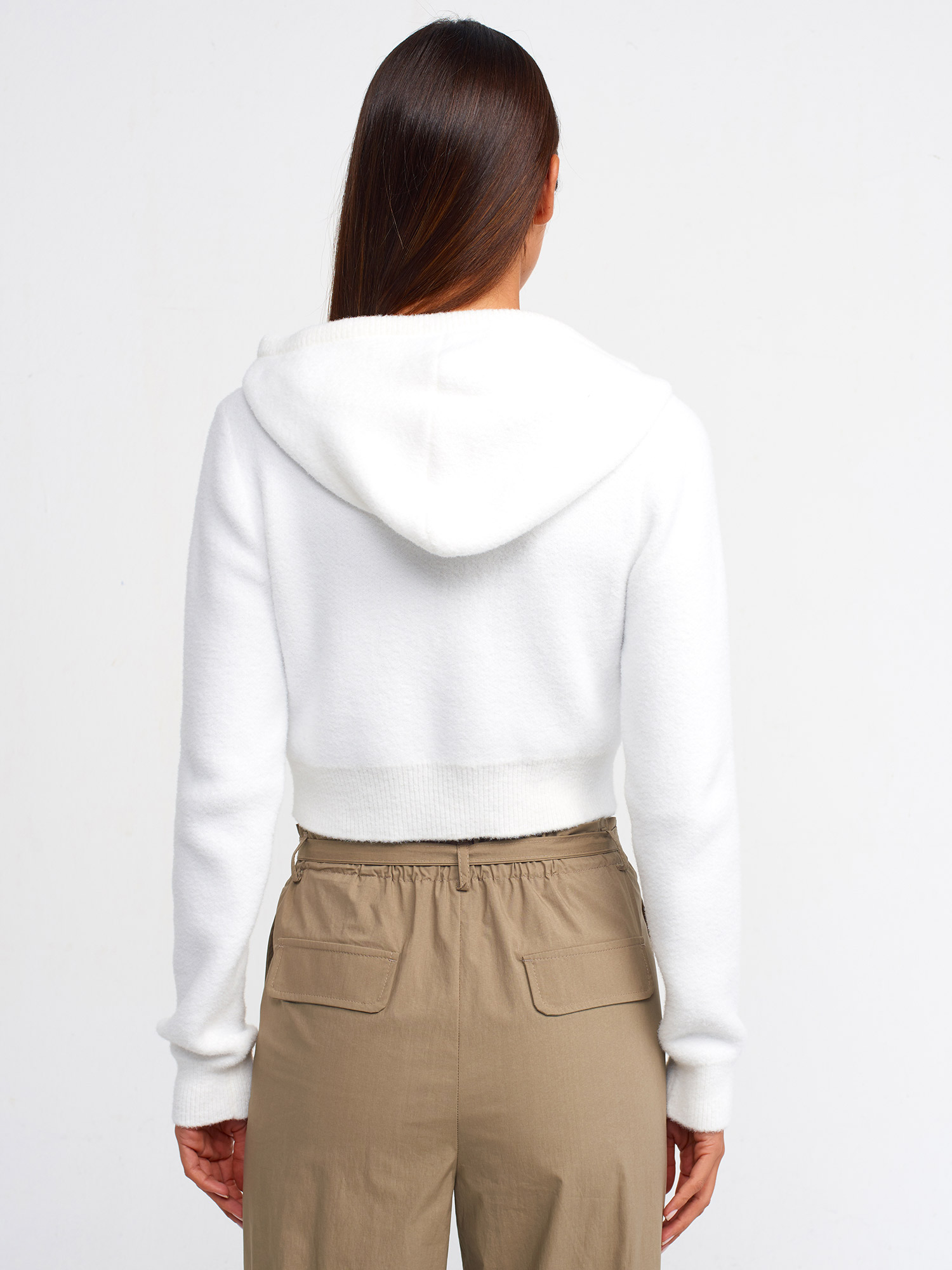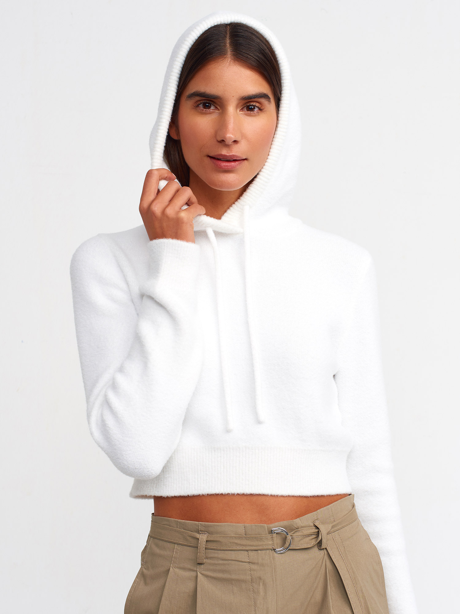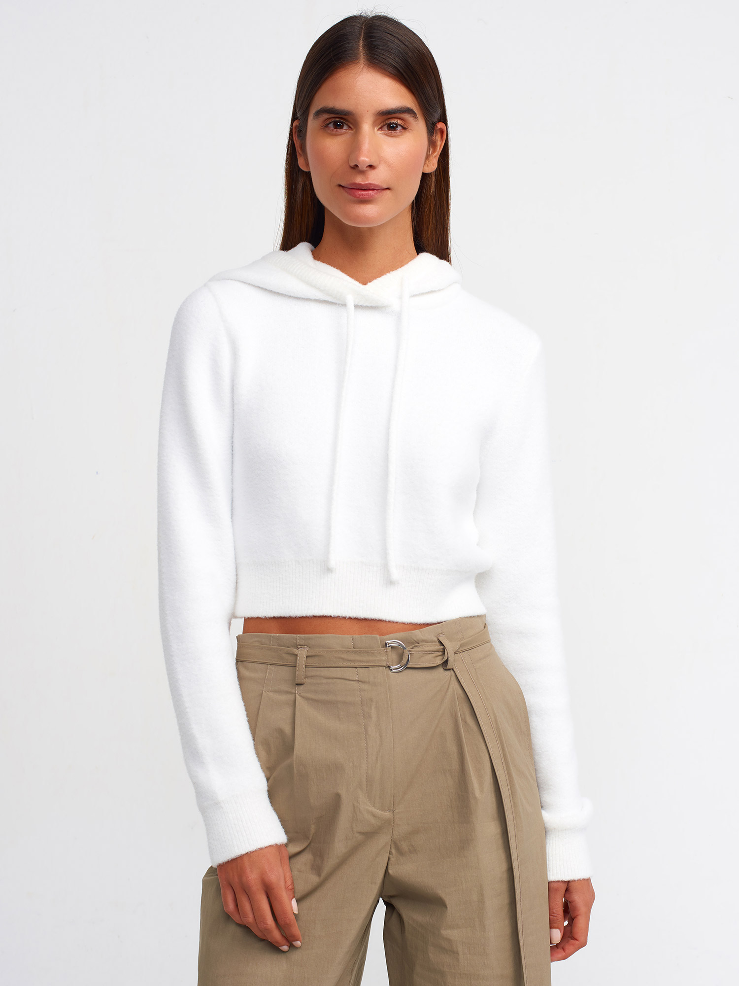 10486 Yumuşak Dokulu Kapşonlu Crop Kazak-Ekru