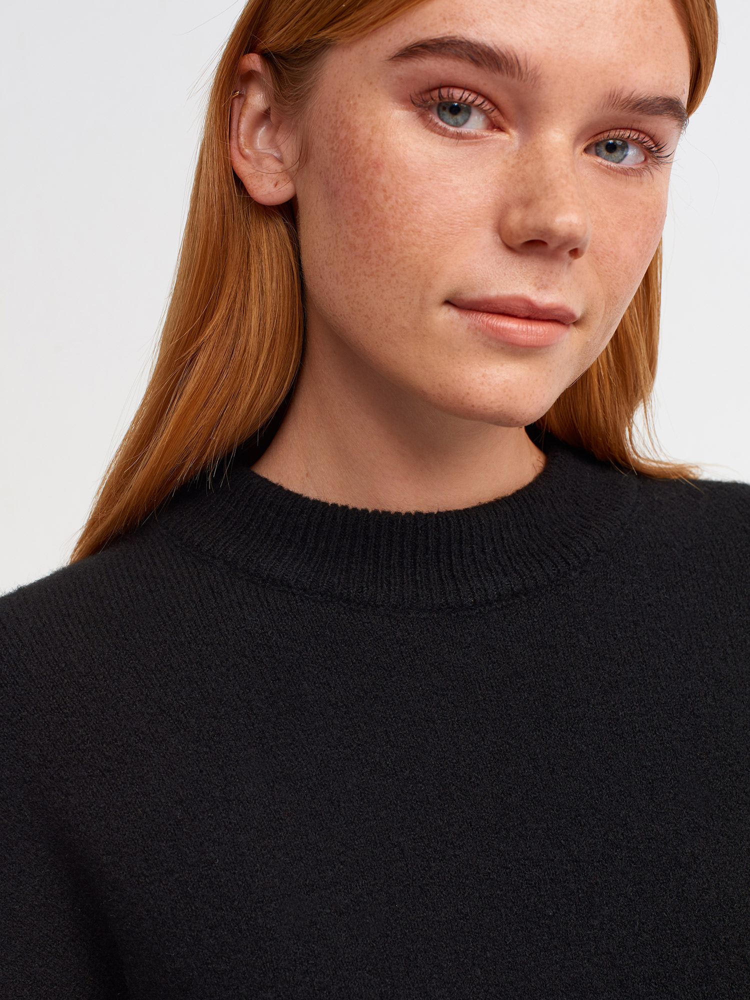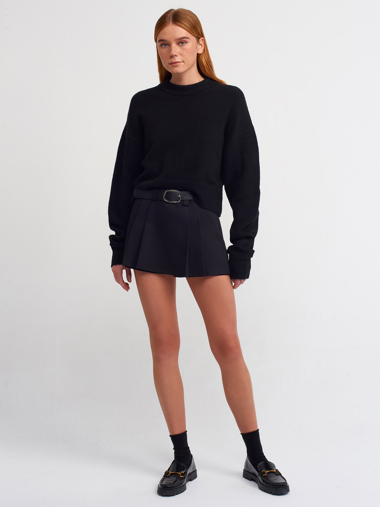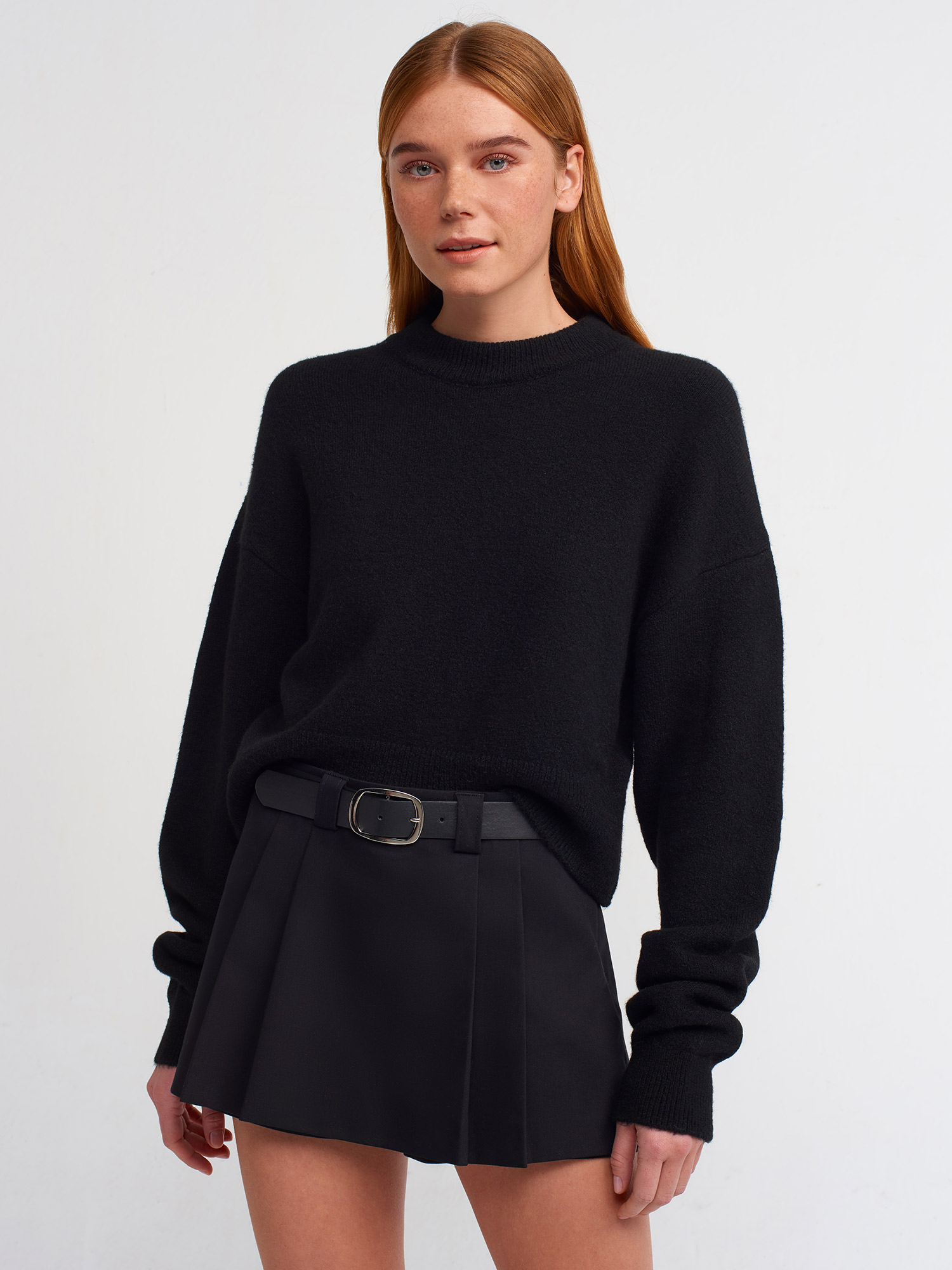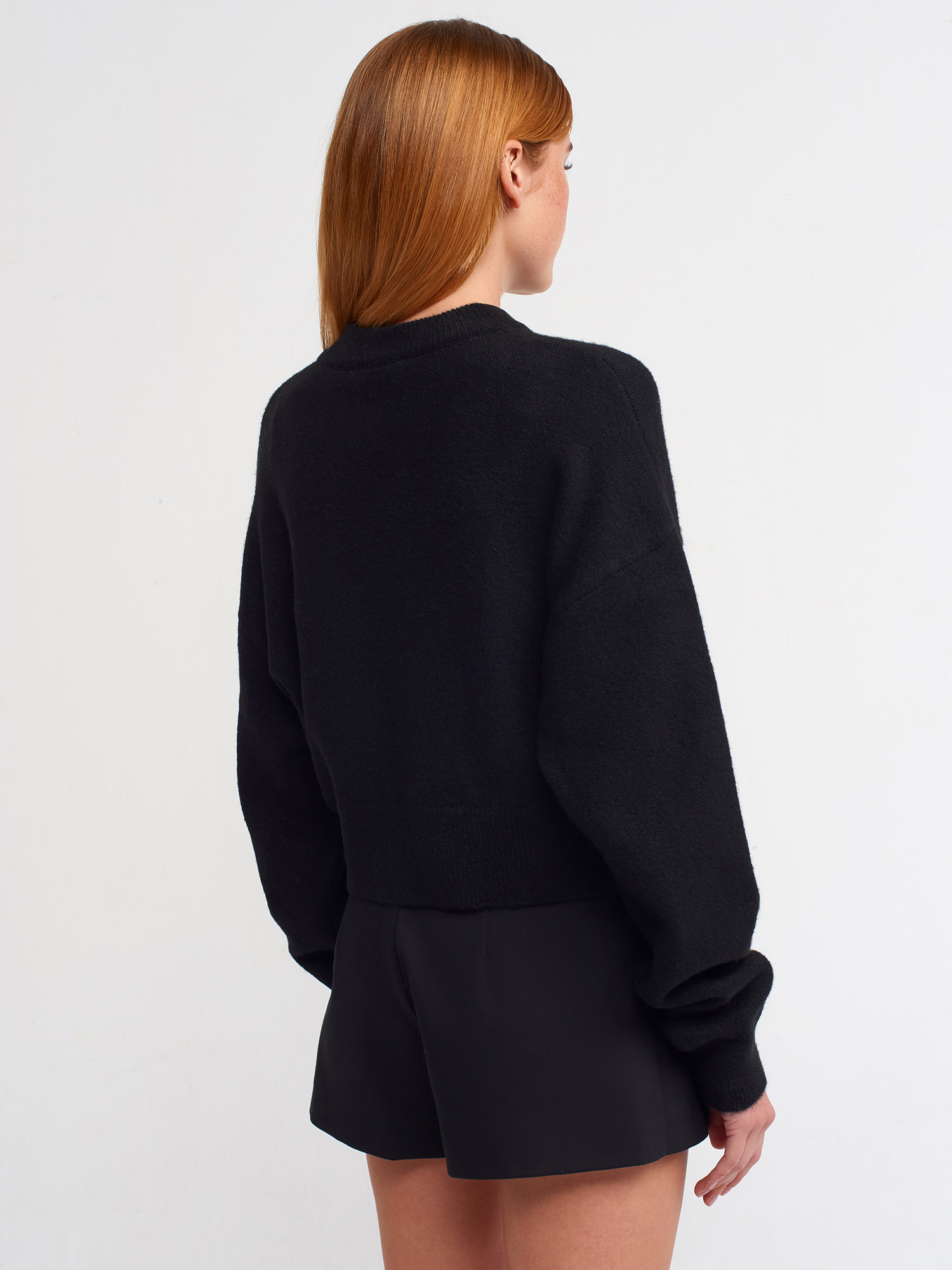 10502 Bisiklet Yaka Crop Kazak-Siyah