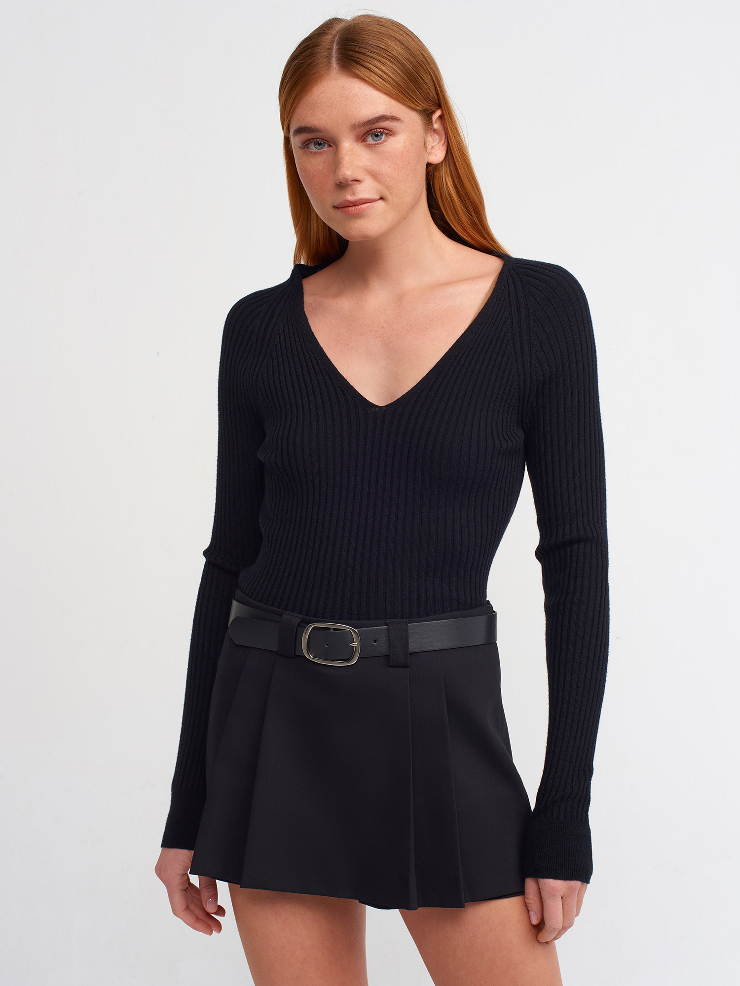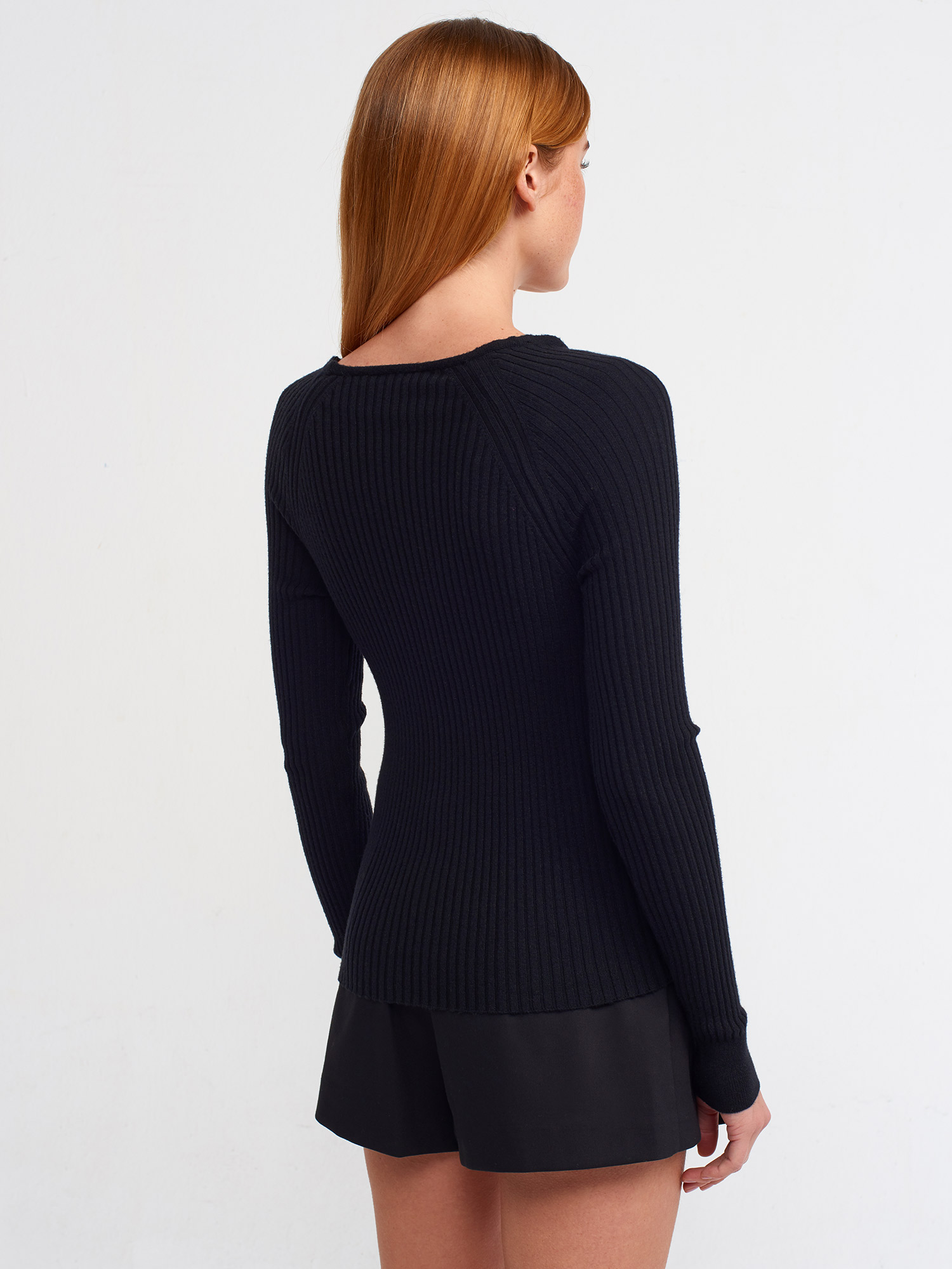 10504 V Yaka Fitilli Kazak-Siyah