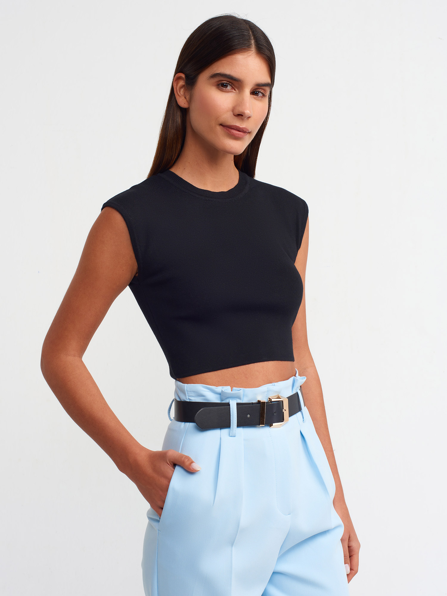 10525 Bisiklet Yaka Kısa Kollu Triko Top-Siyah