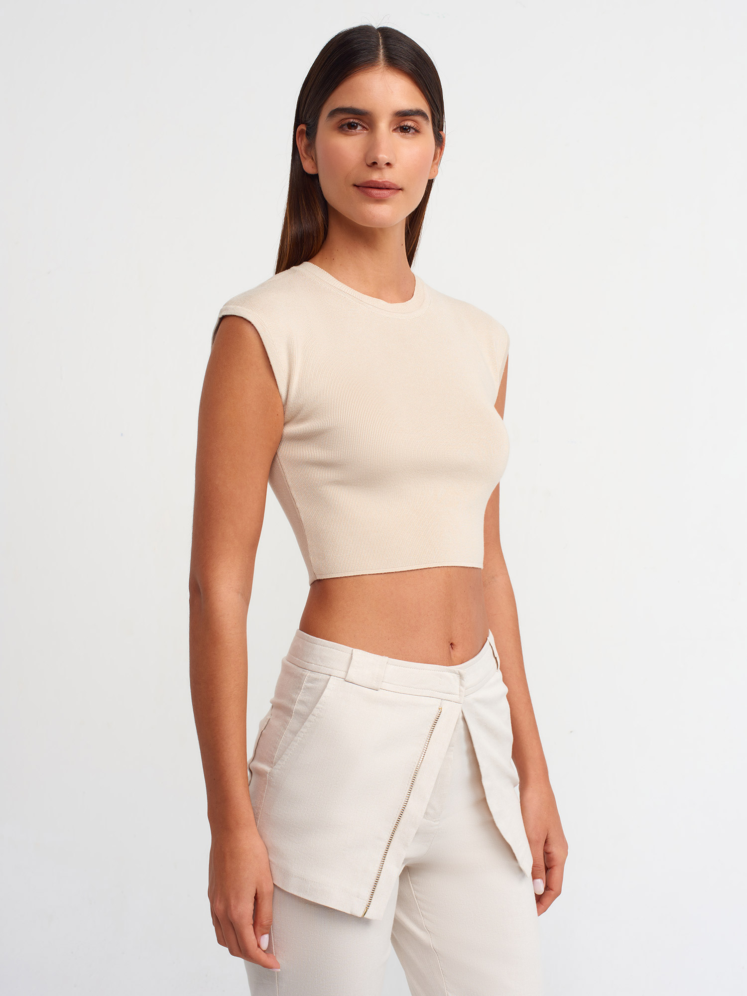 10525 Bisiklet Yaka Kısa Kollu Triko Top-Taş