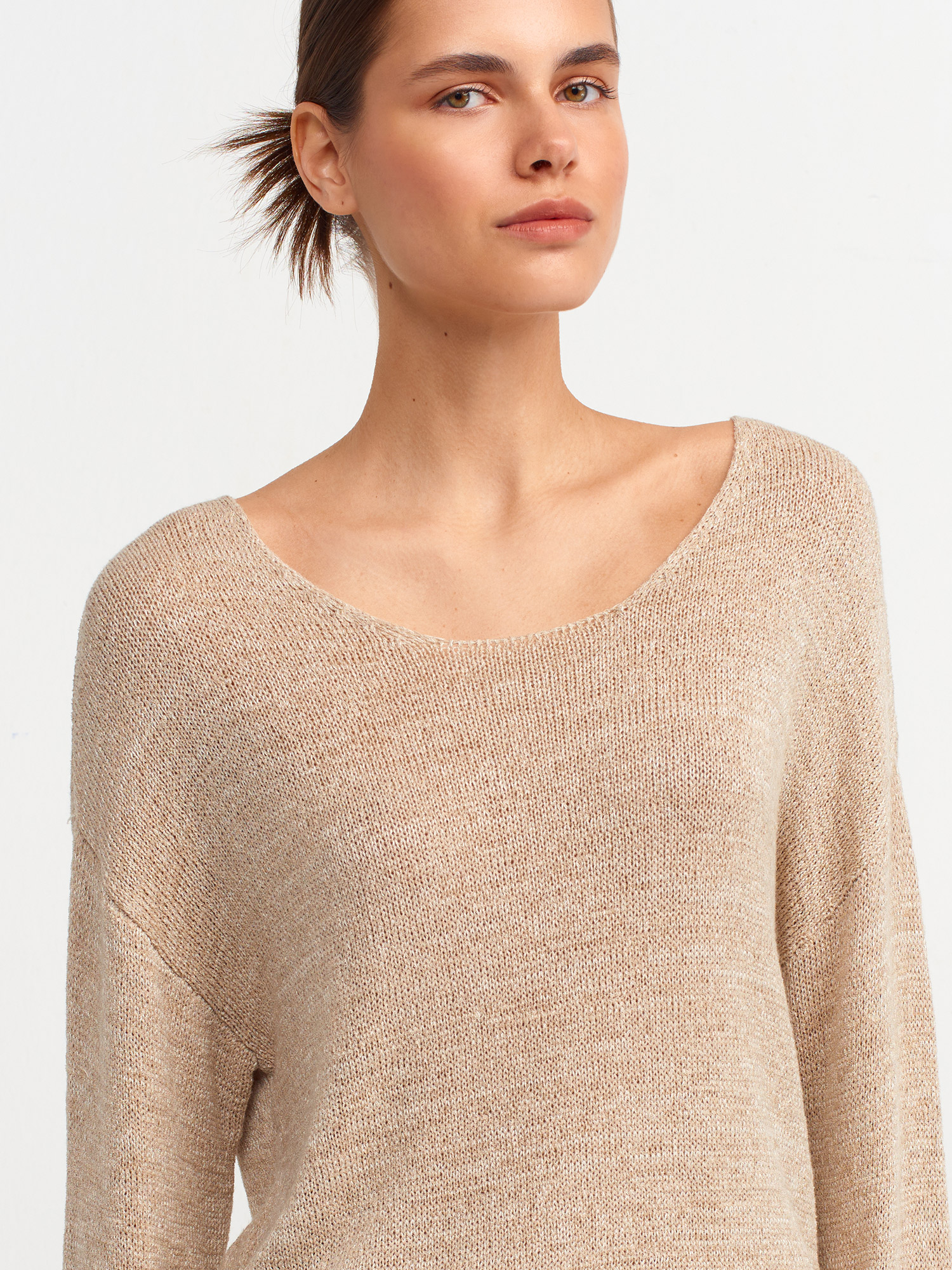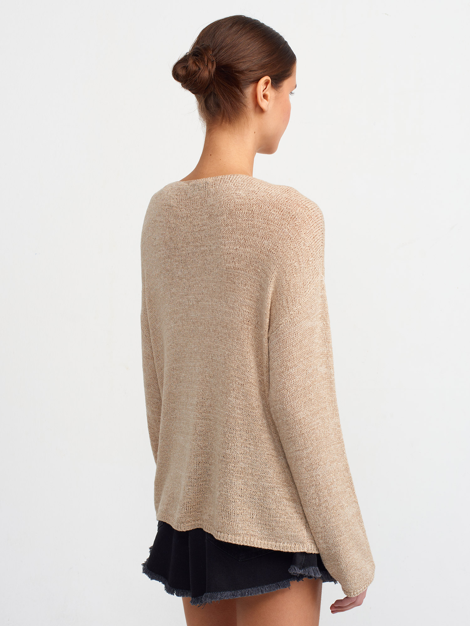 10547 Oval Yaka Yumuşak Dokulu Triko Kazak-Bej