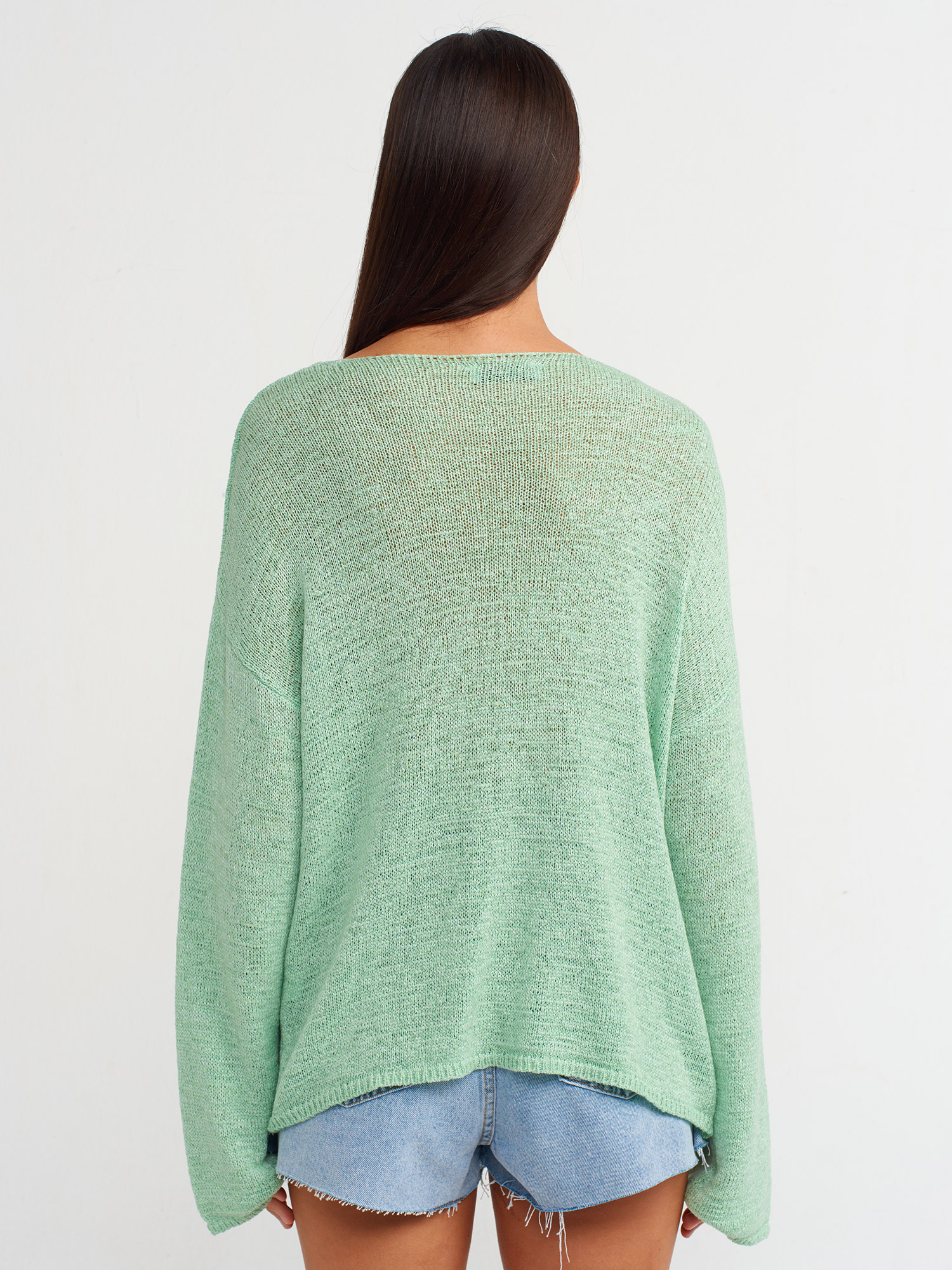 10547 Oval Yaka Yumuşak Dokulu Triko Kazak-Mint