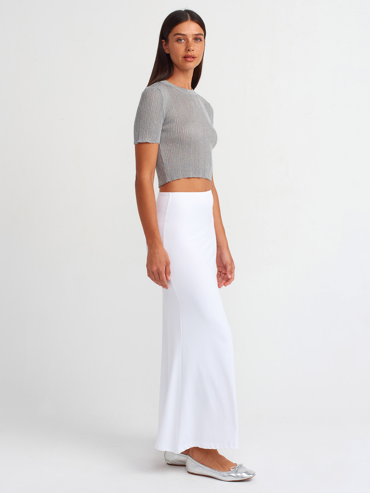 10571 Bisiklet Yaka Transparan Triko Bluz-Gri