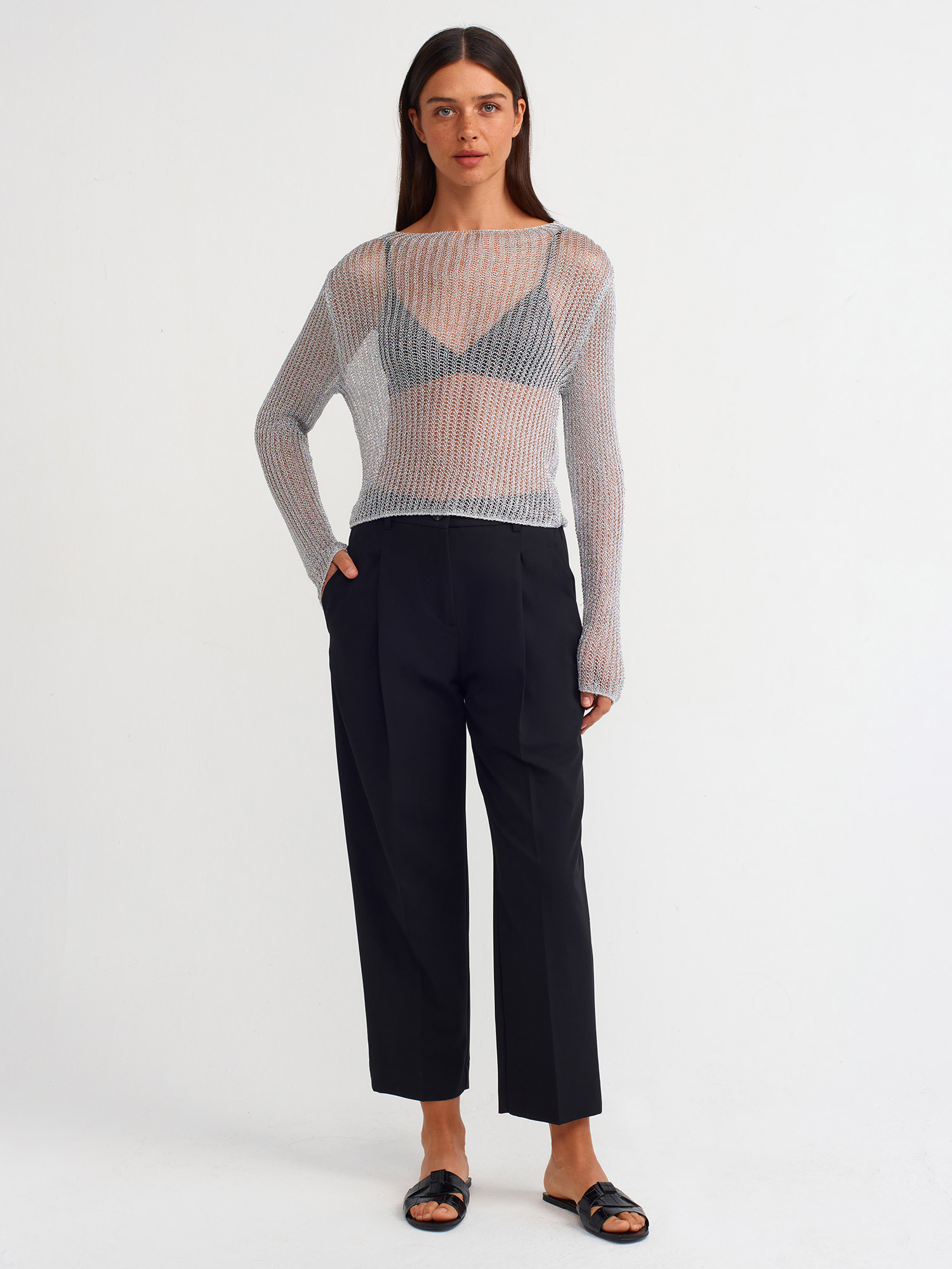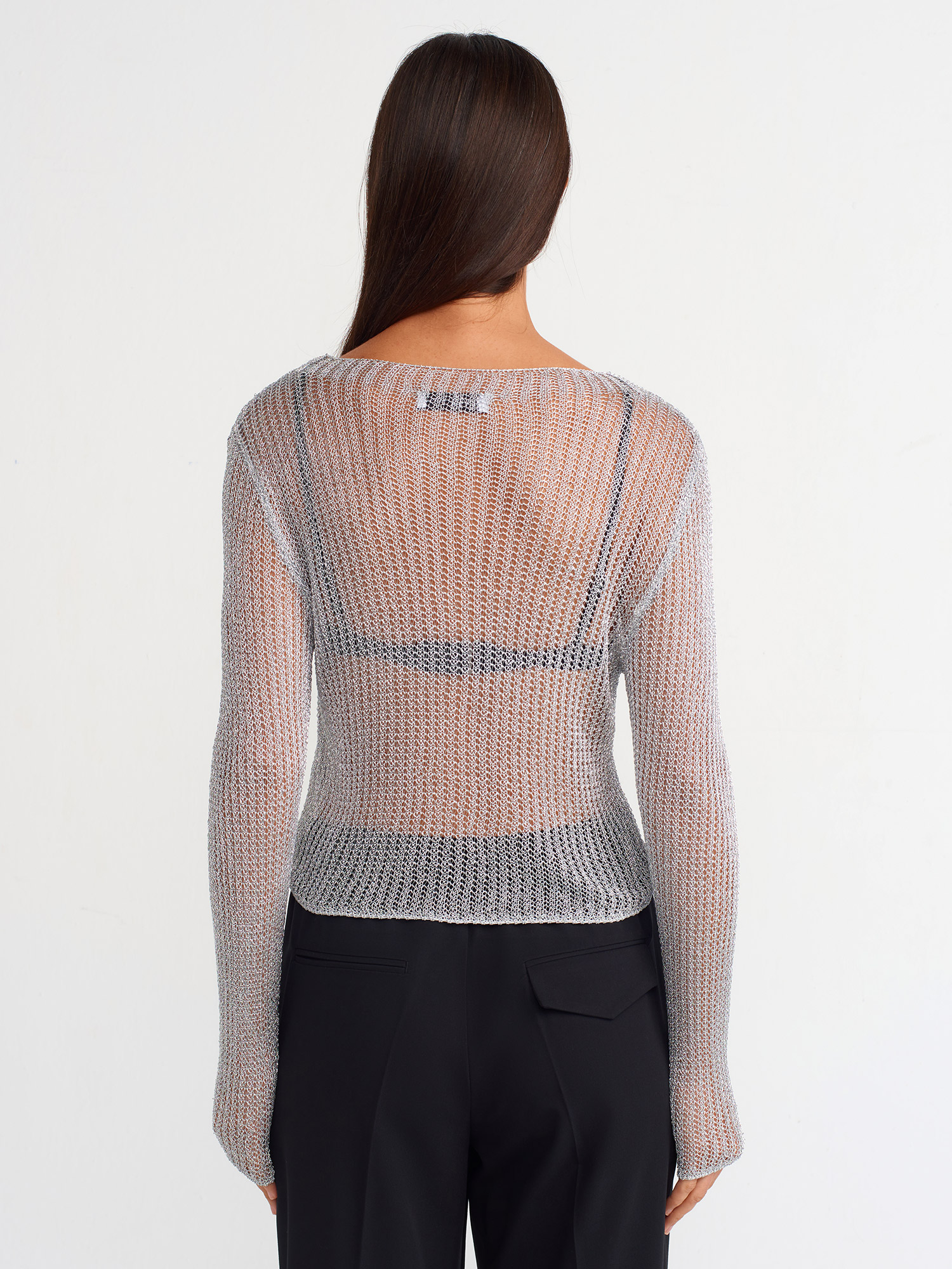 10606 Transparan Parlak Triko Kazak-Gümüş