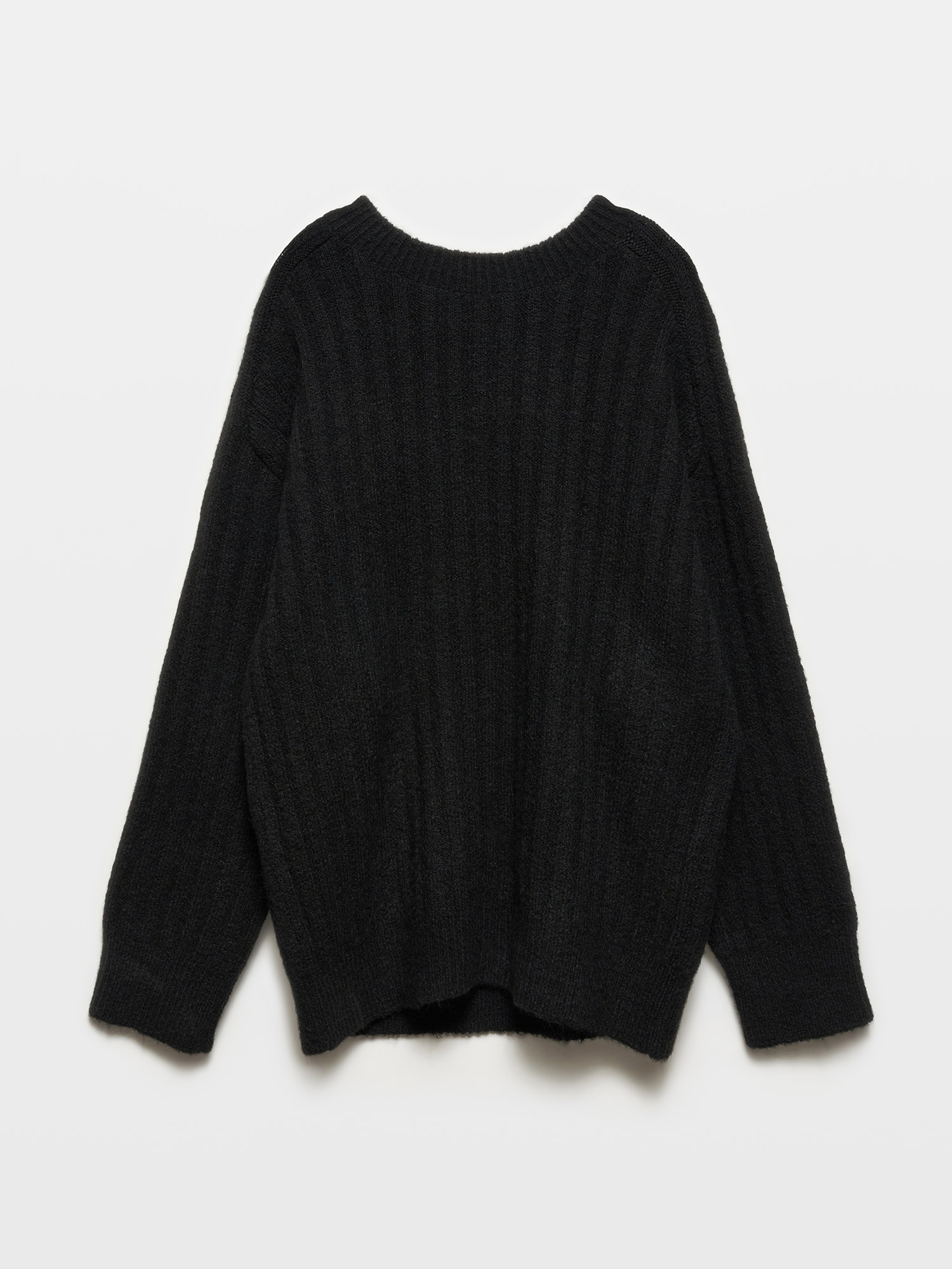 10628 Bisiklet Yaka Oversize Triko Kazak-Siyah