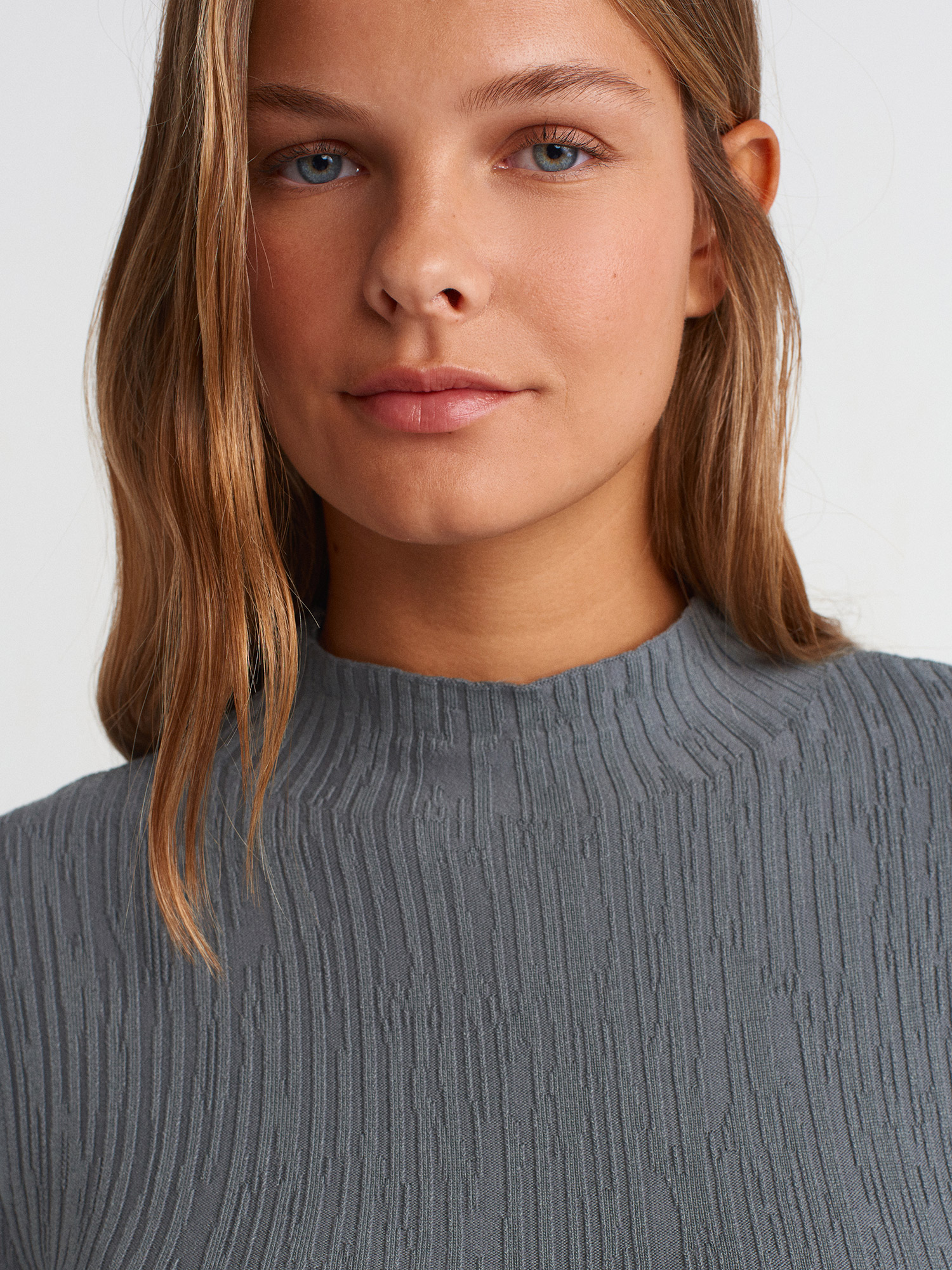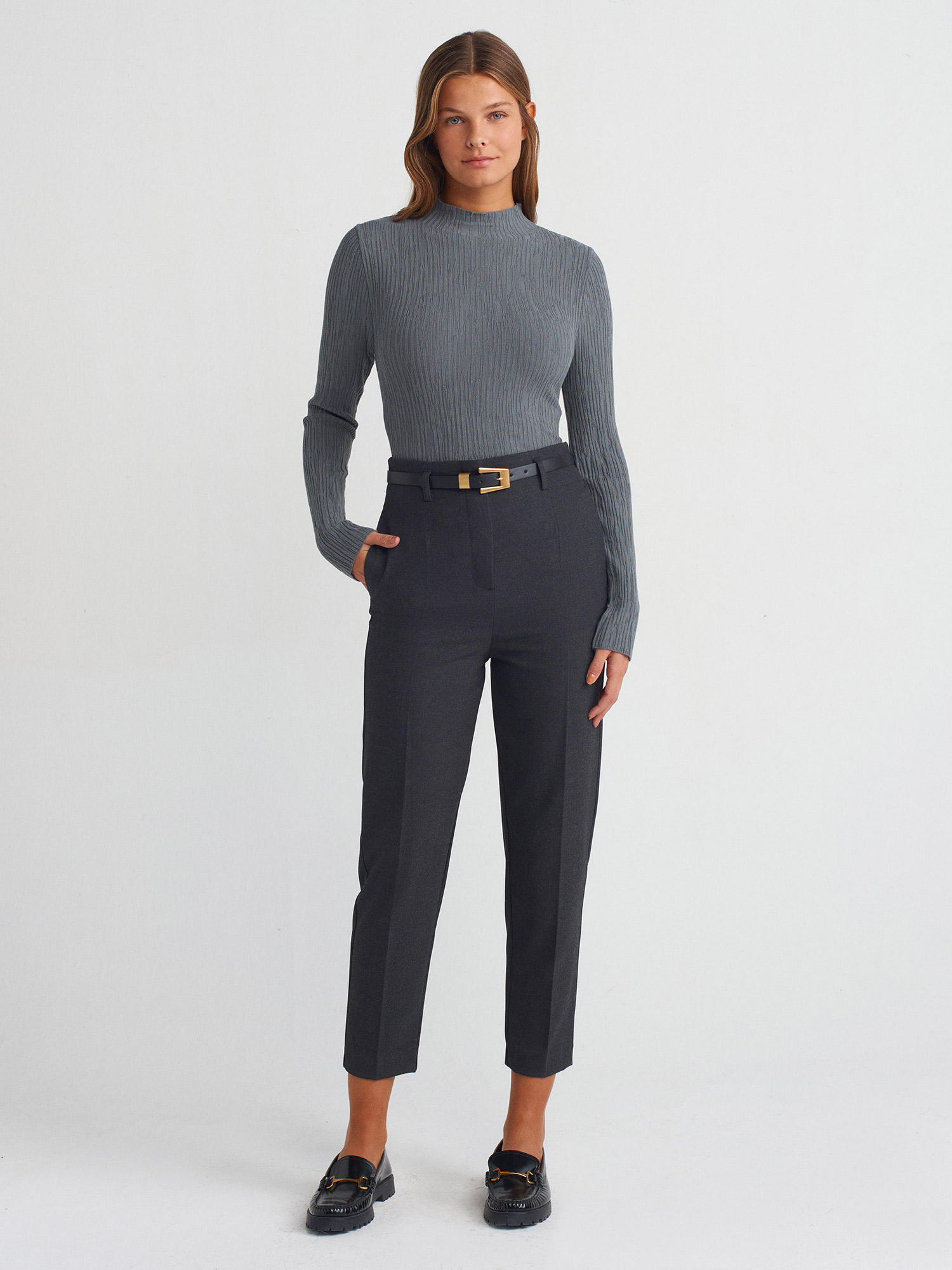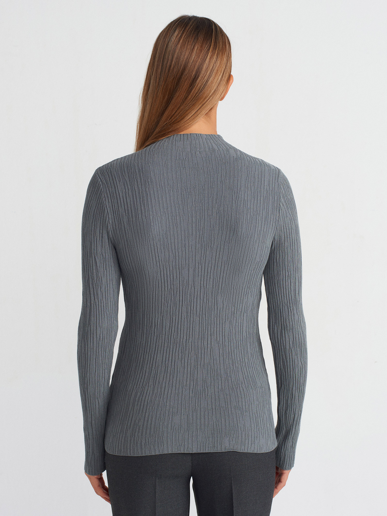 10631 Dik Yaka İnce Dokulu Triko Kazak-Füme