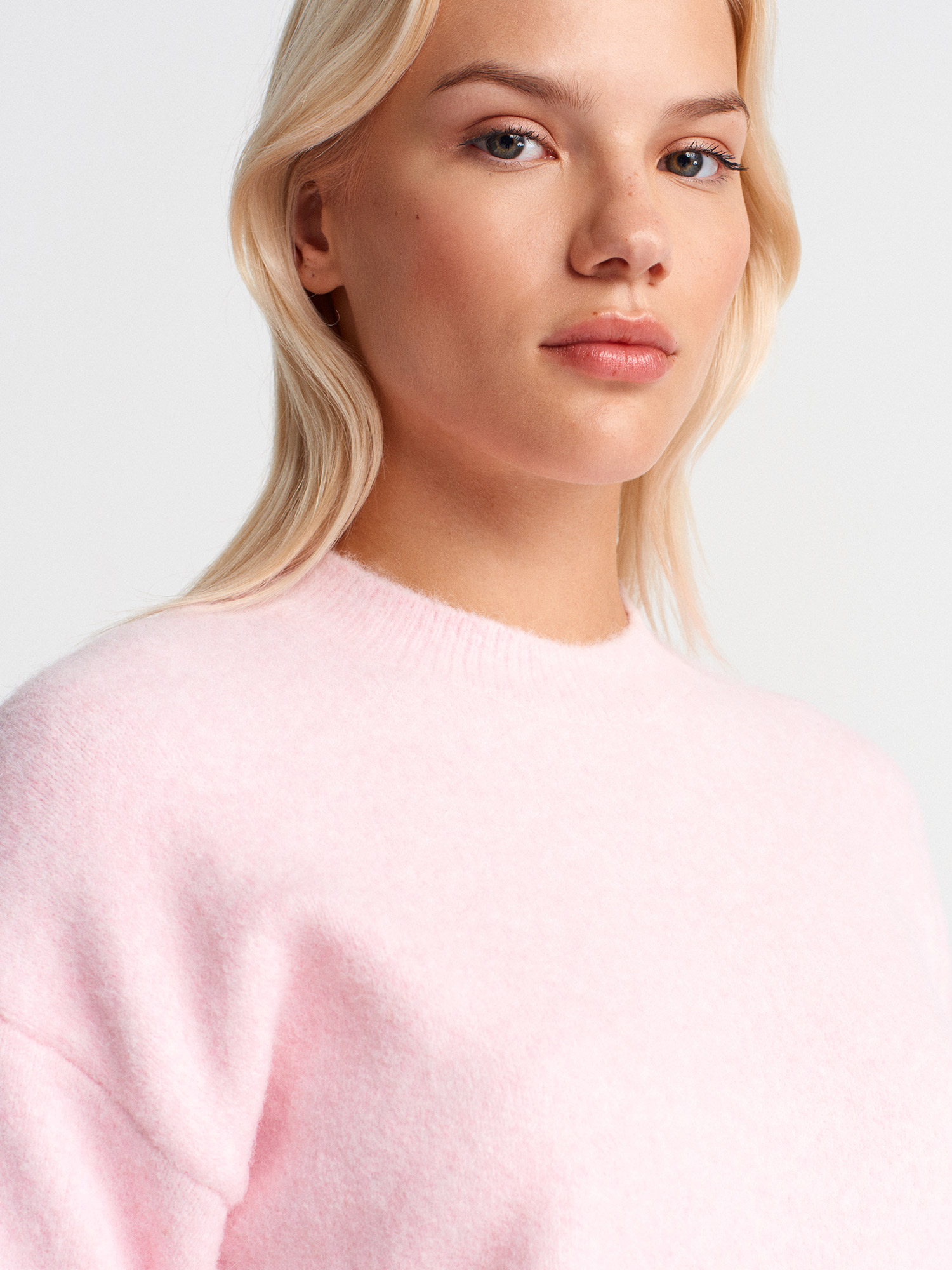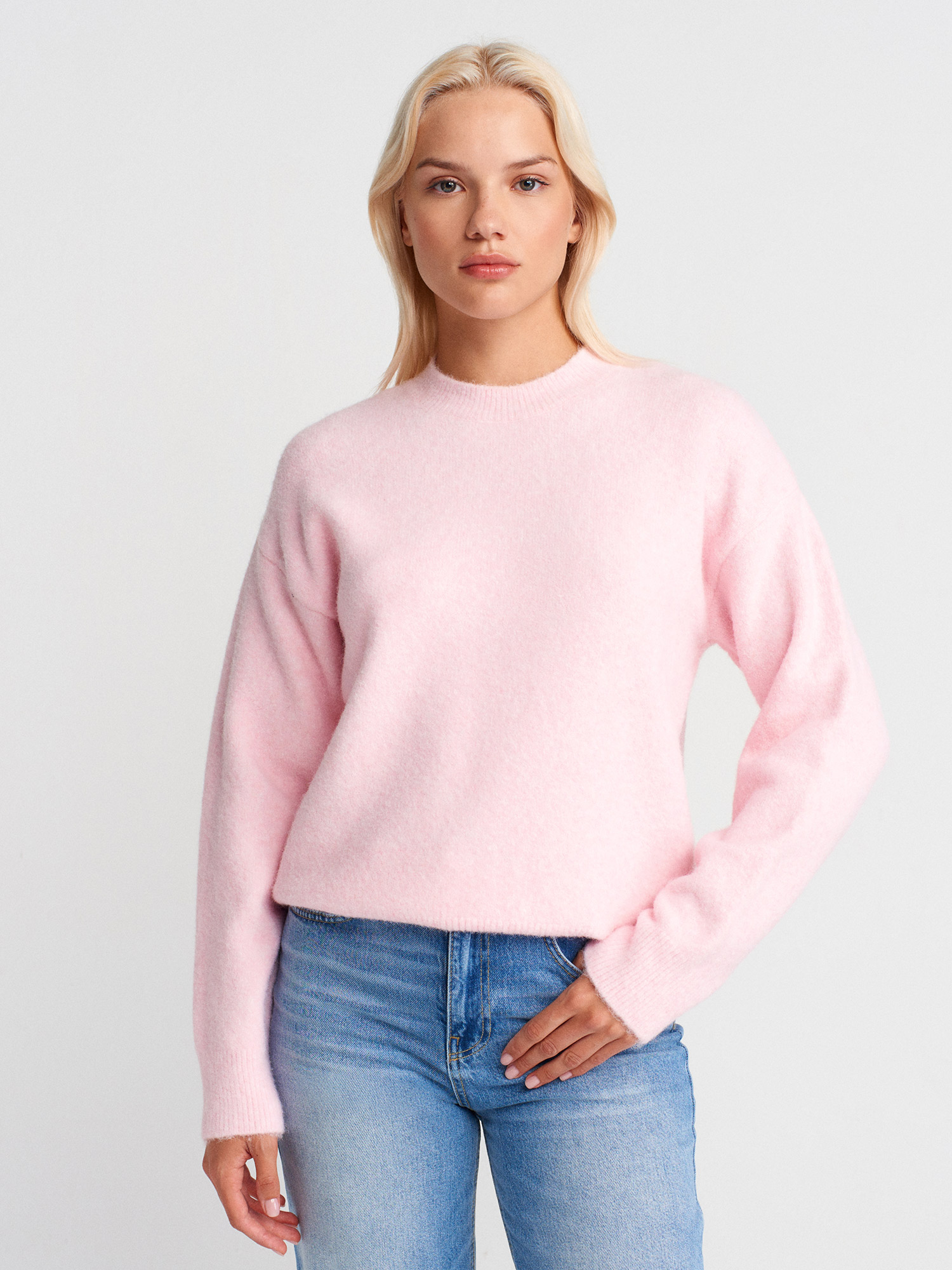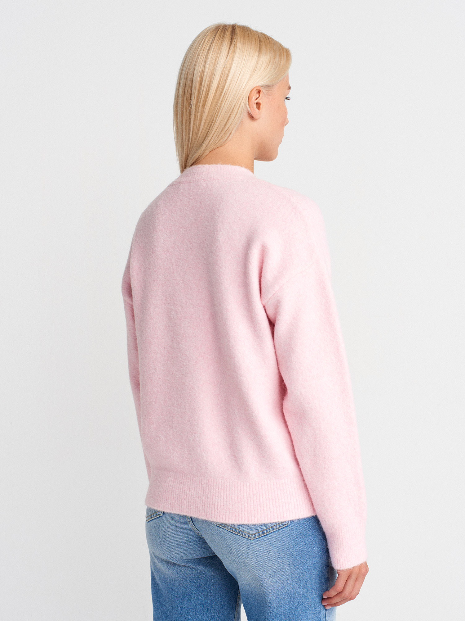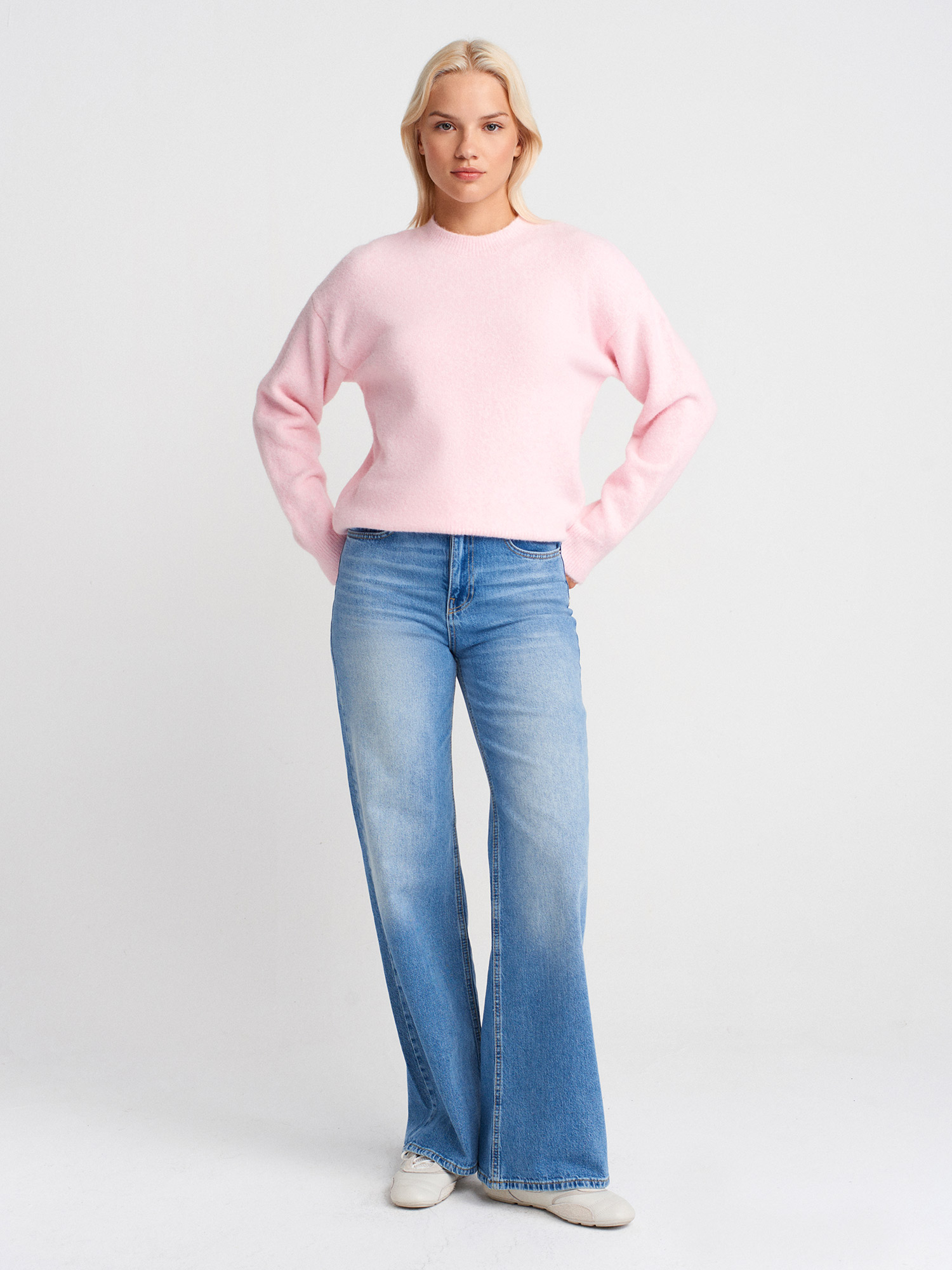 10640 Bisiklet Yaka Yumuşak Dokulu Triko Kazak-Açık Pembe