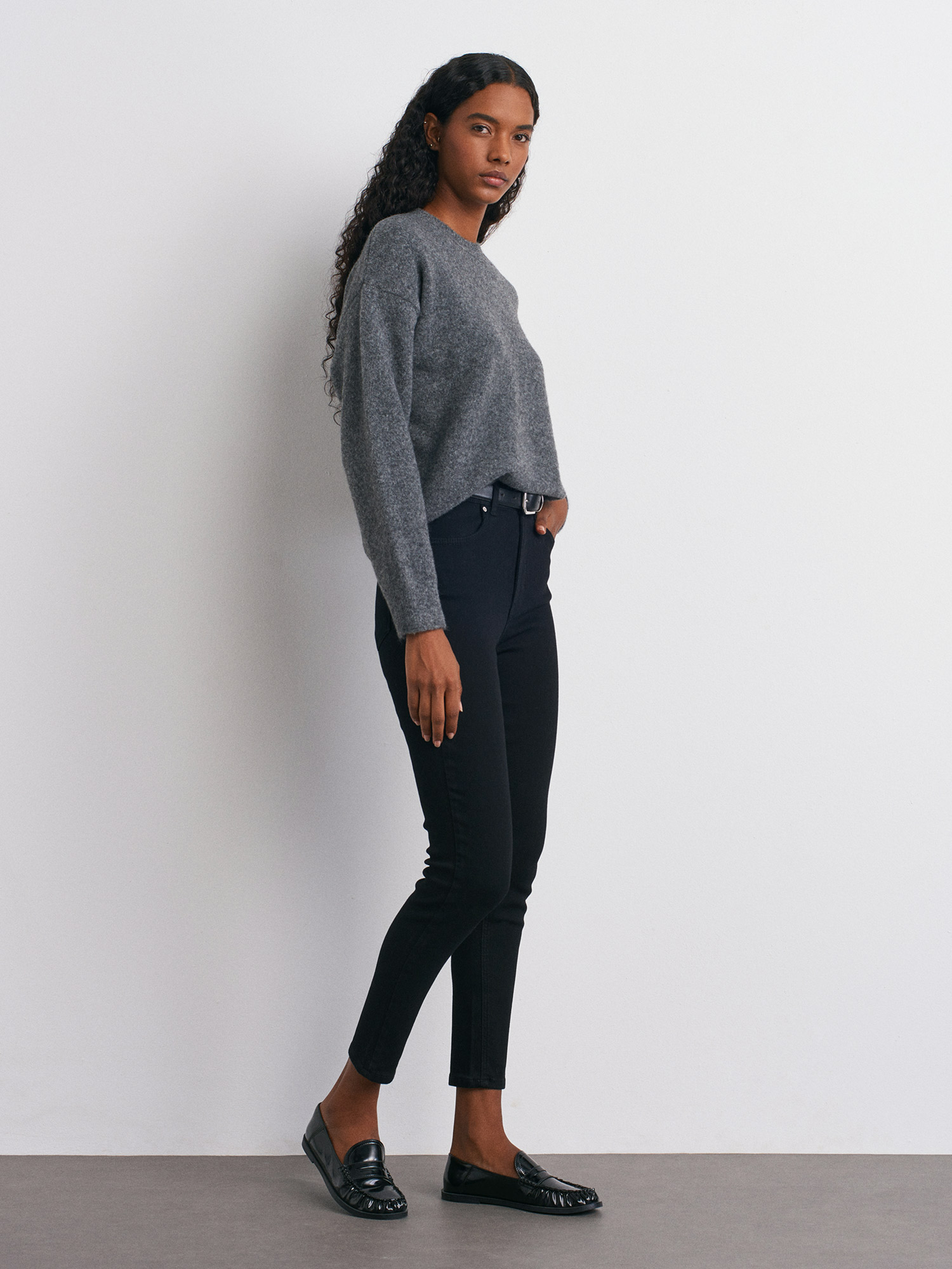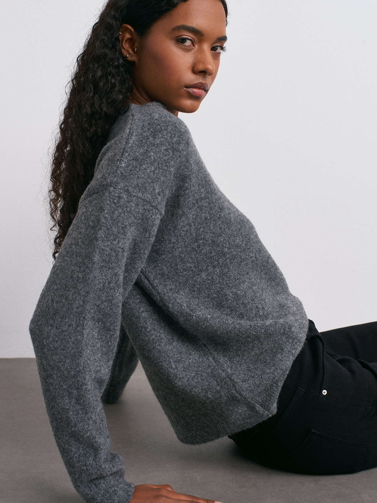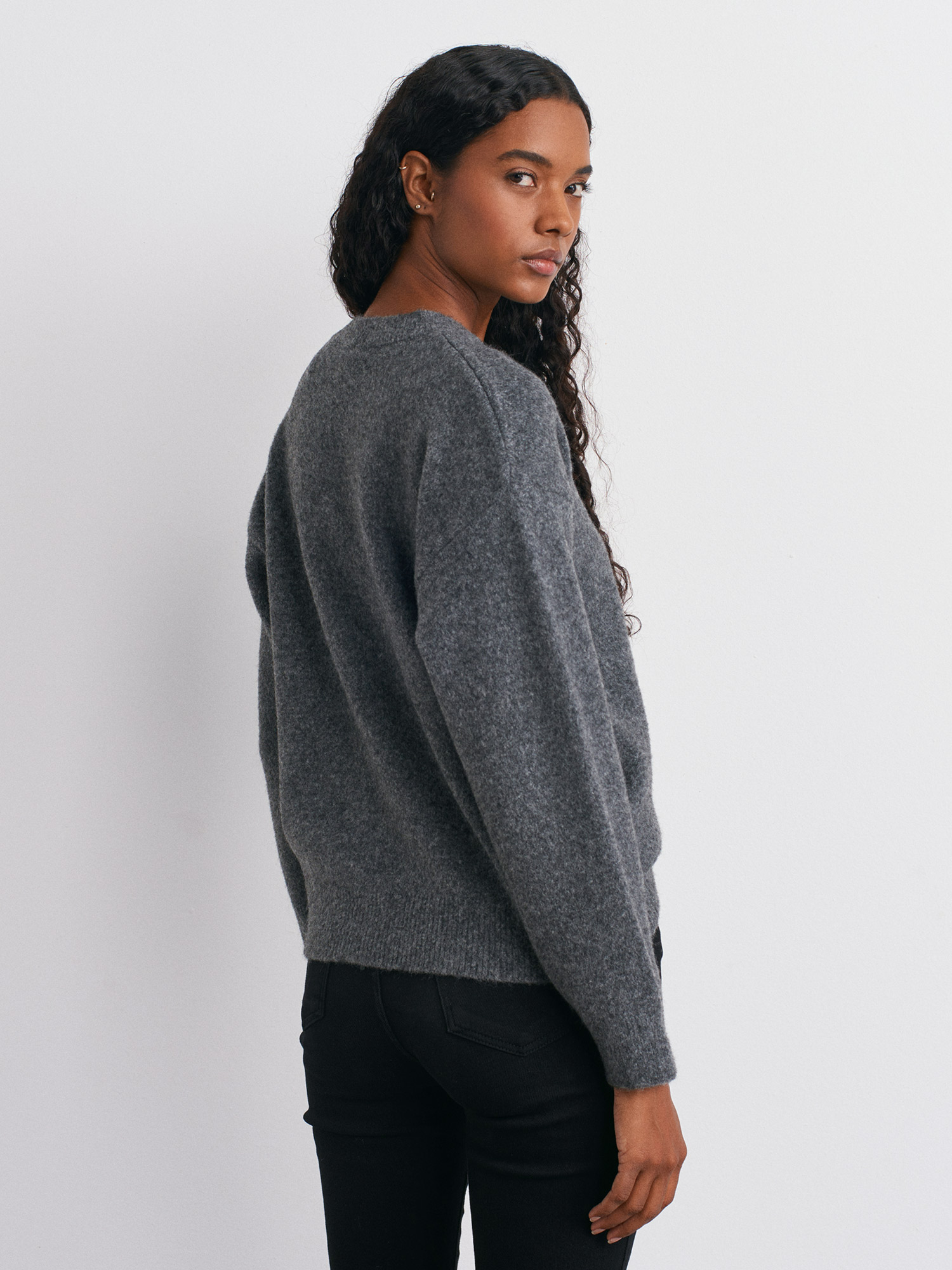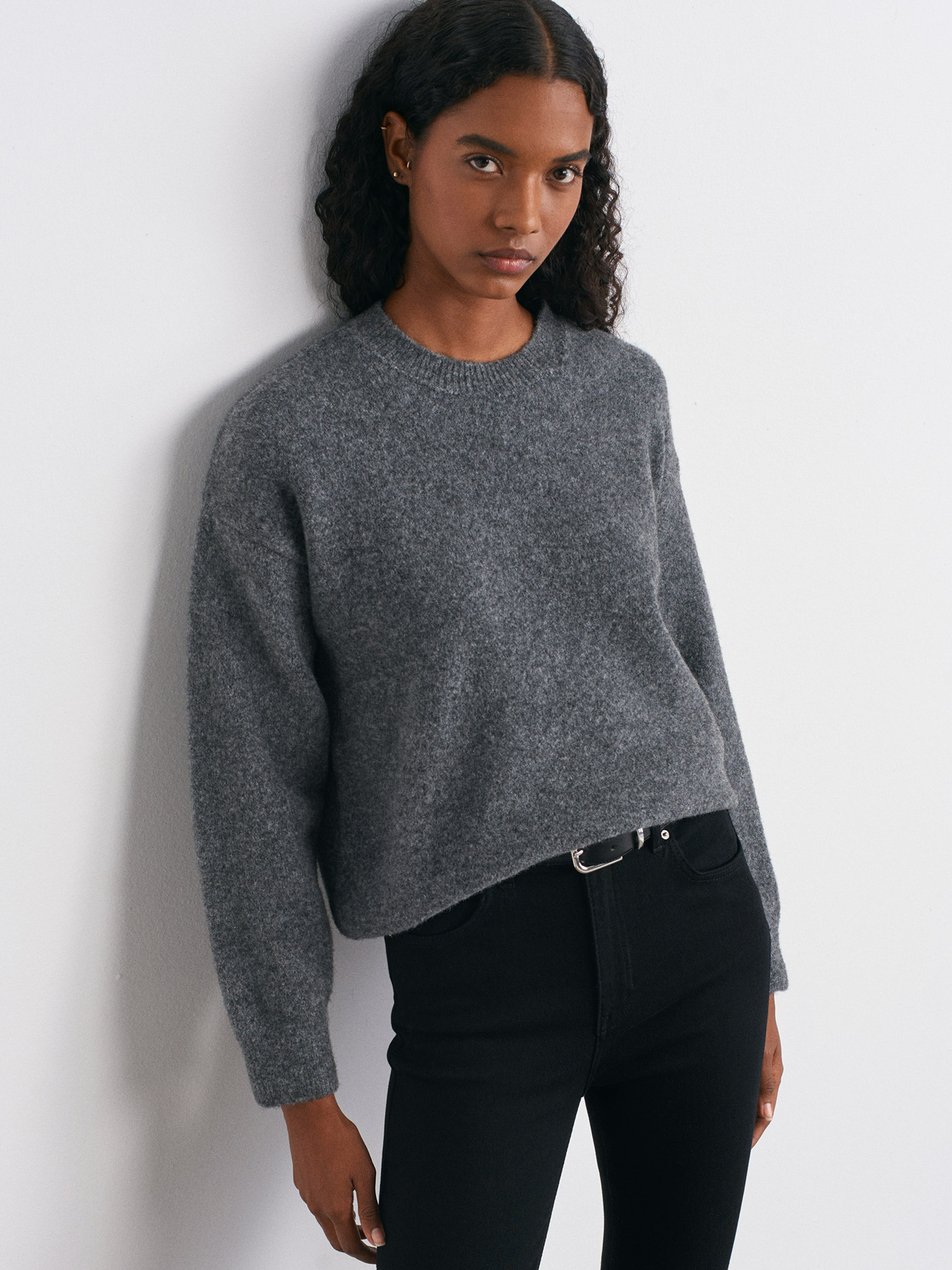 10640 Bisiklet Yaka Yumuşak Dokulu Triko Kazak-K.Füme Mel