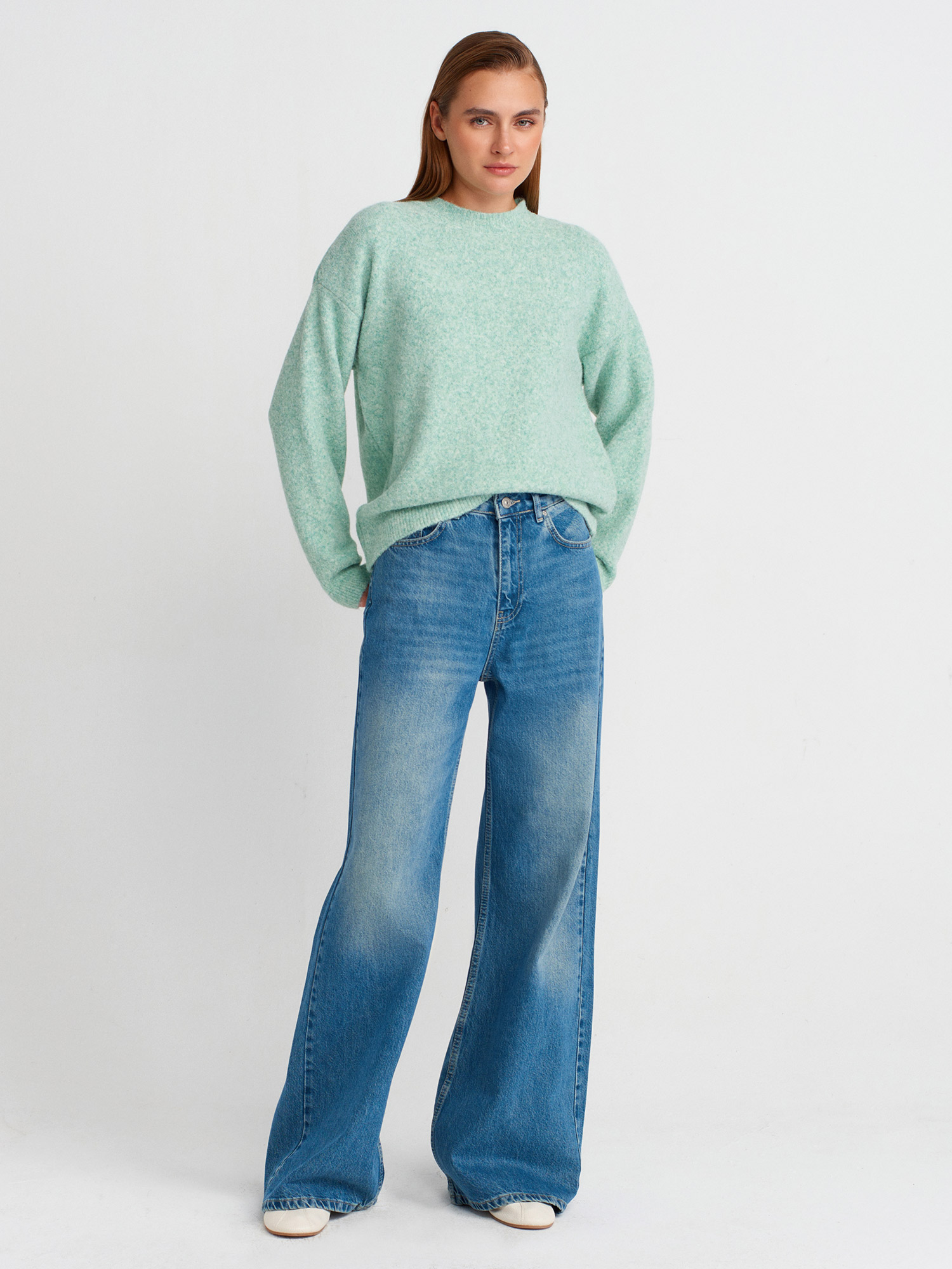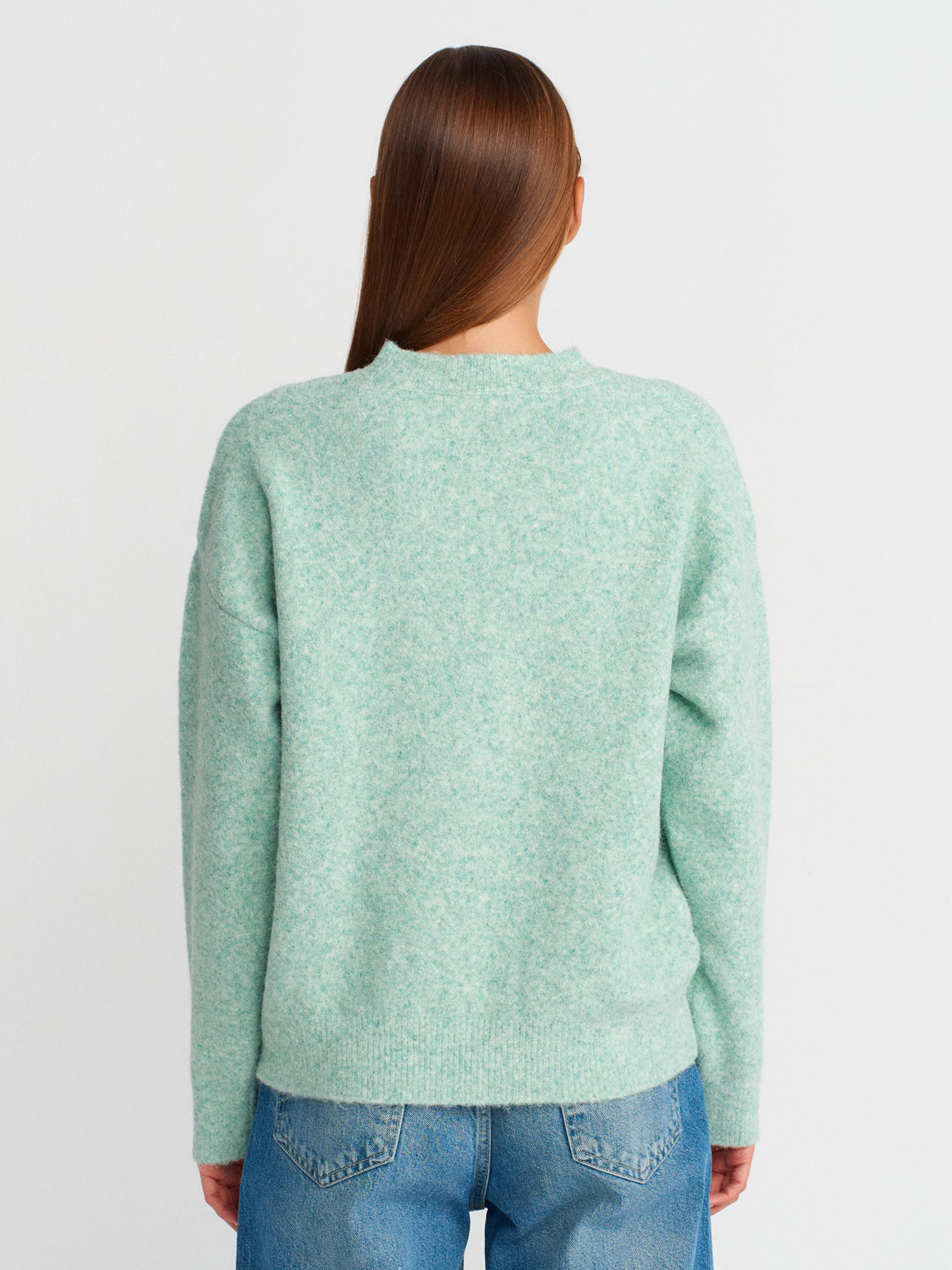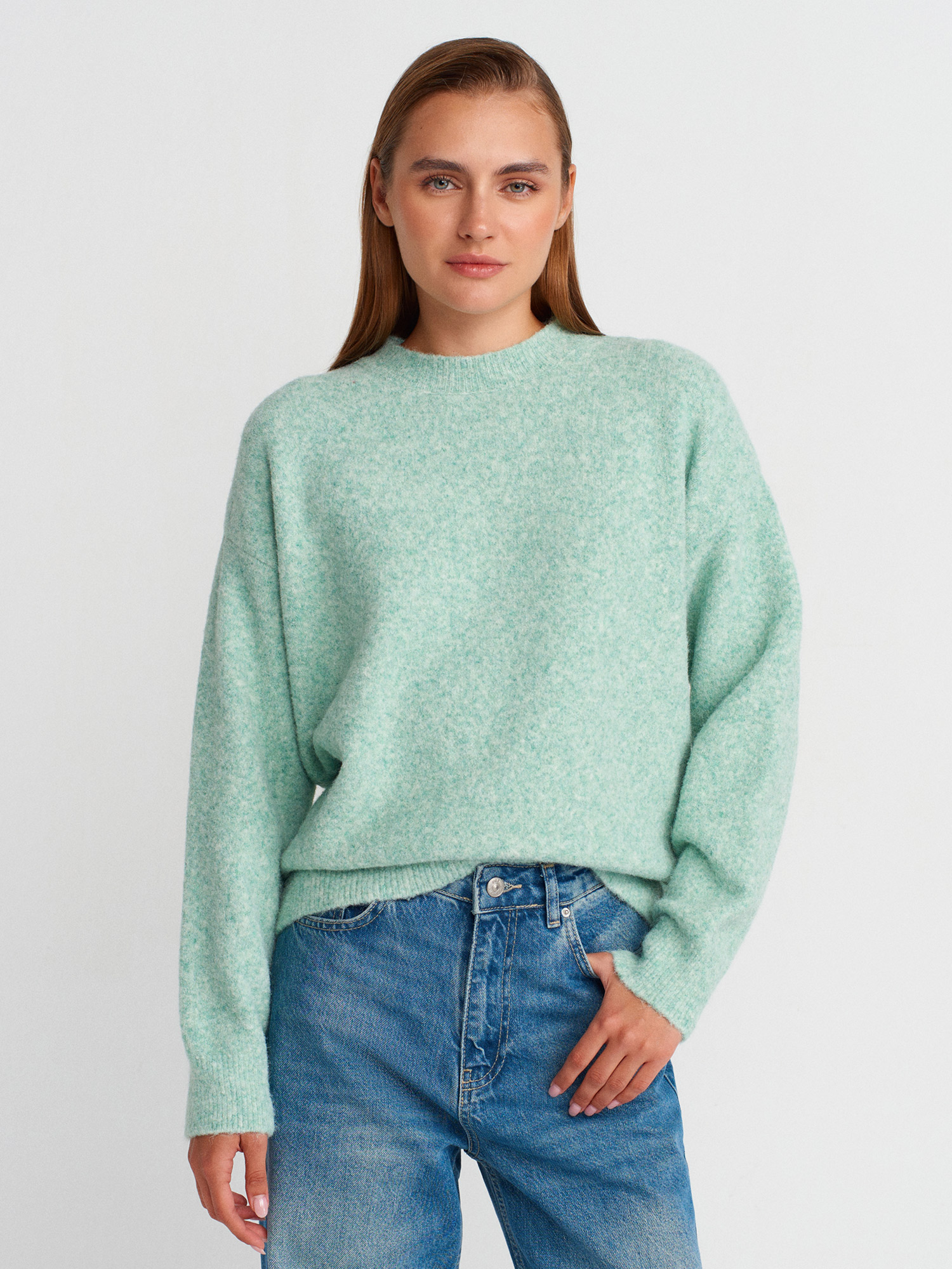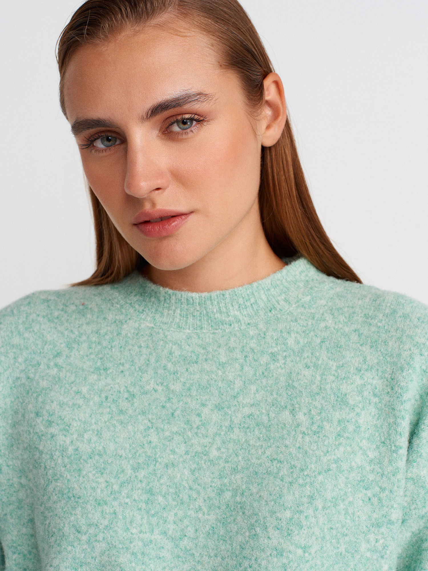 10640 Bisiklet Yaka Yumuşak Dokulu Triko Kazak-Mint