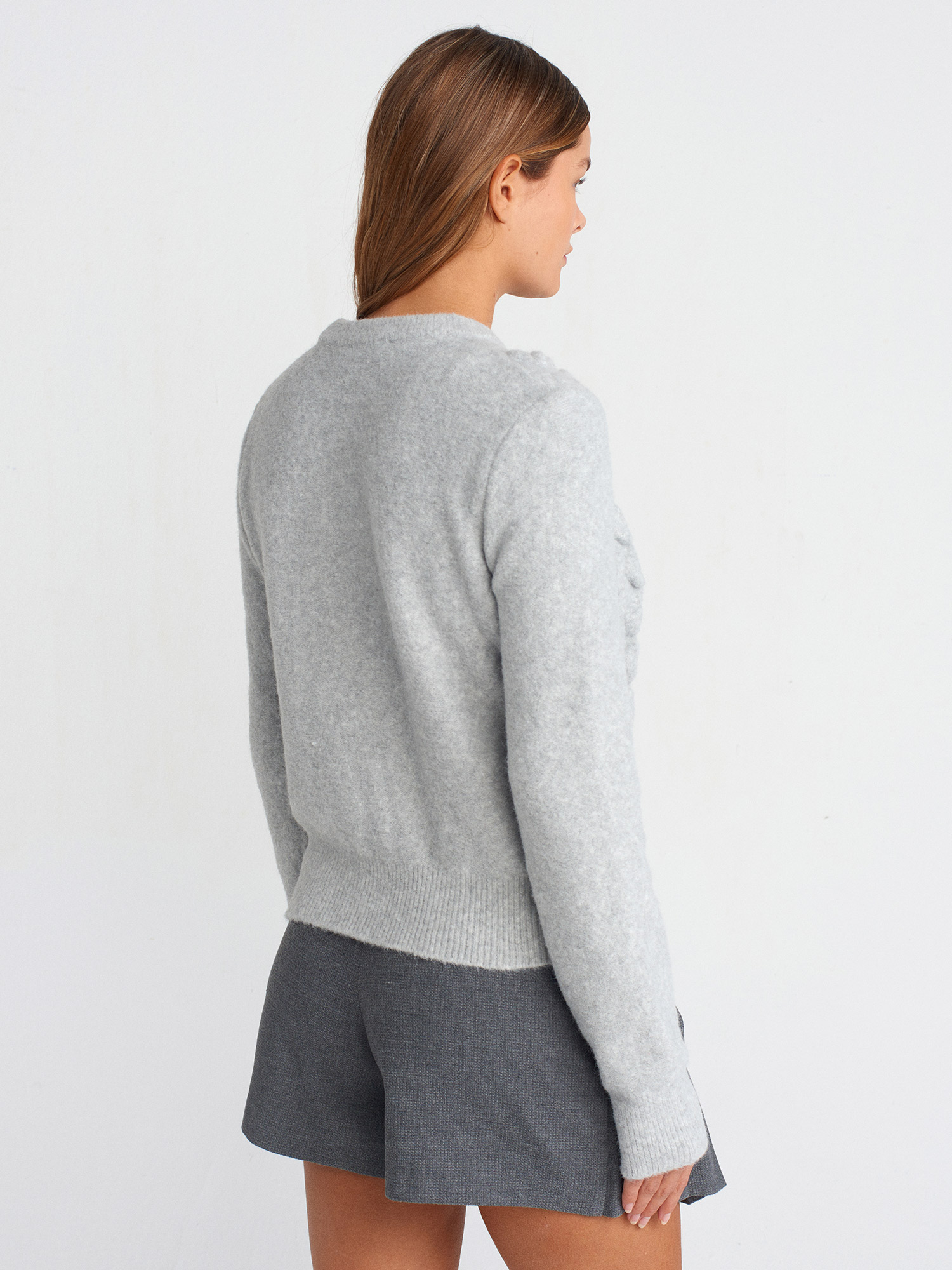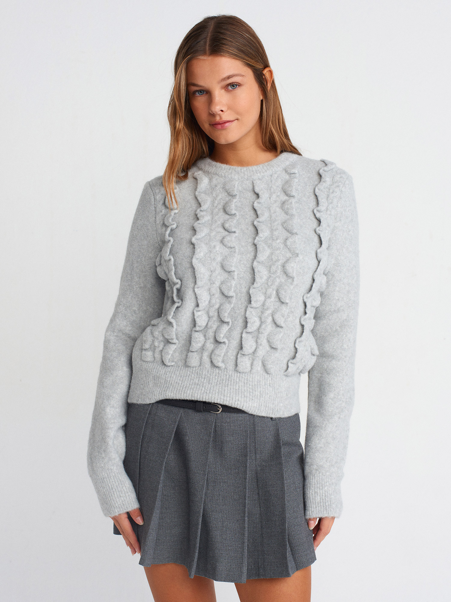 10642 Bisiklet Yaka Fırfırlı Triko Kazak-Gri