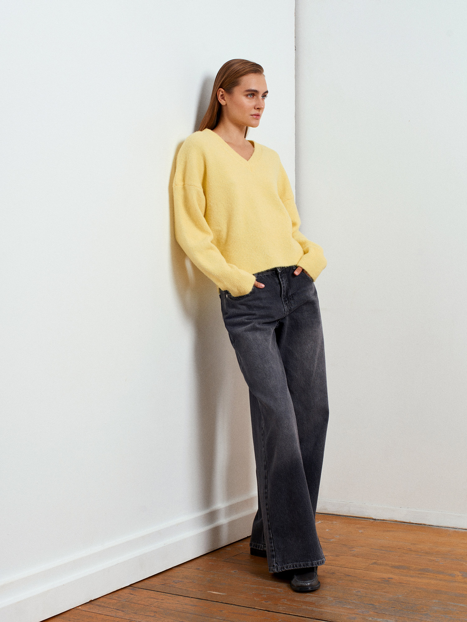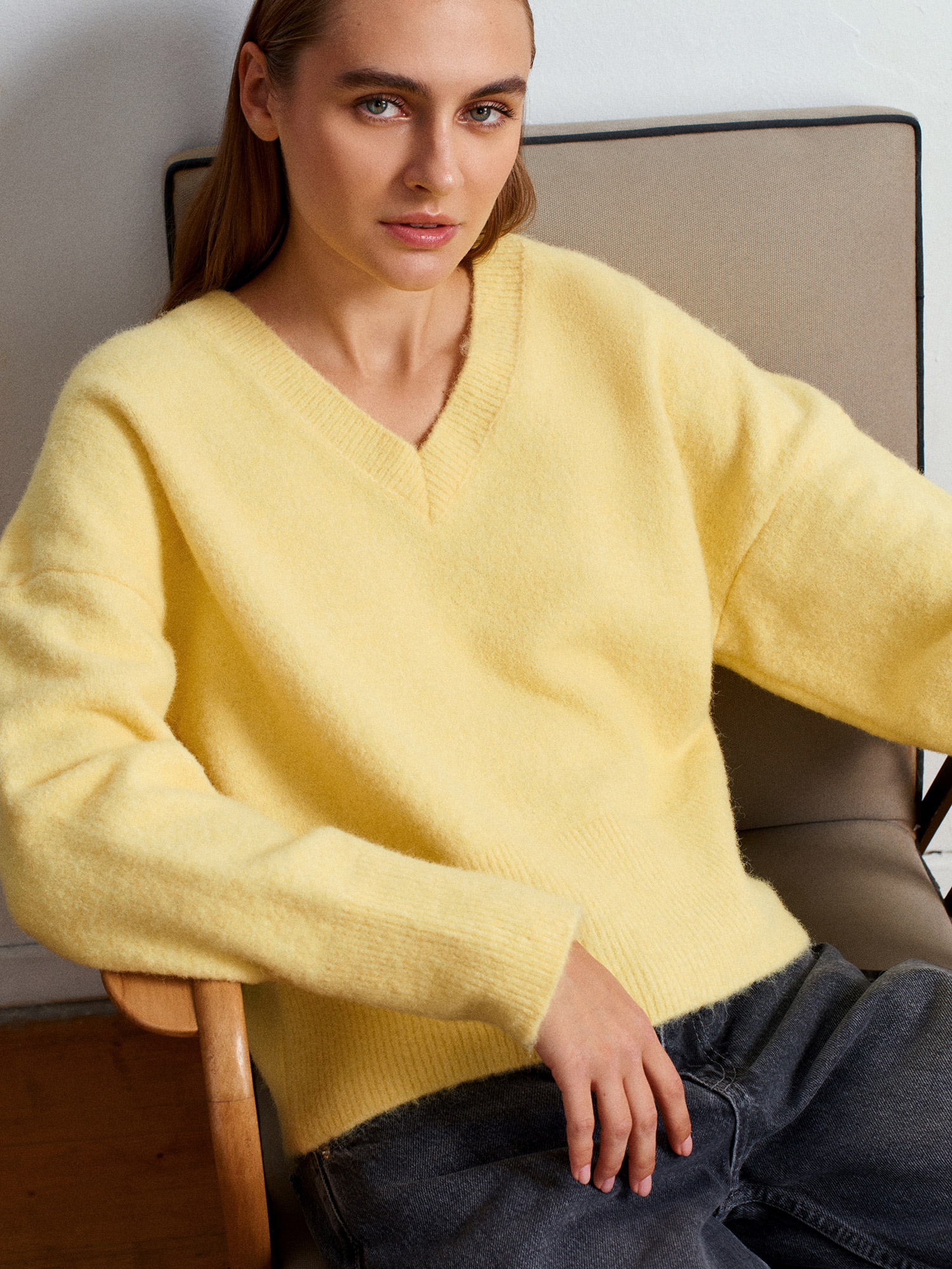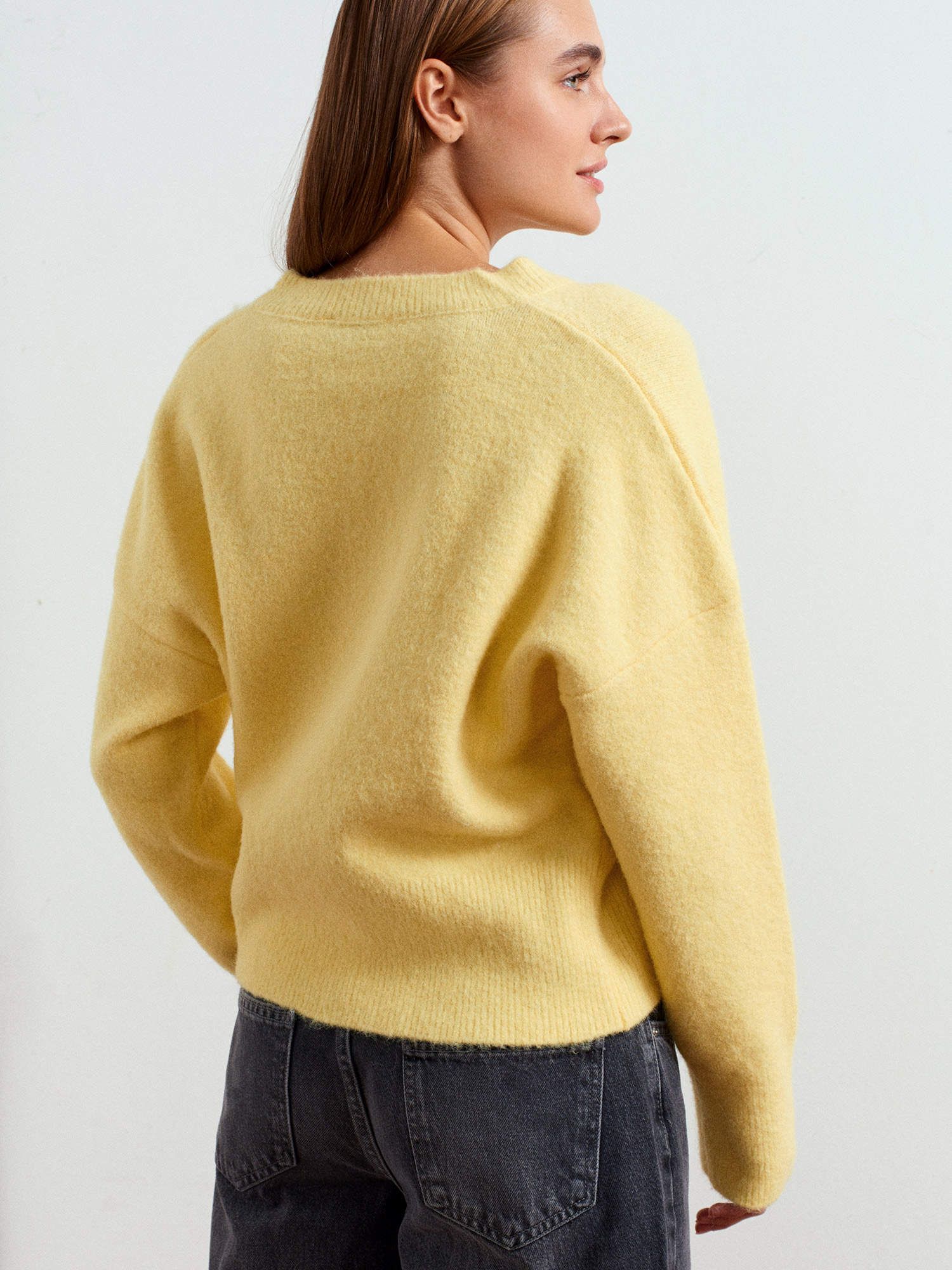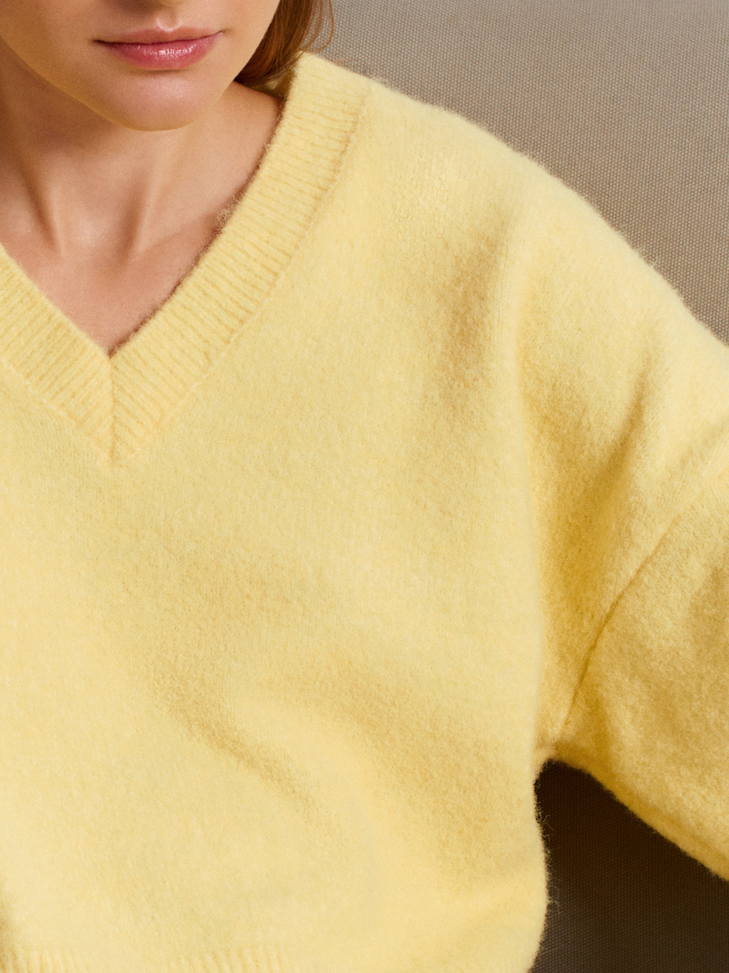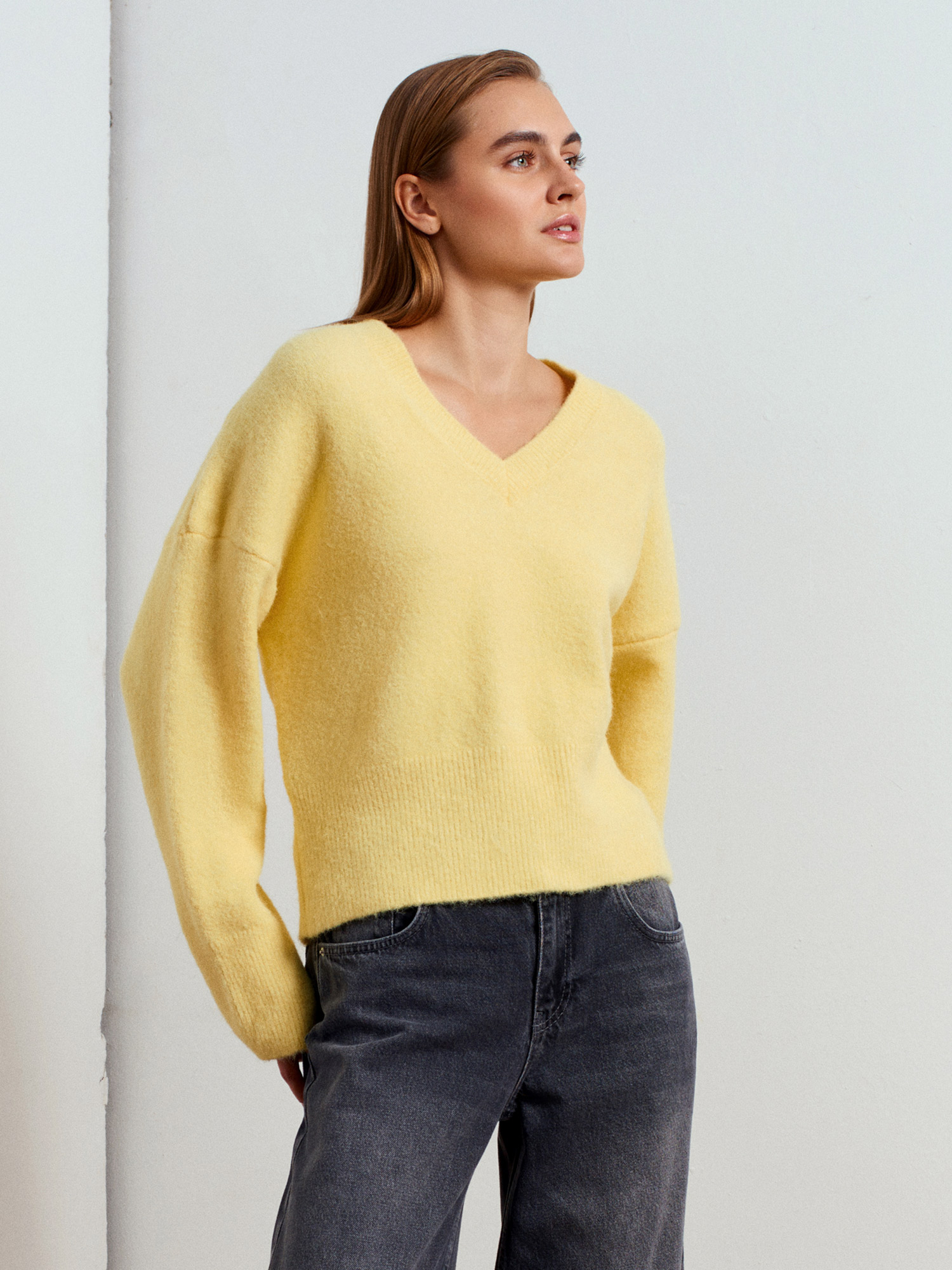 10645 V Yaka Yün Karışımlı Triko Kazak-Koyu Sarı