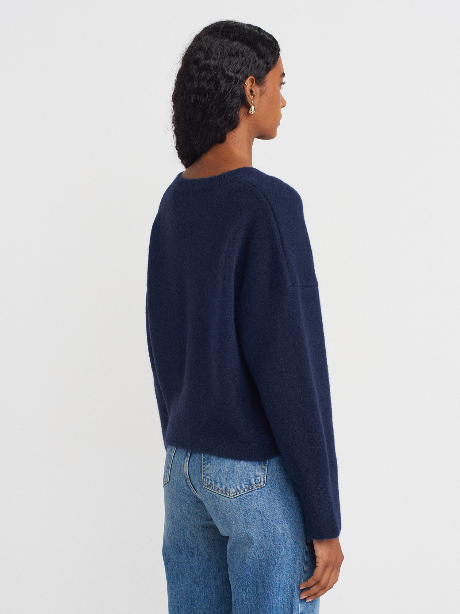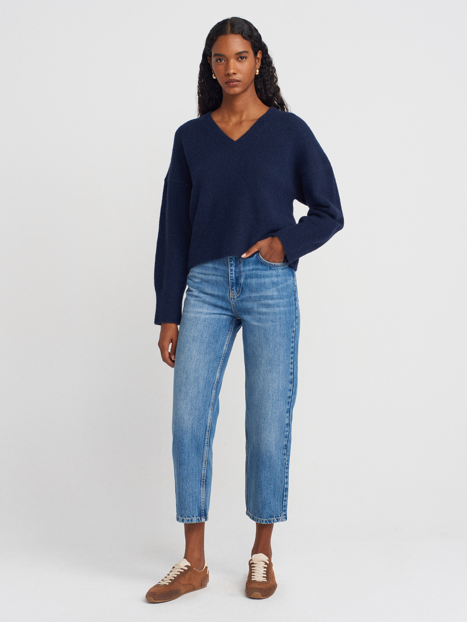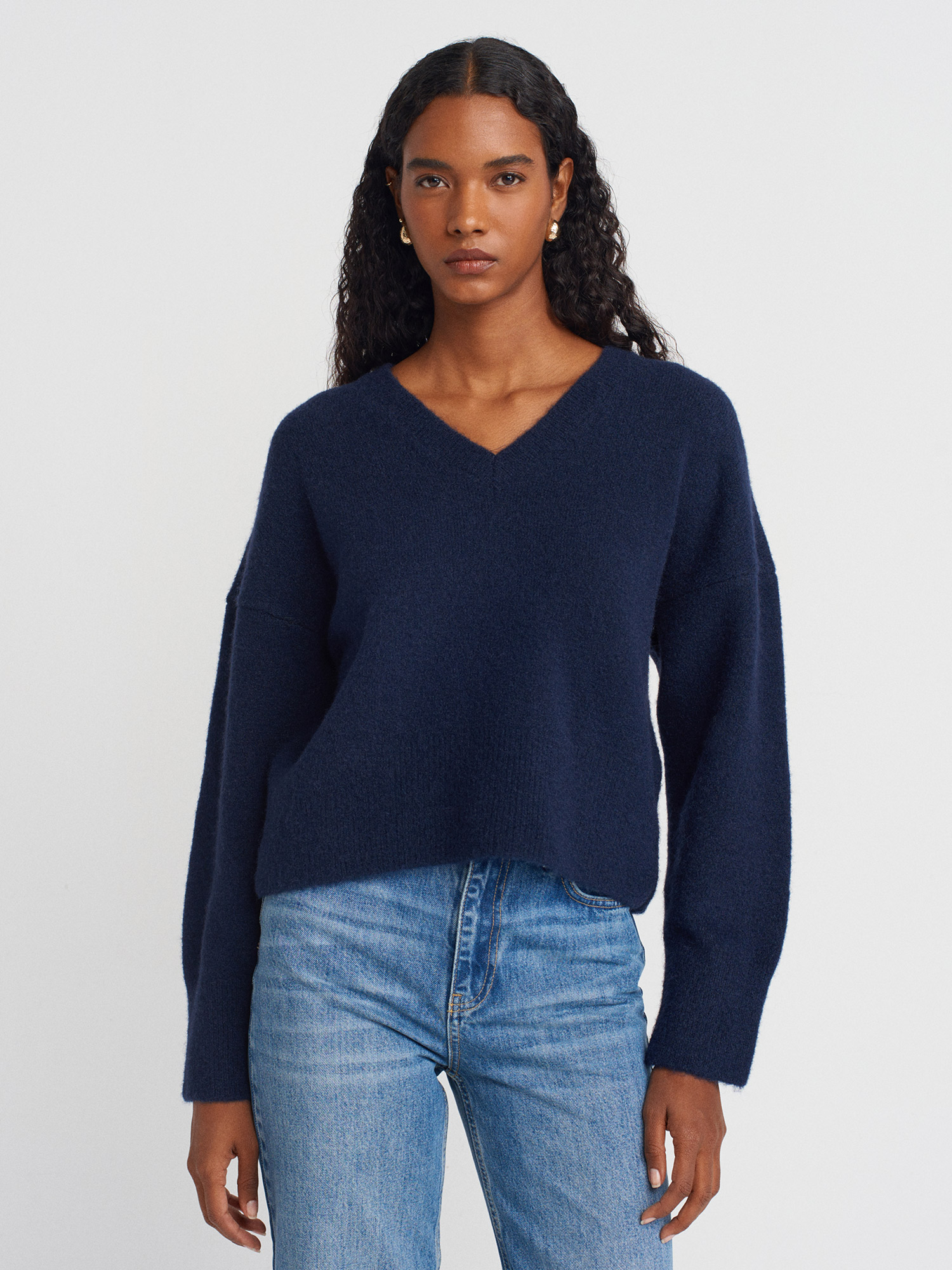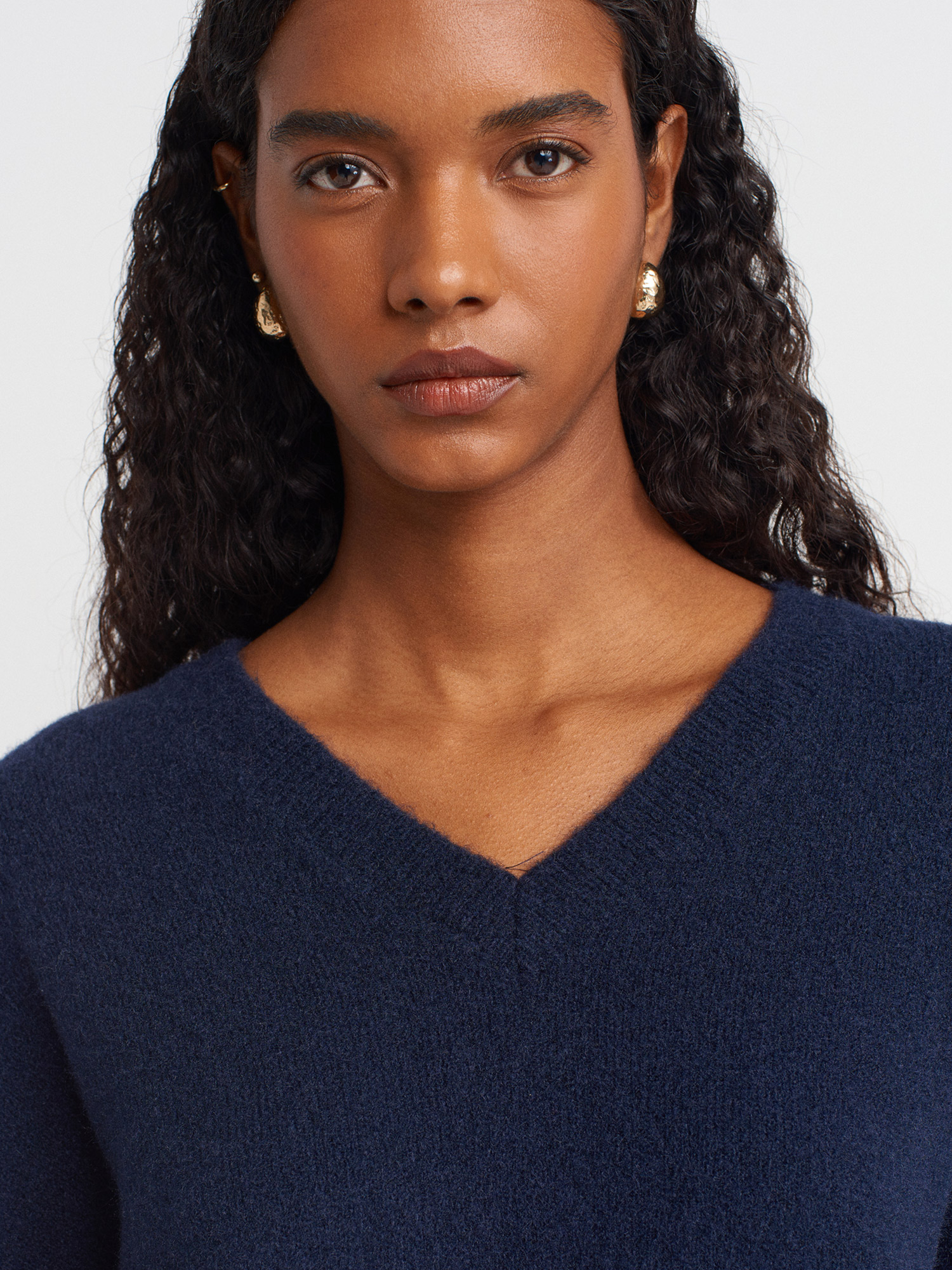 10645 V Yaka Yün Karışımlı Triko Kazak-Lacivert
