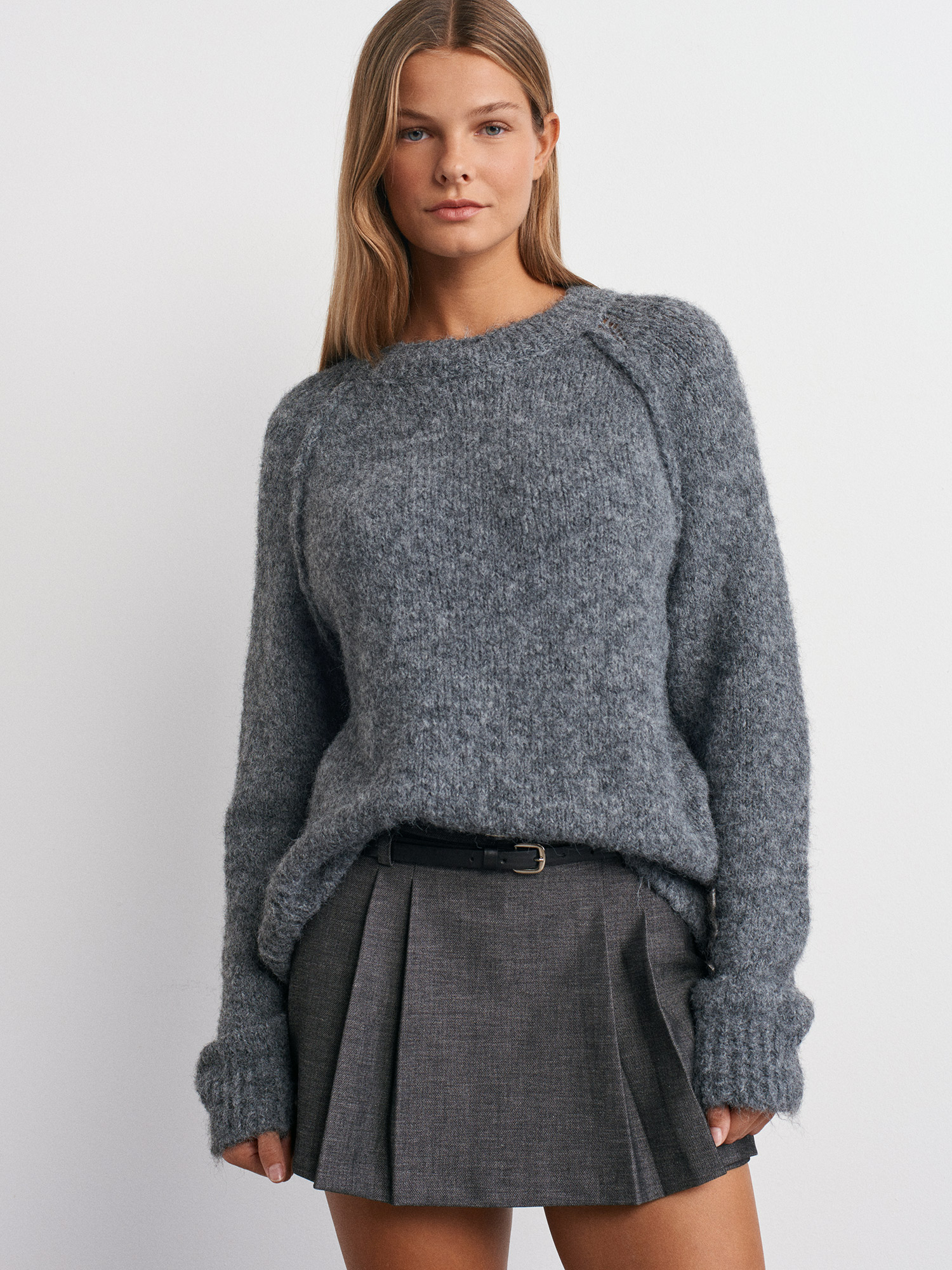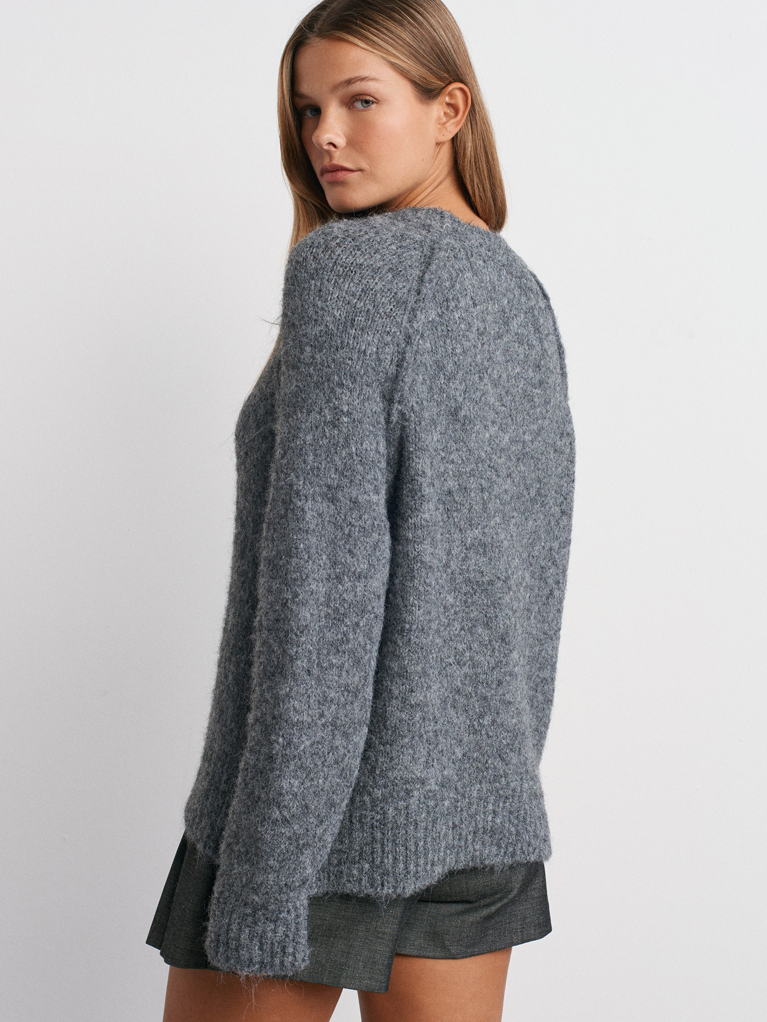 10646 Bisiklet Yaka Dikiş Detaylı Triko Kazak-Füme M.