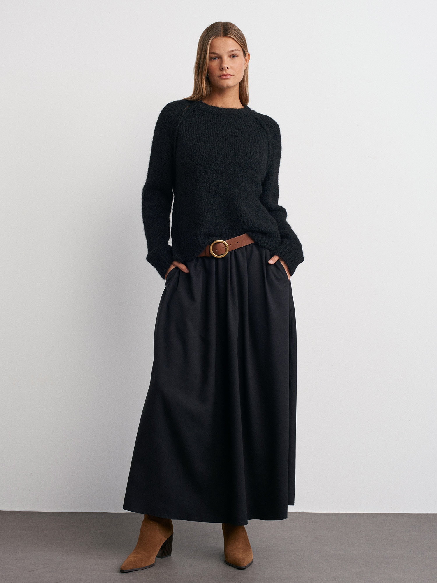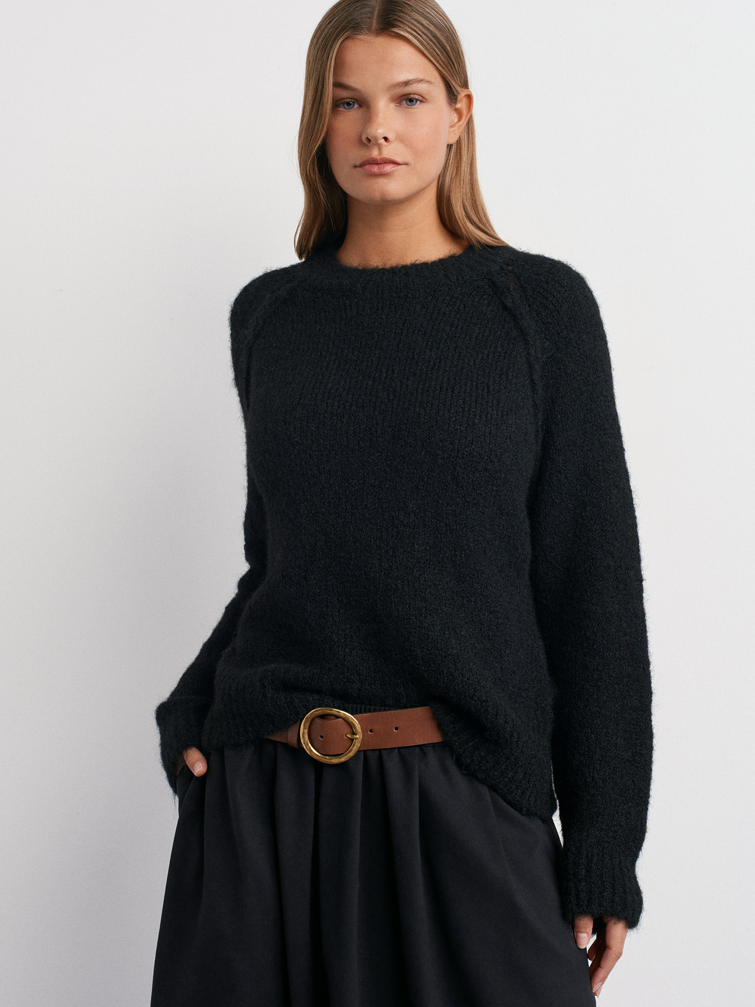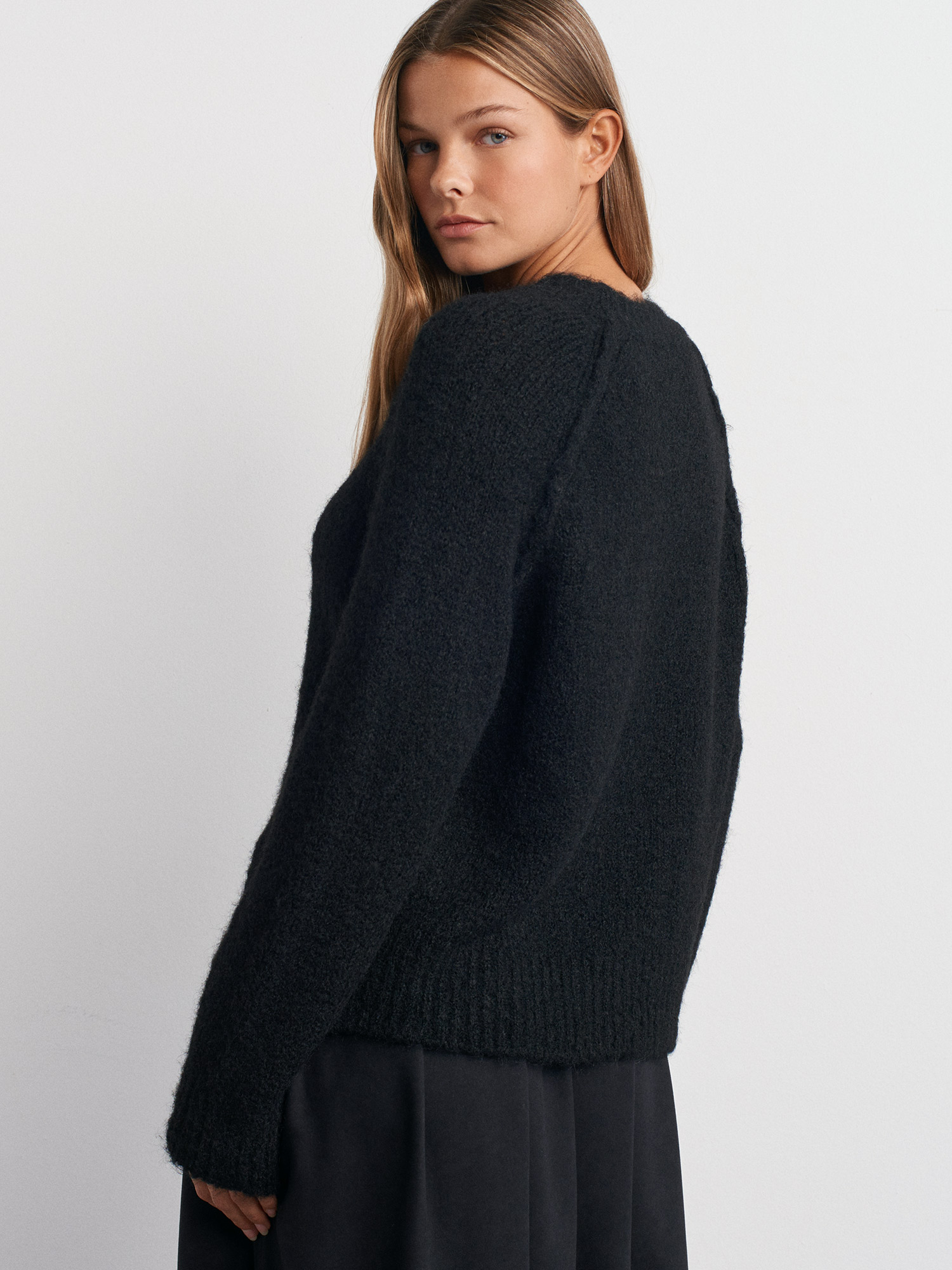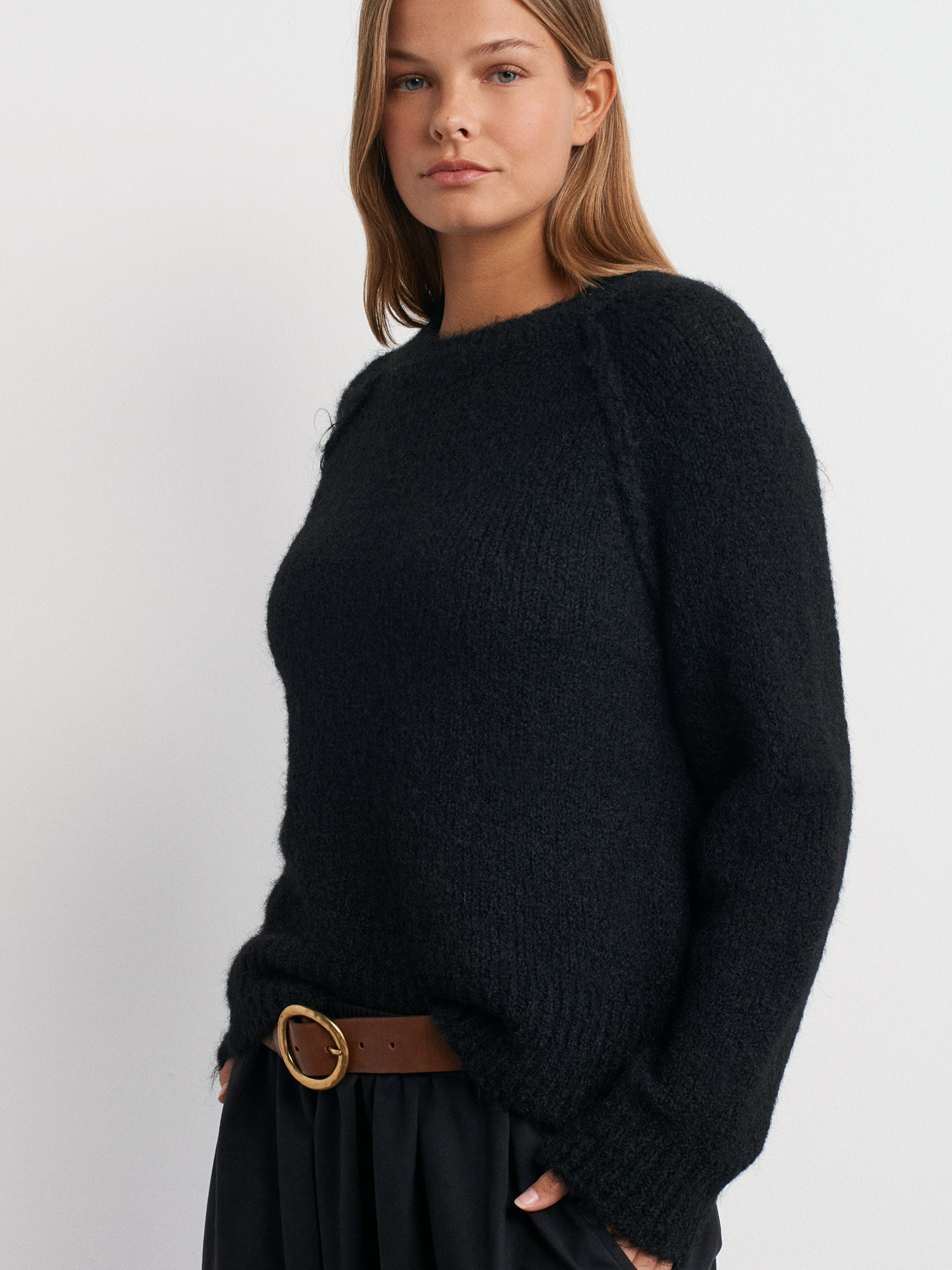 10646 Bisiklet Yaka Dikiş Detaylı Triko Kazak-Siyah