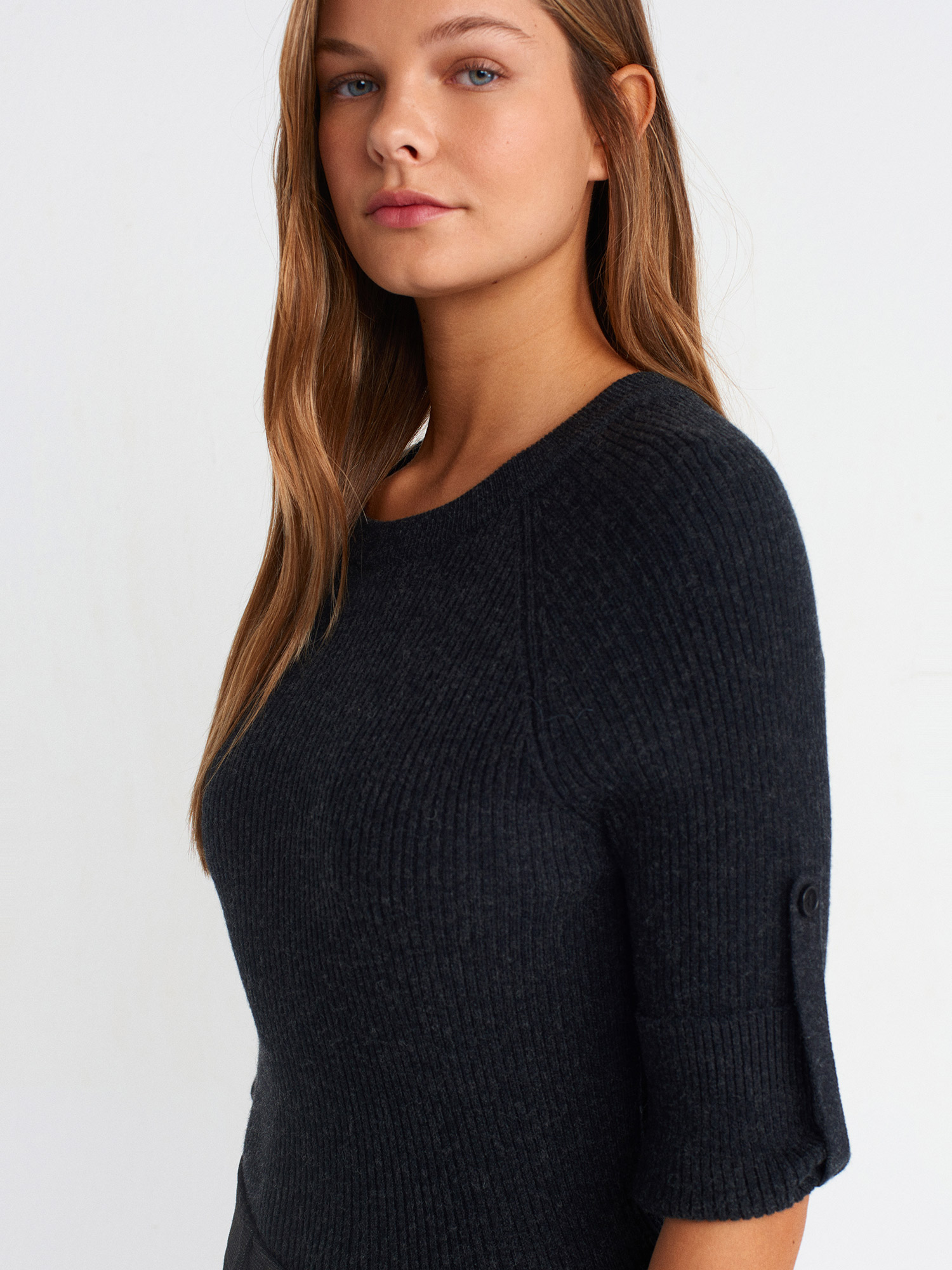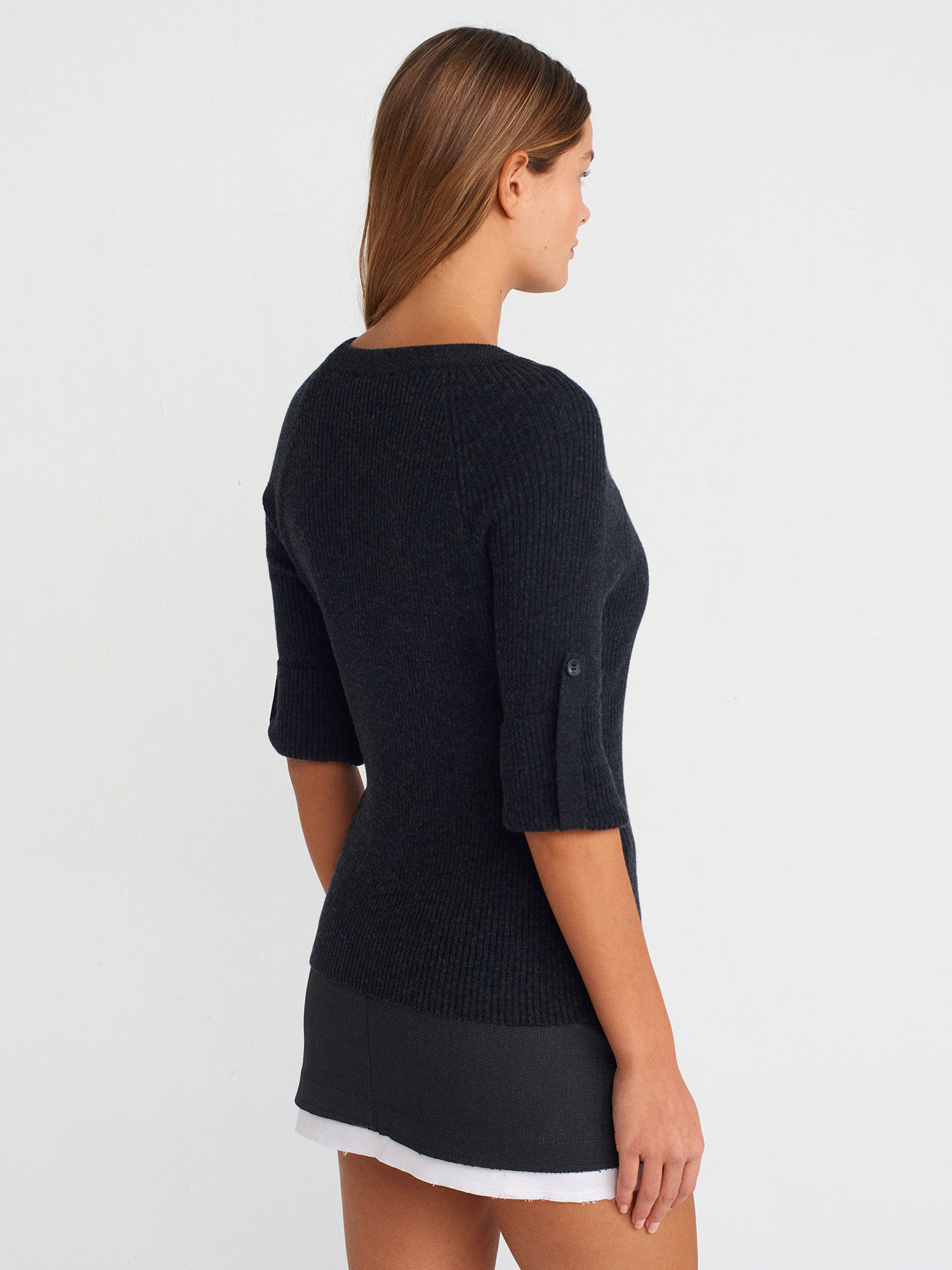 10647 Bisiklet Yaka Fitilli Kol Düğme Detaylı Triko Kazak-Antrasit