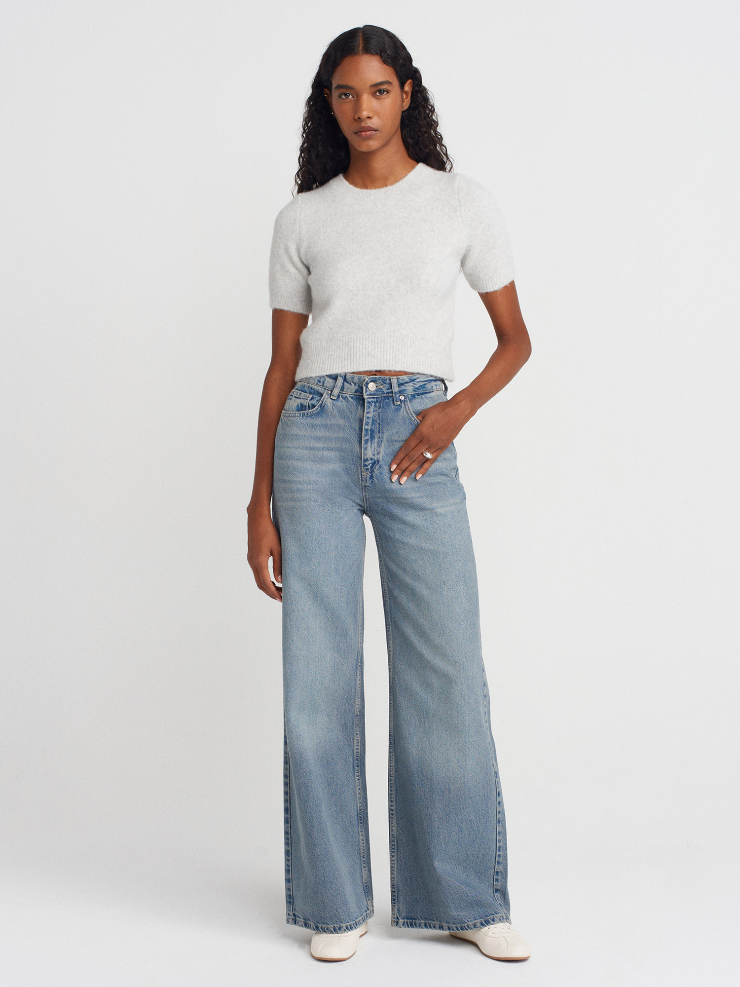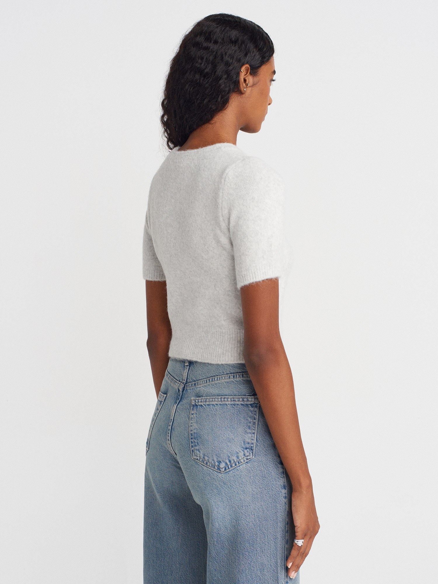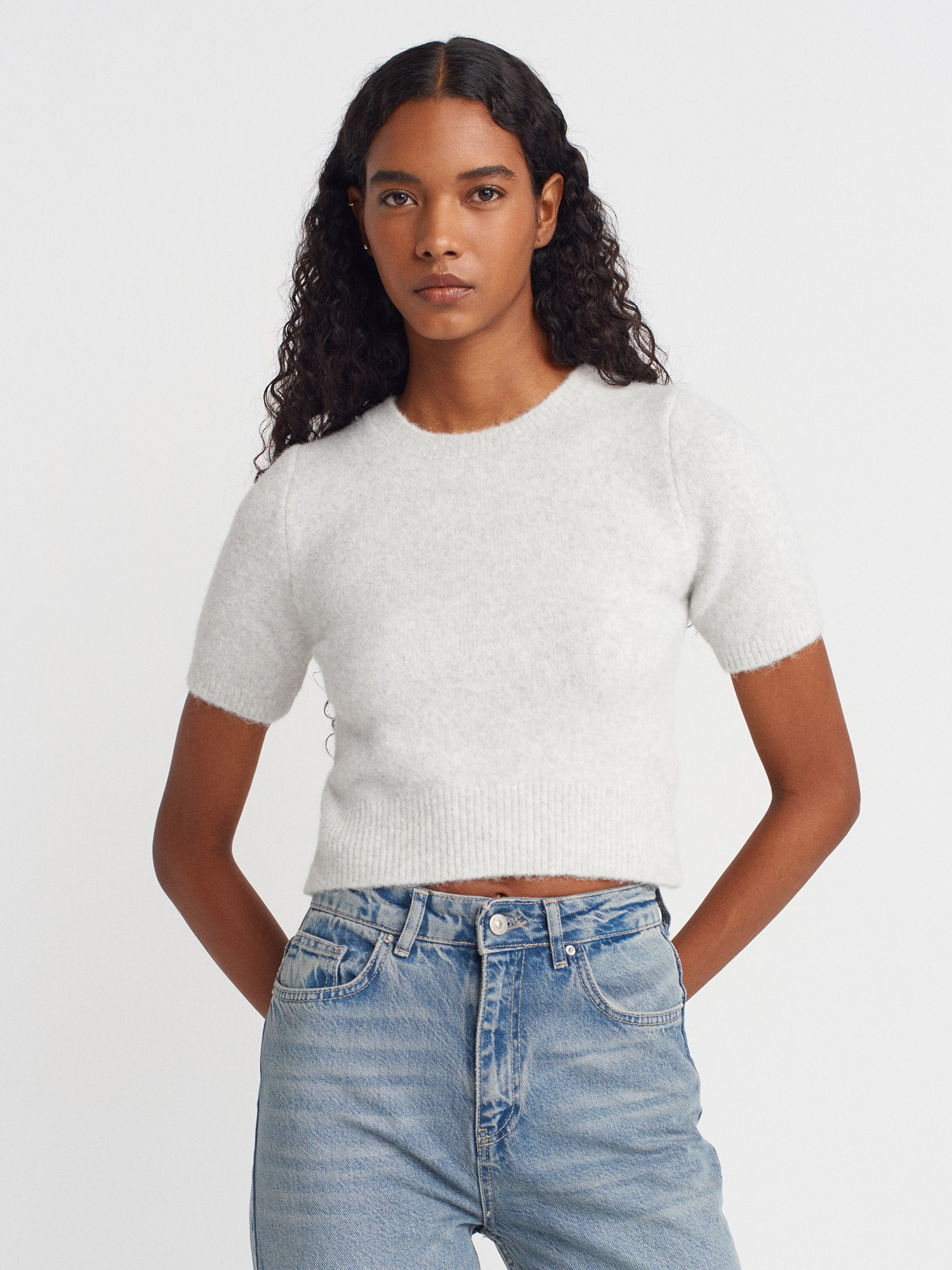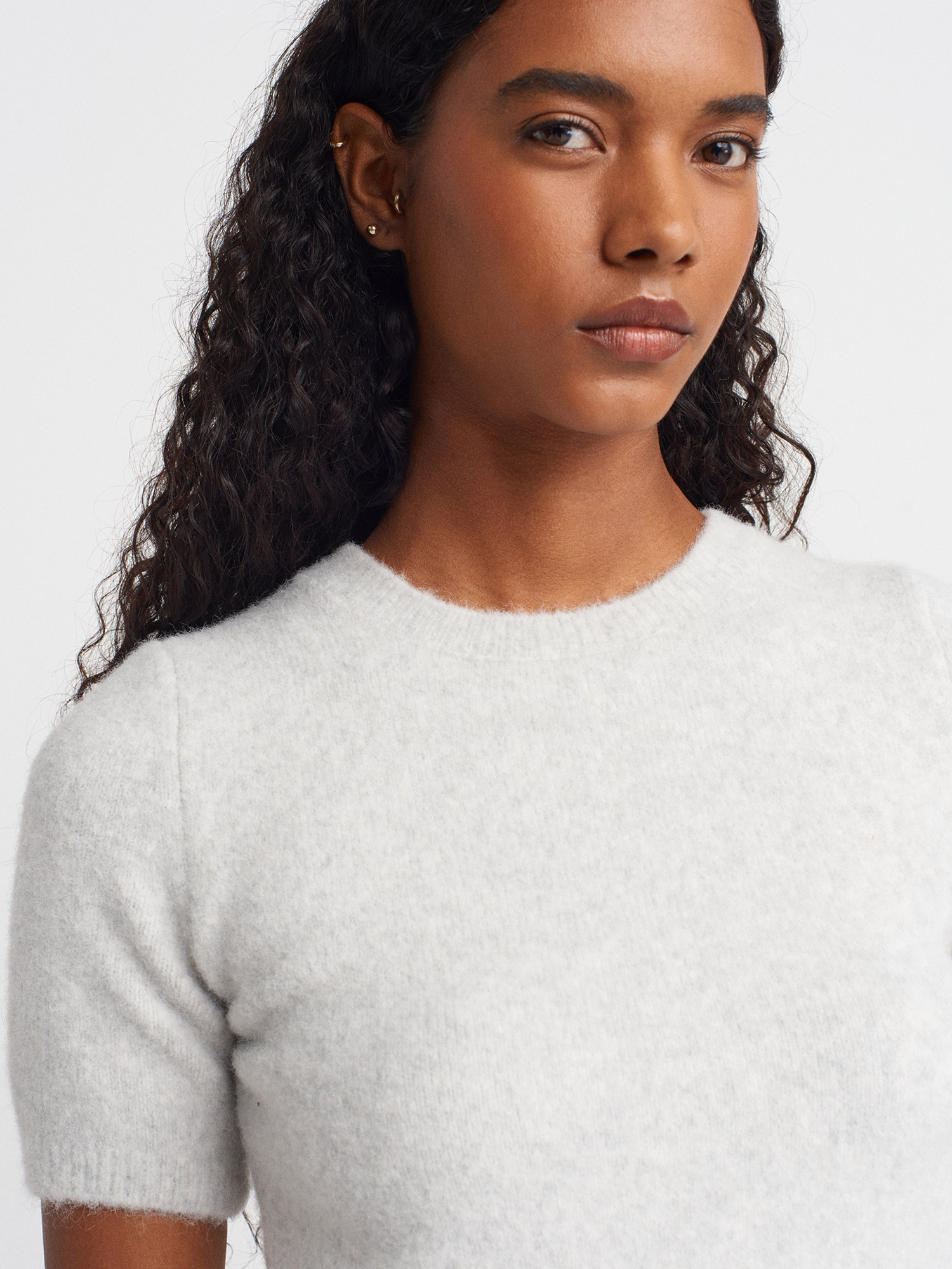 10651 Yün Karışımlı Kısa Kollu Triko Kazak-Açık Gri