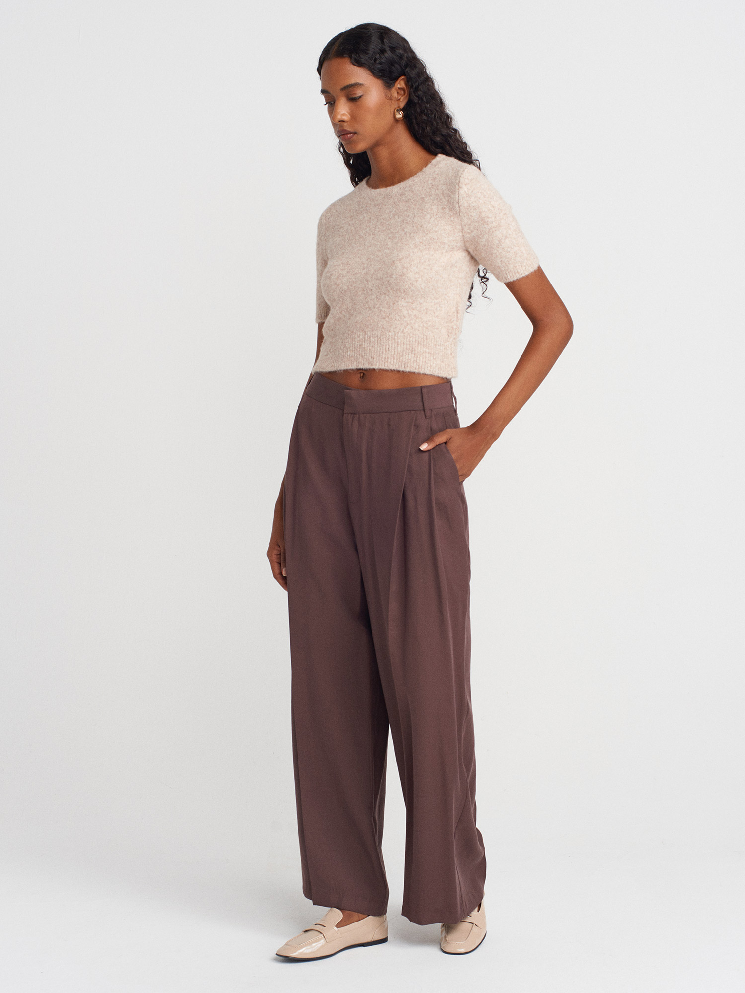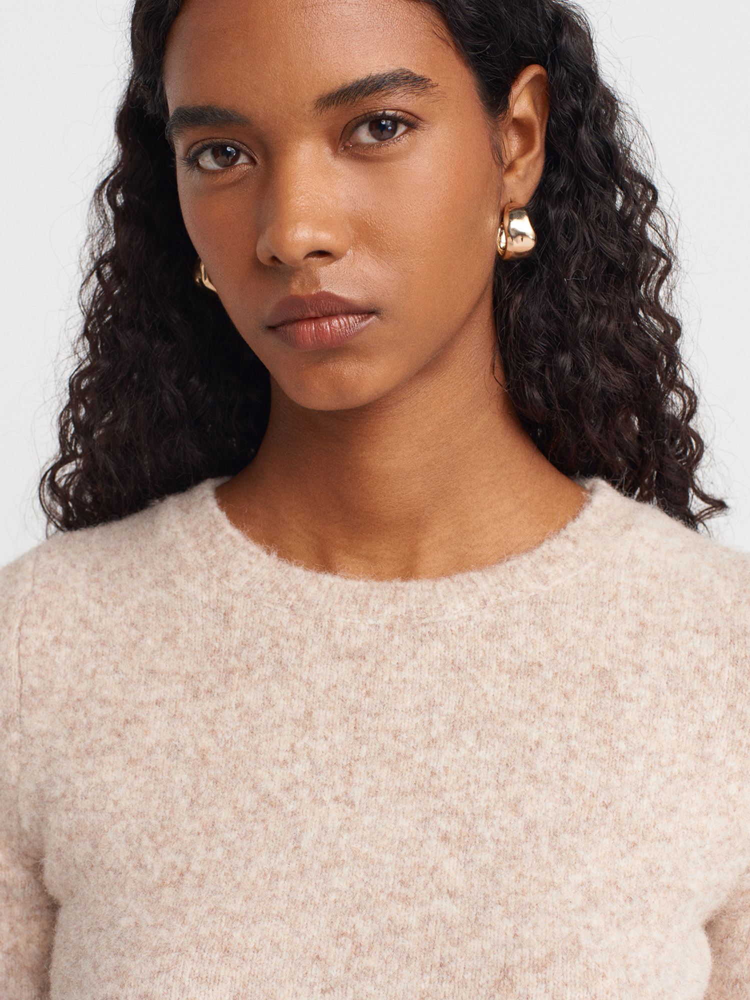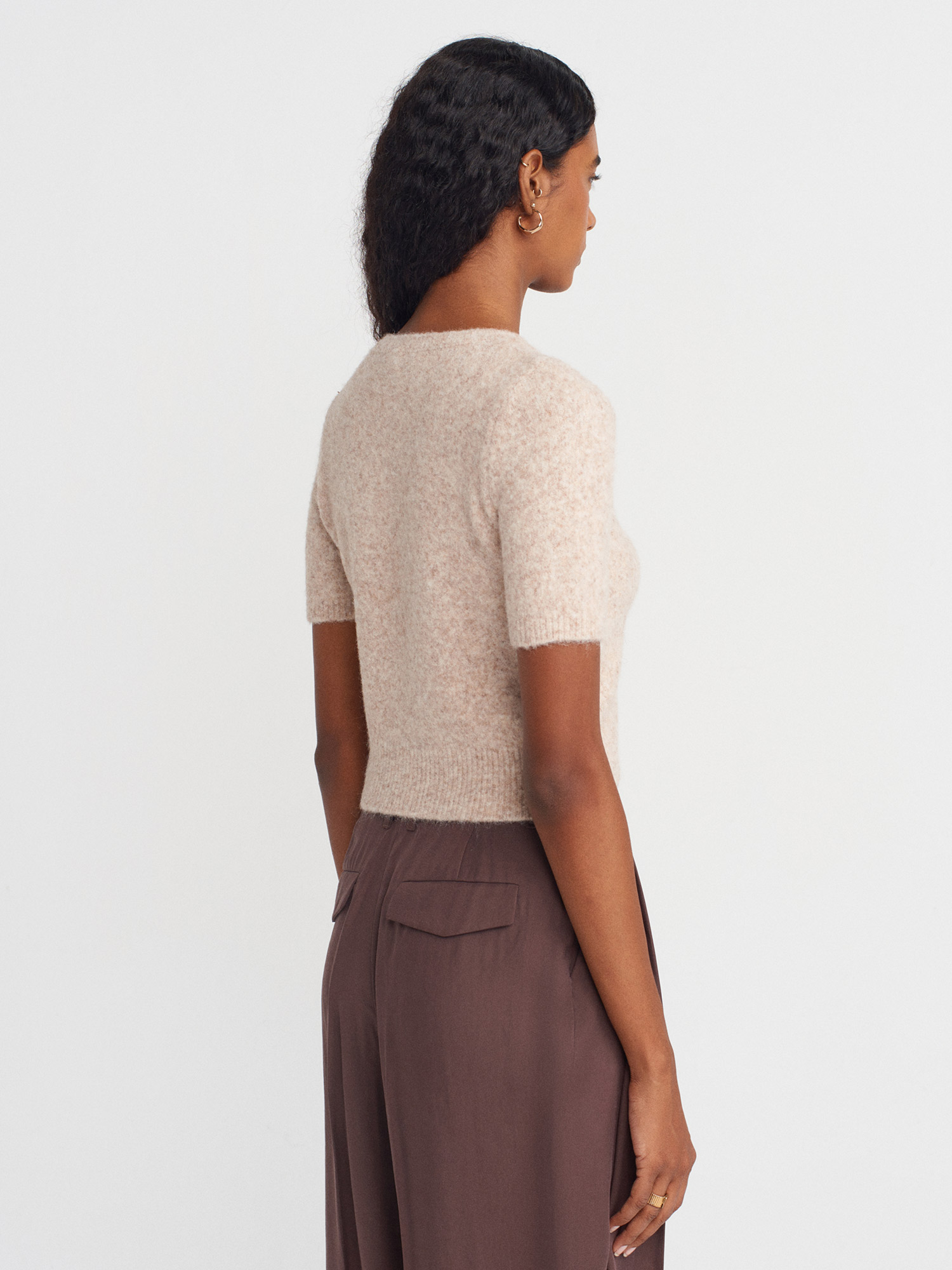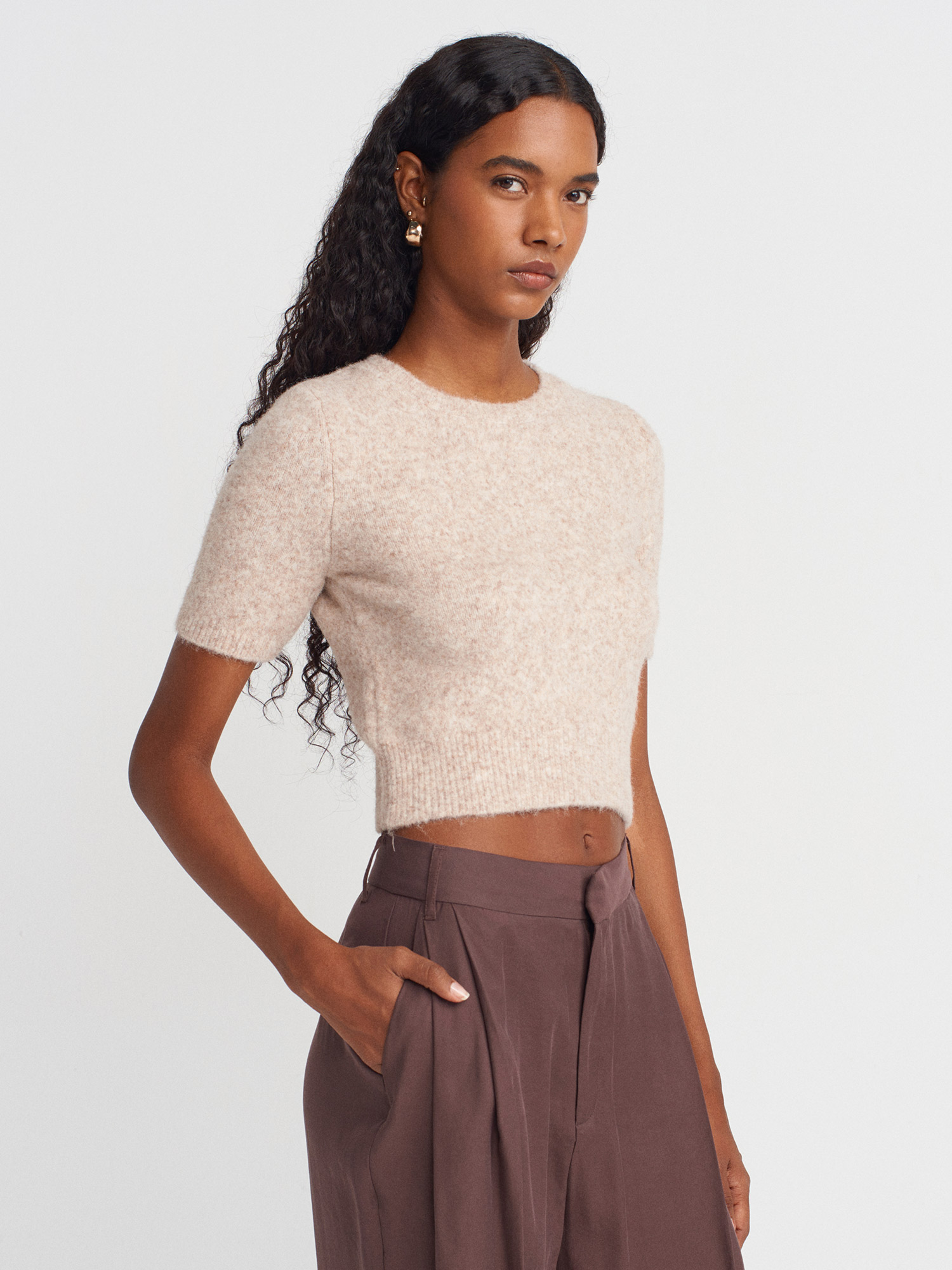 10651 Yün Karışımlı Kısa Kollu Triko Kazak-Bej Melanj