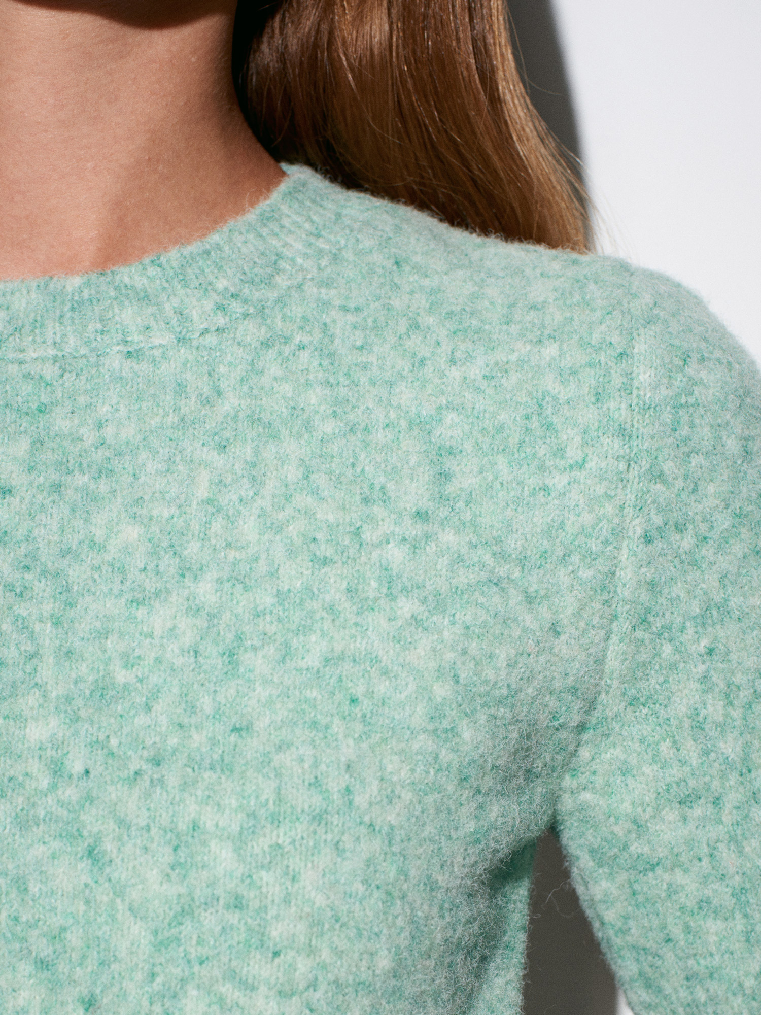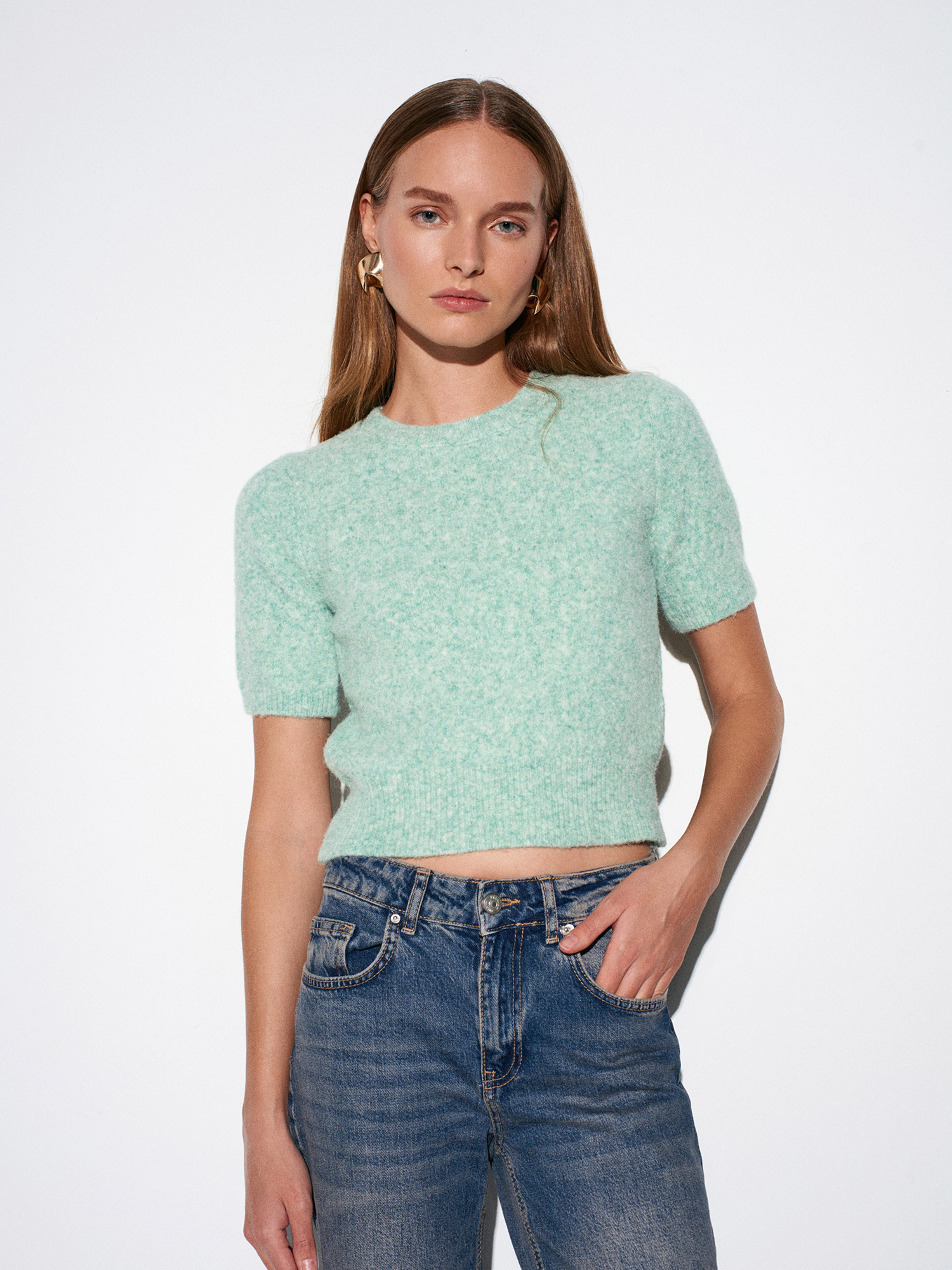 10651 Yün Karışımlı Kısa Kollu Triko Kazak-Mint