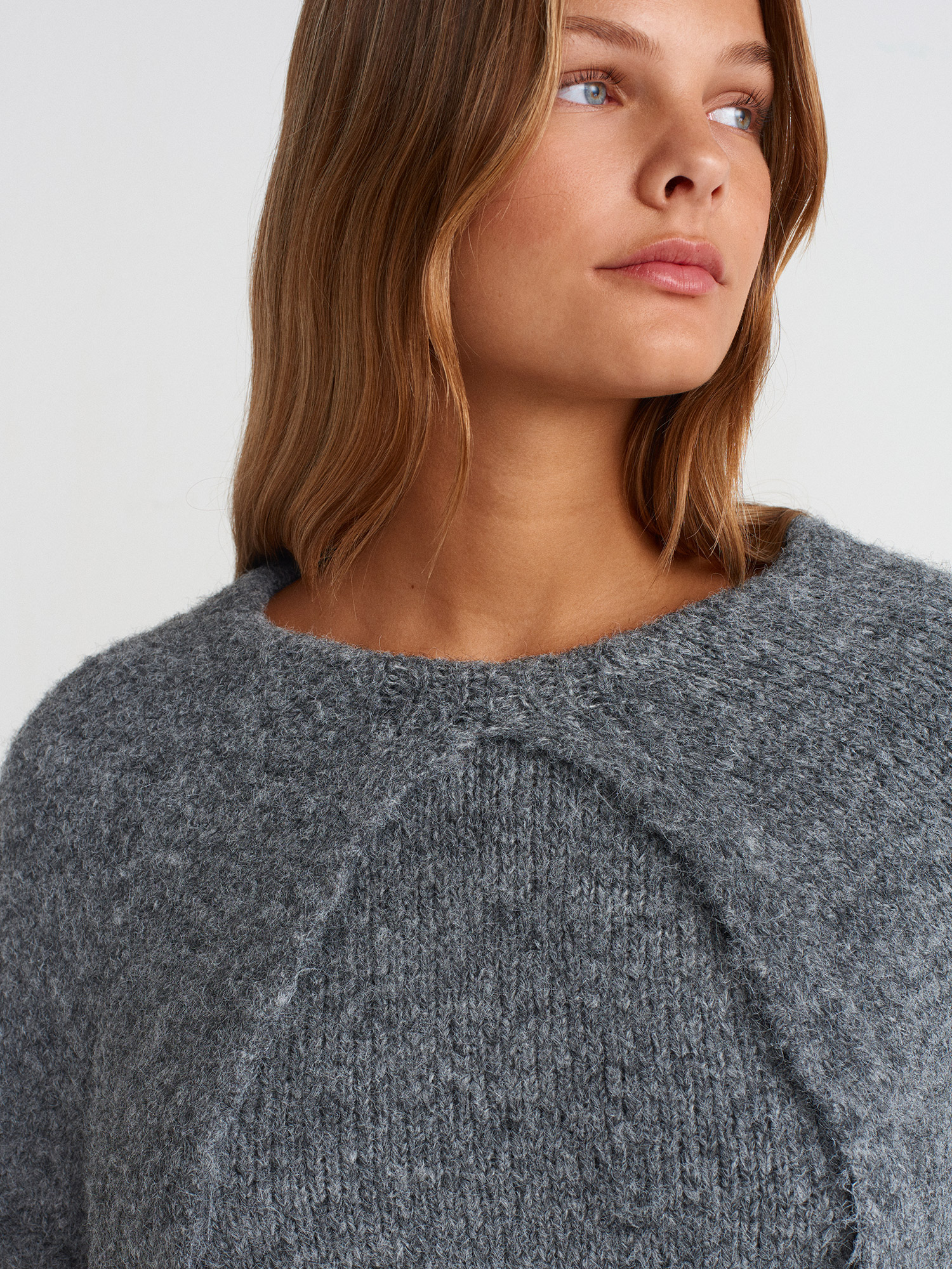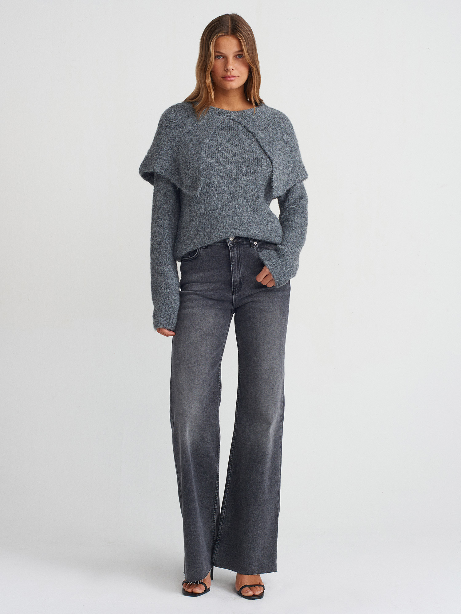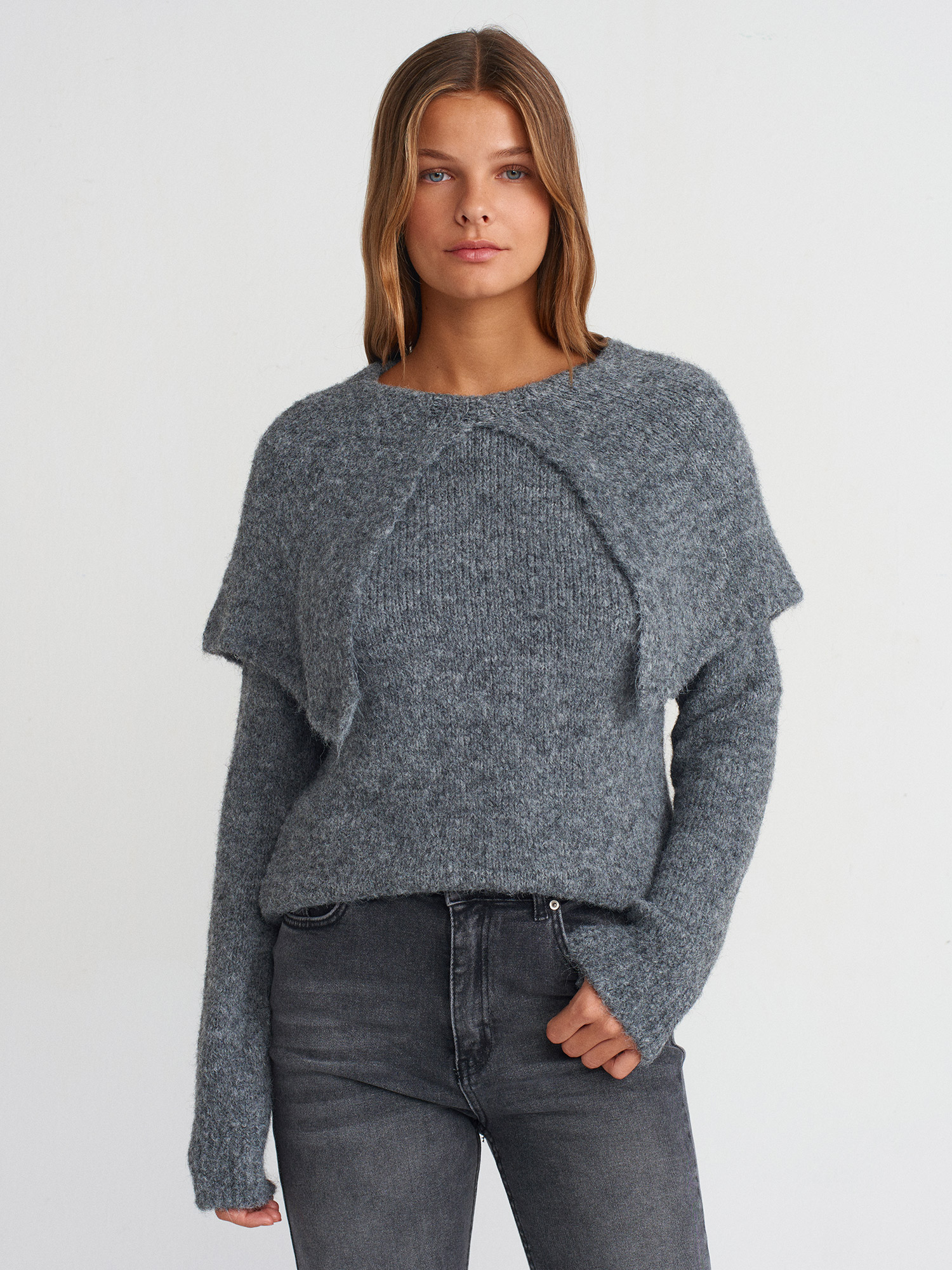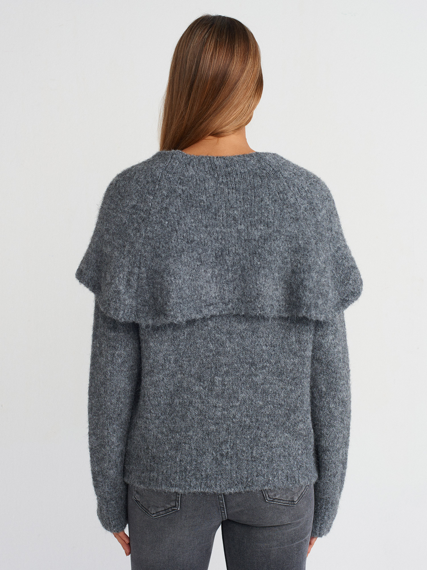 10652 Yumuşak Dokulu Pelerin Detaylı Triko Kazak-Füme M.