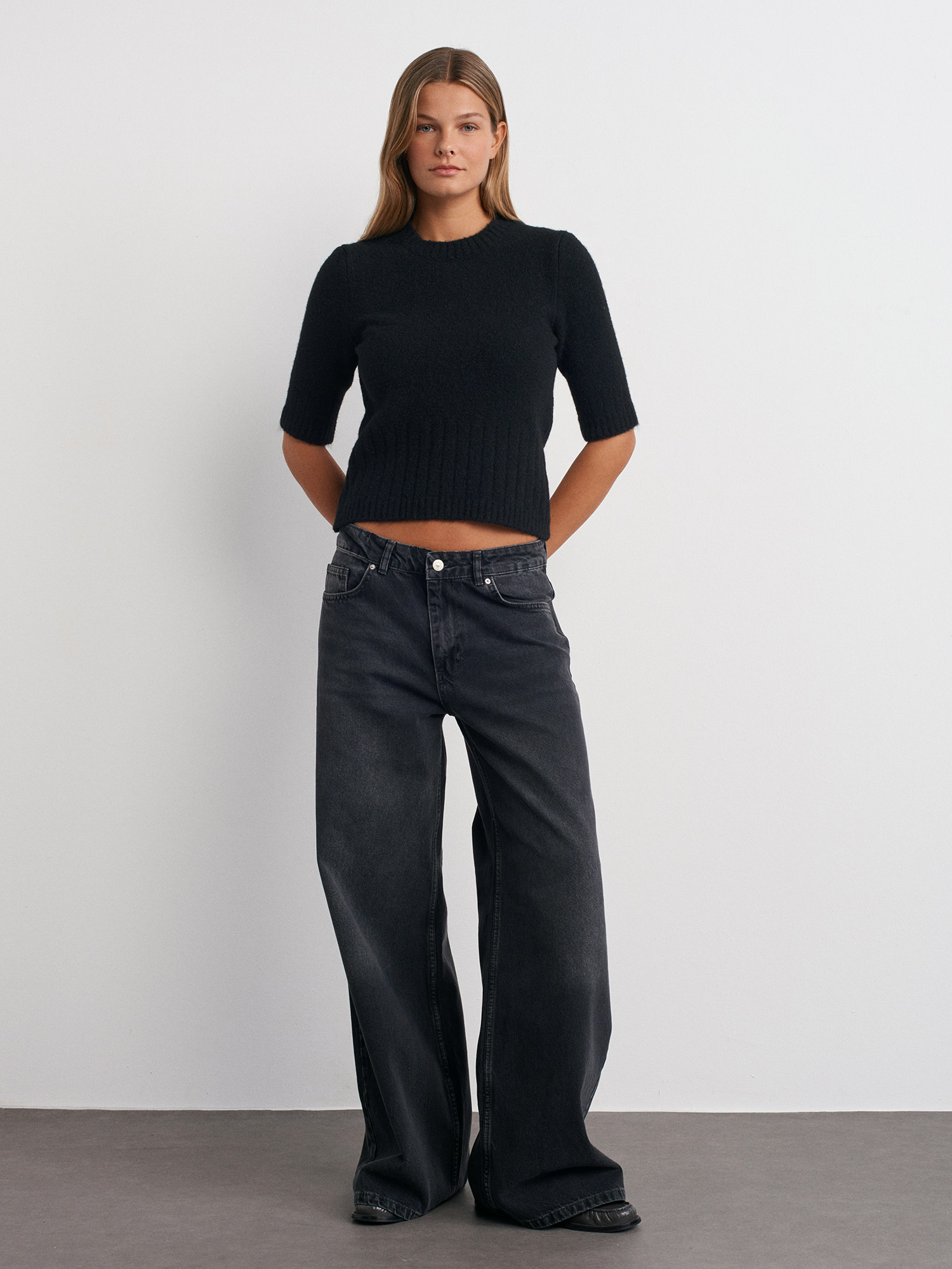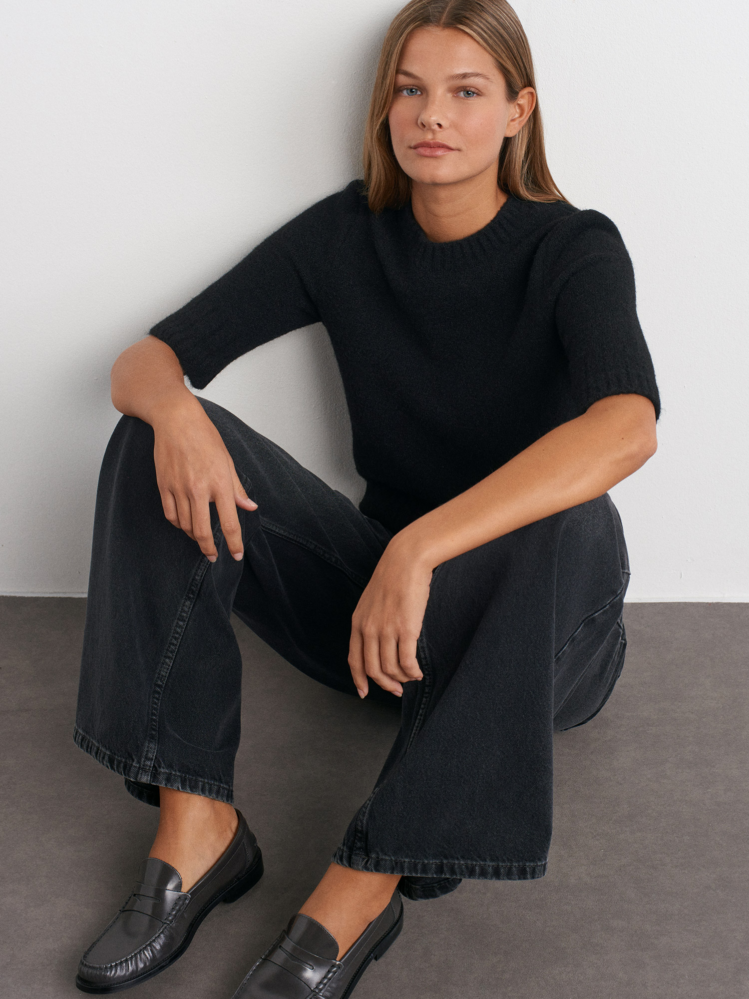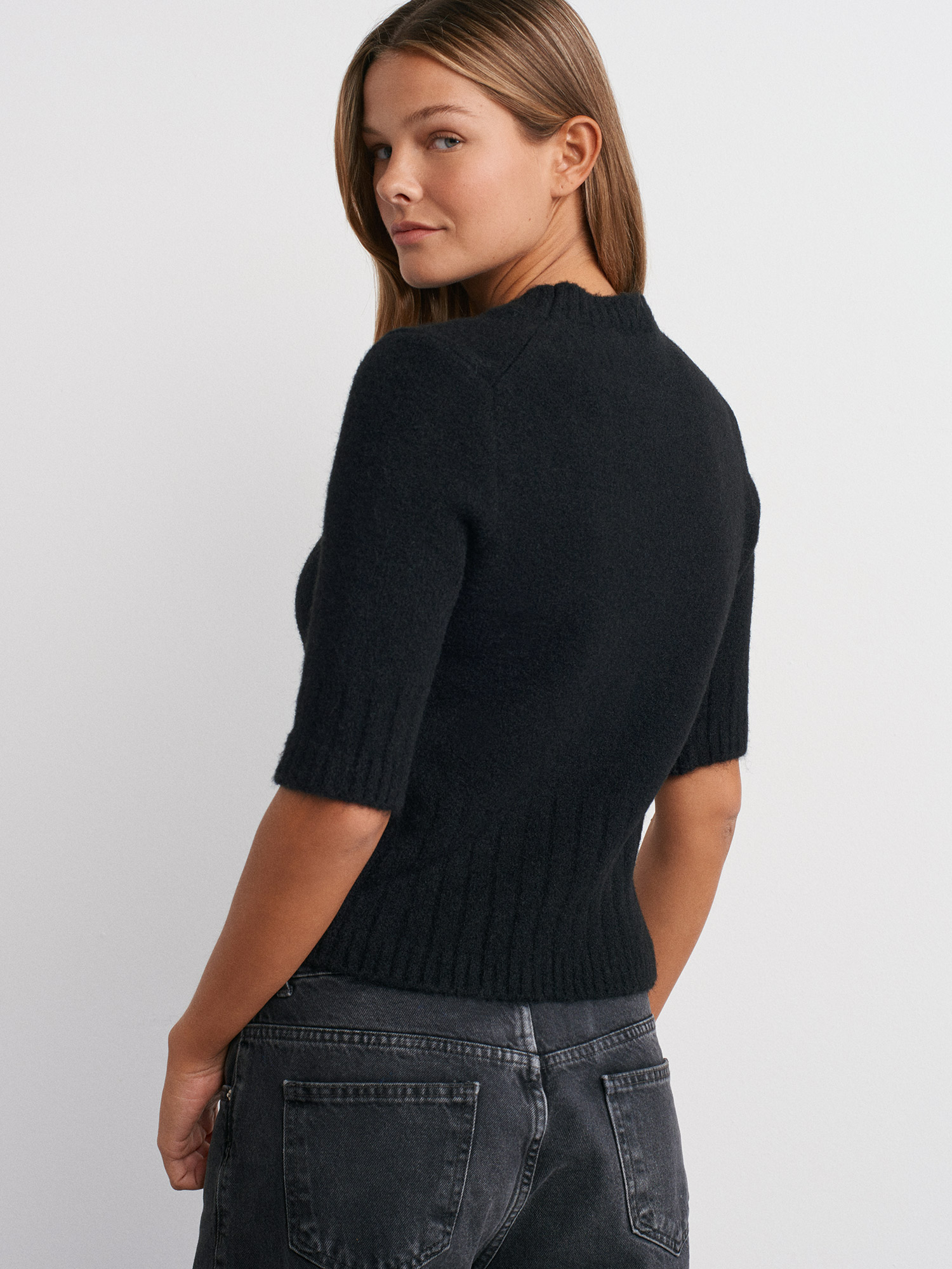 10654 Bisiklet Yaka Yumuşak Dokulu Kısa Kol Triko Kazak-Siyah