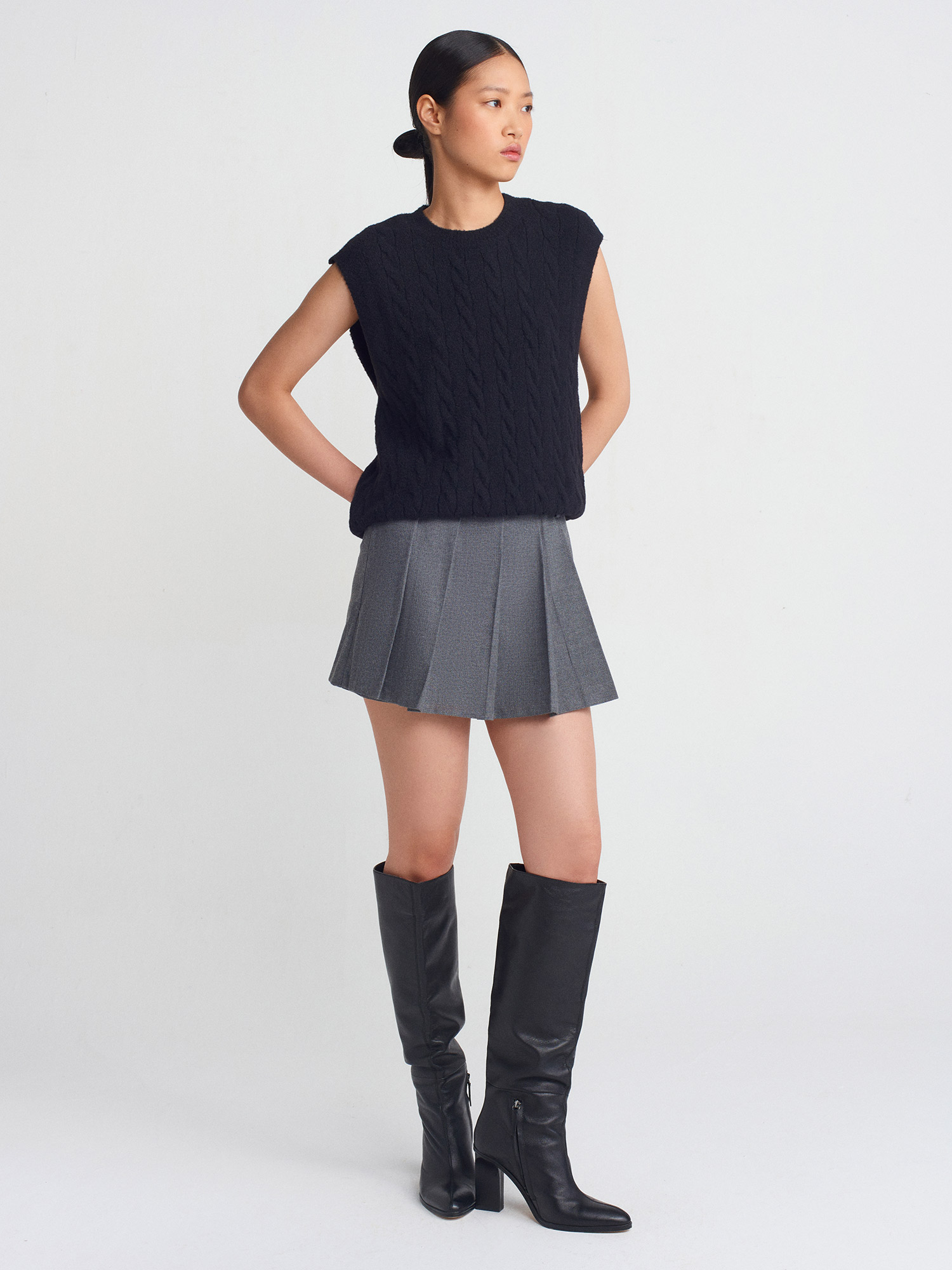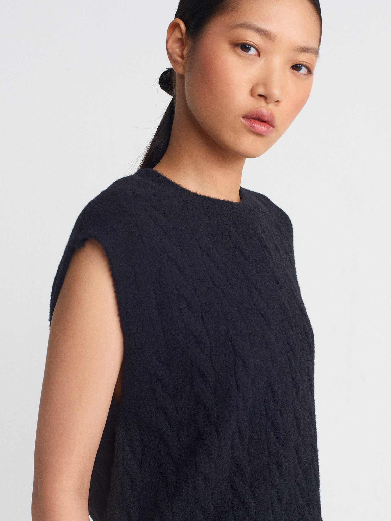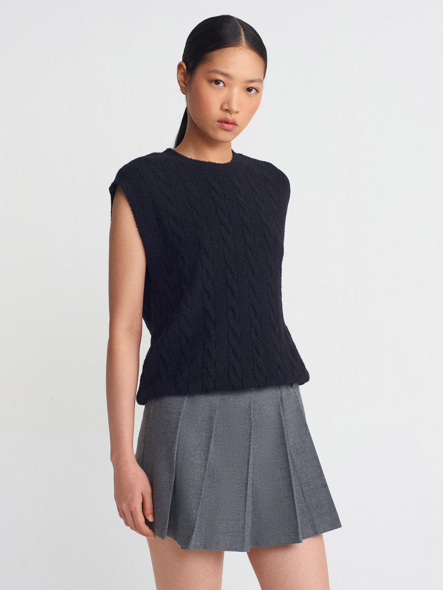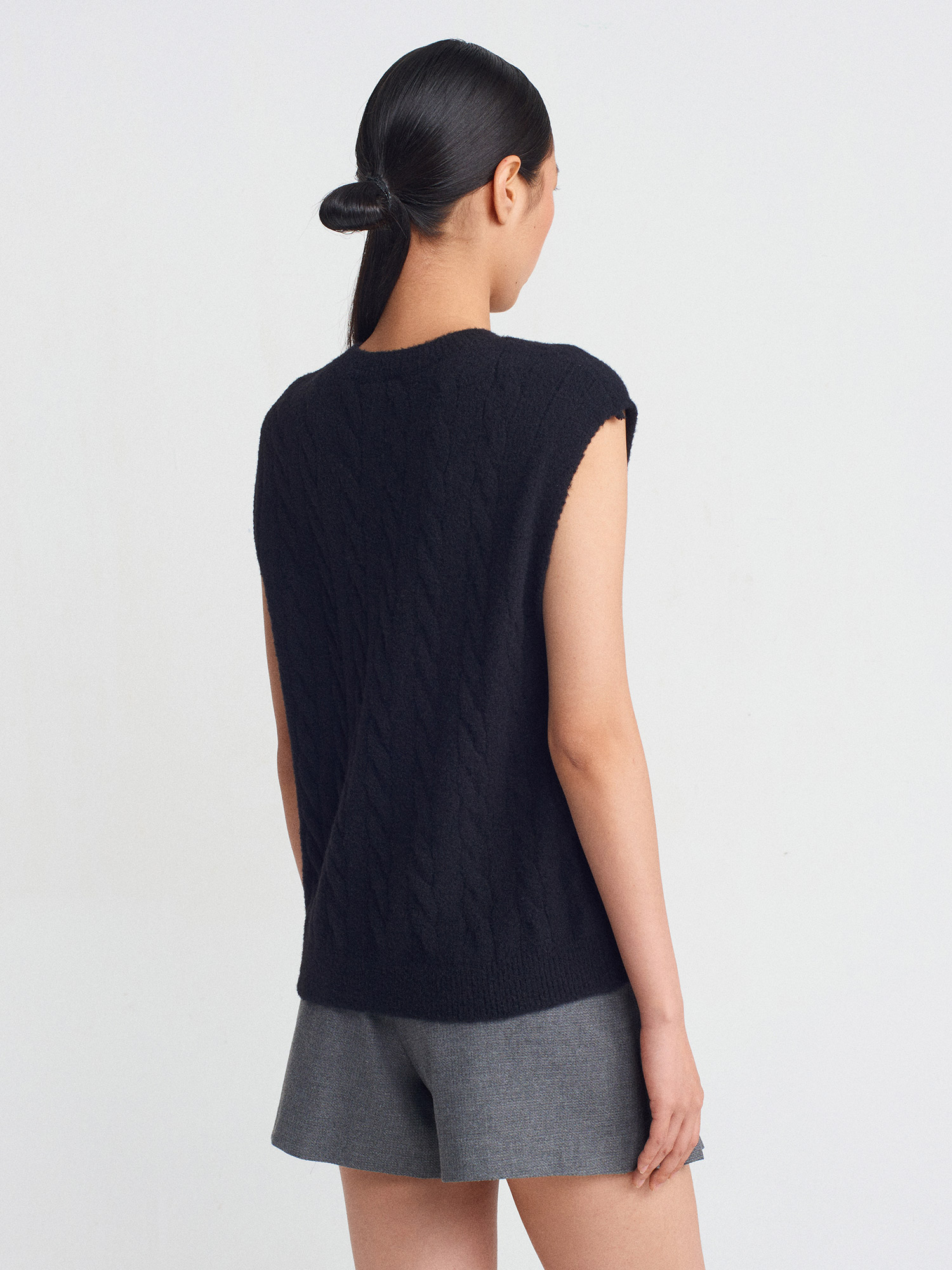 10674 Bisiklet Yaka Saç Örgü Yumuşak Dokulu Triko Süveter-Siyah