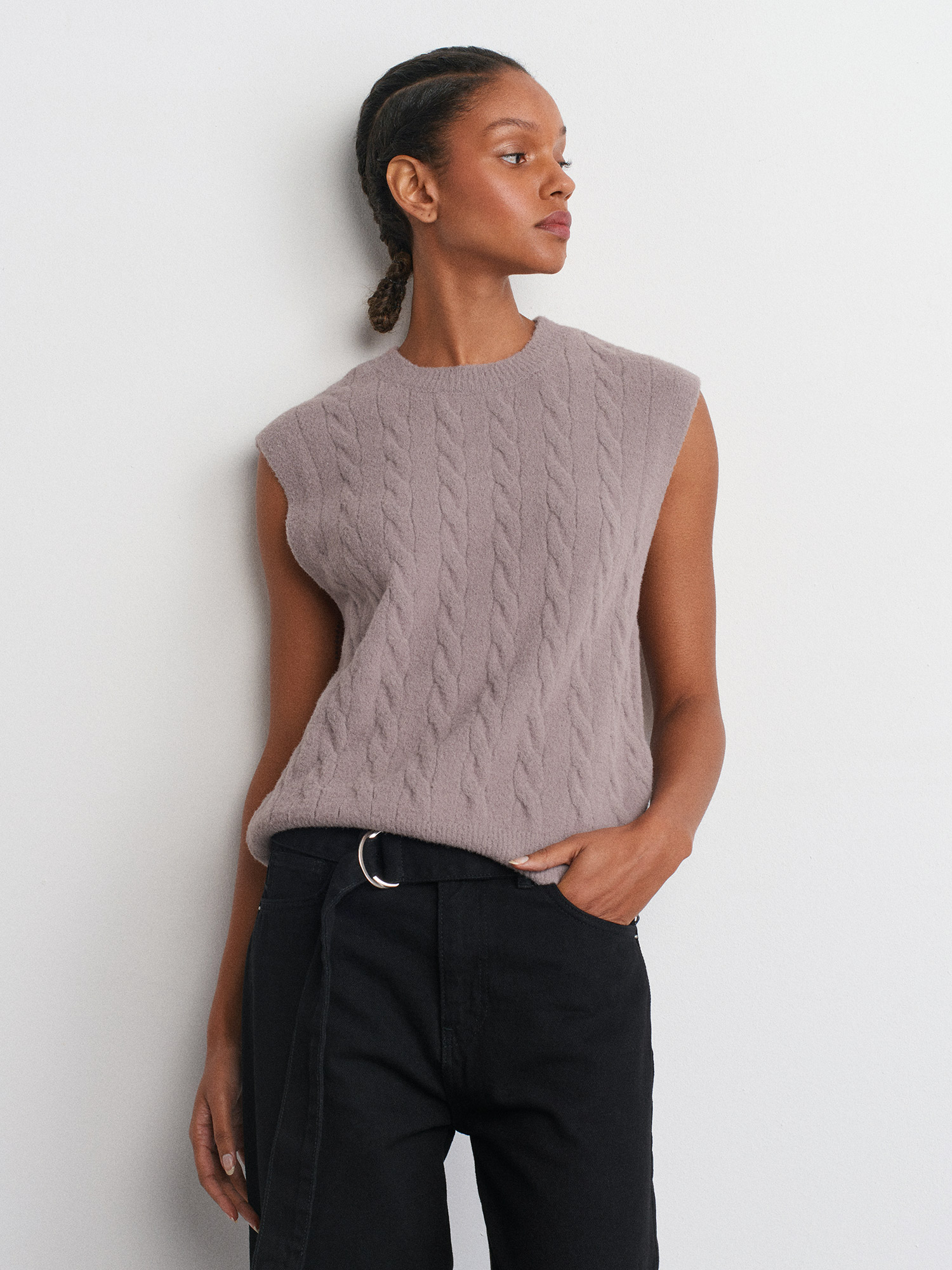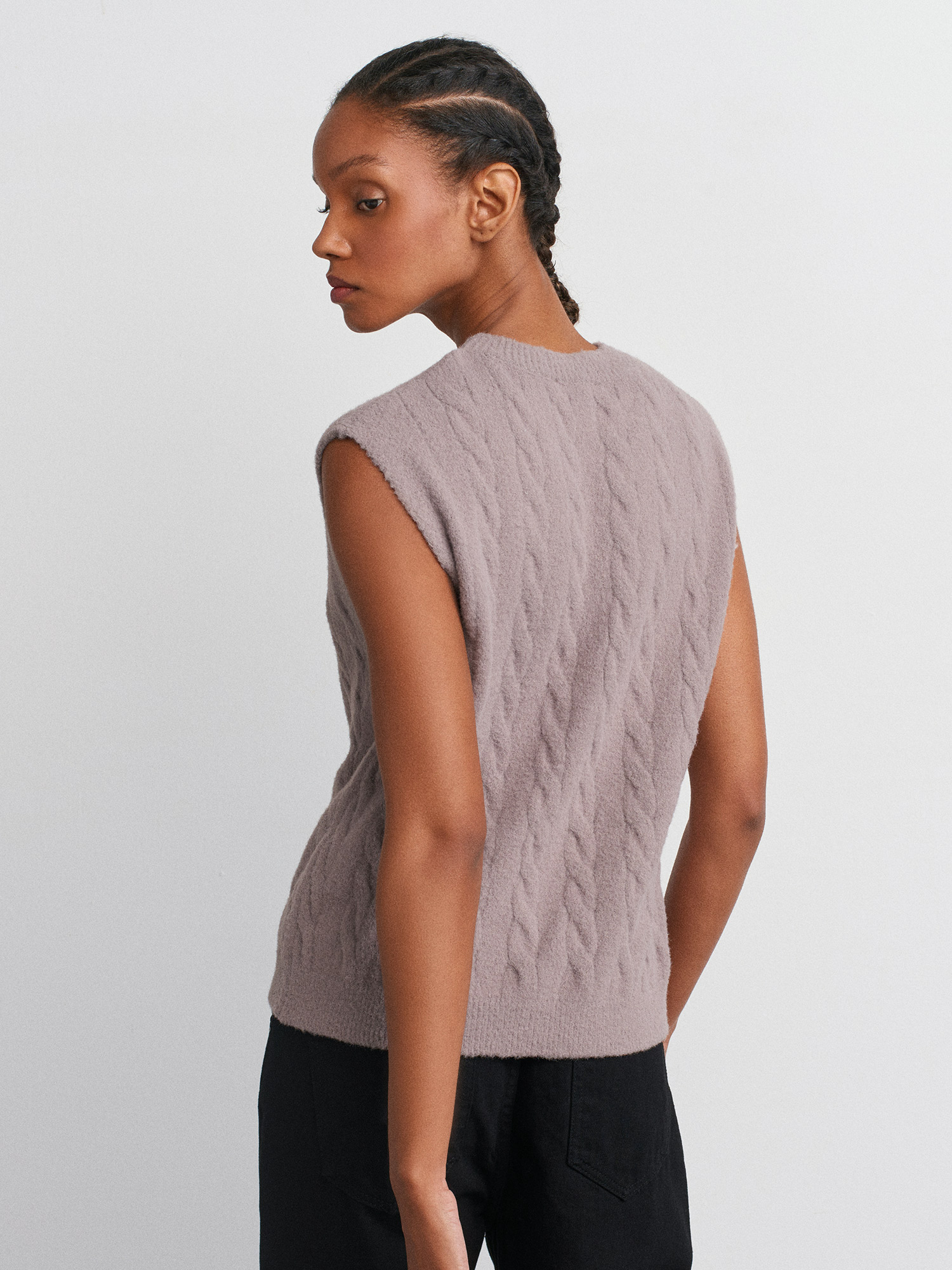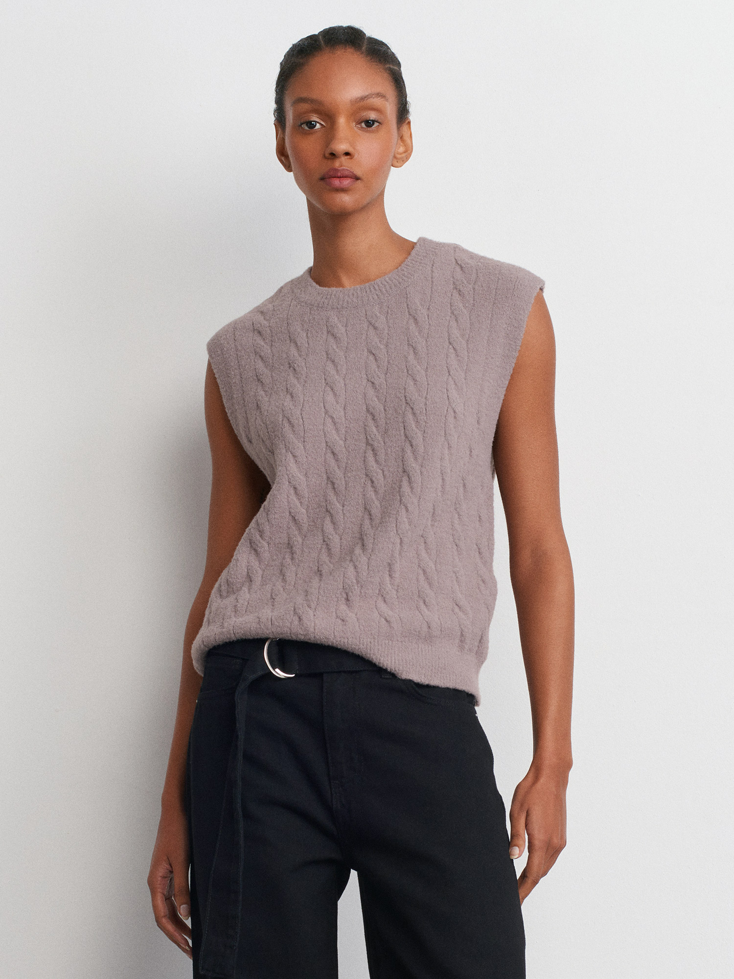 10674 Bisiklet Yaka Saç Örgü Yumuşak Dokulu Triko Süveter-Vizon