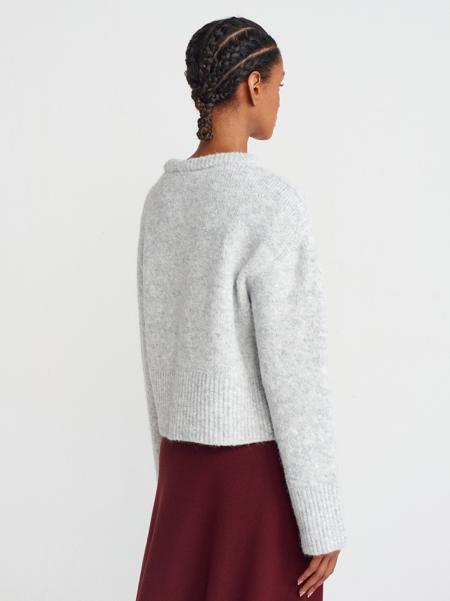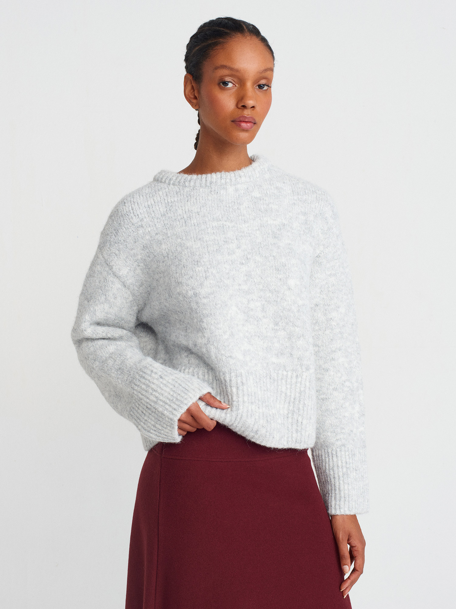10678 Bisiklet Yaka Yumuşak Triko Kazak-Gri Melanj