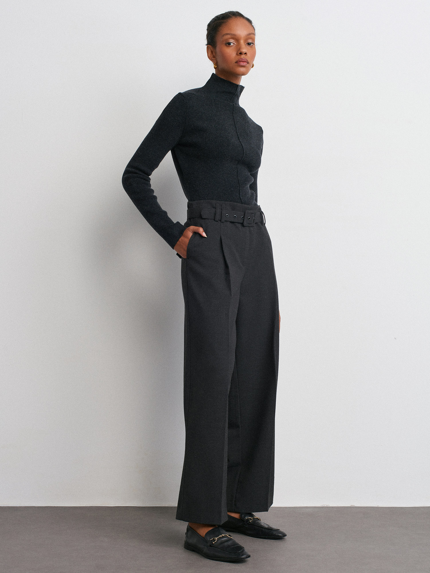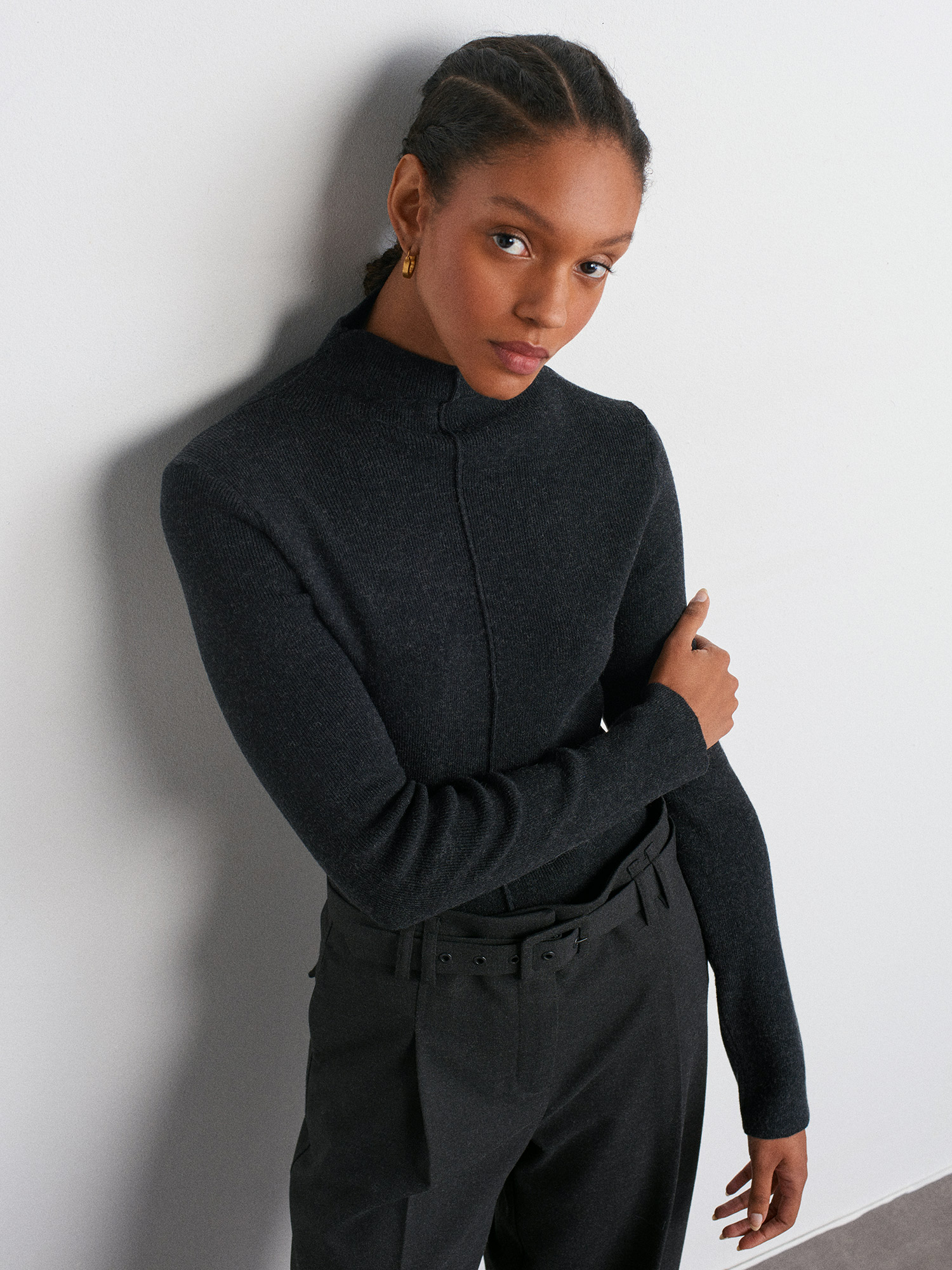 10682 Dik Yaka Dikiş Detaylı Triko Kazak-Antrasit