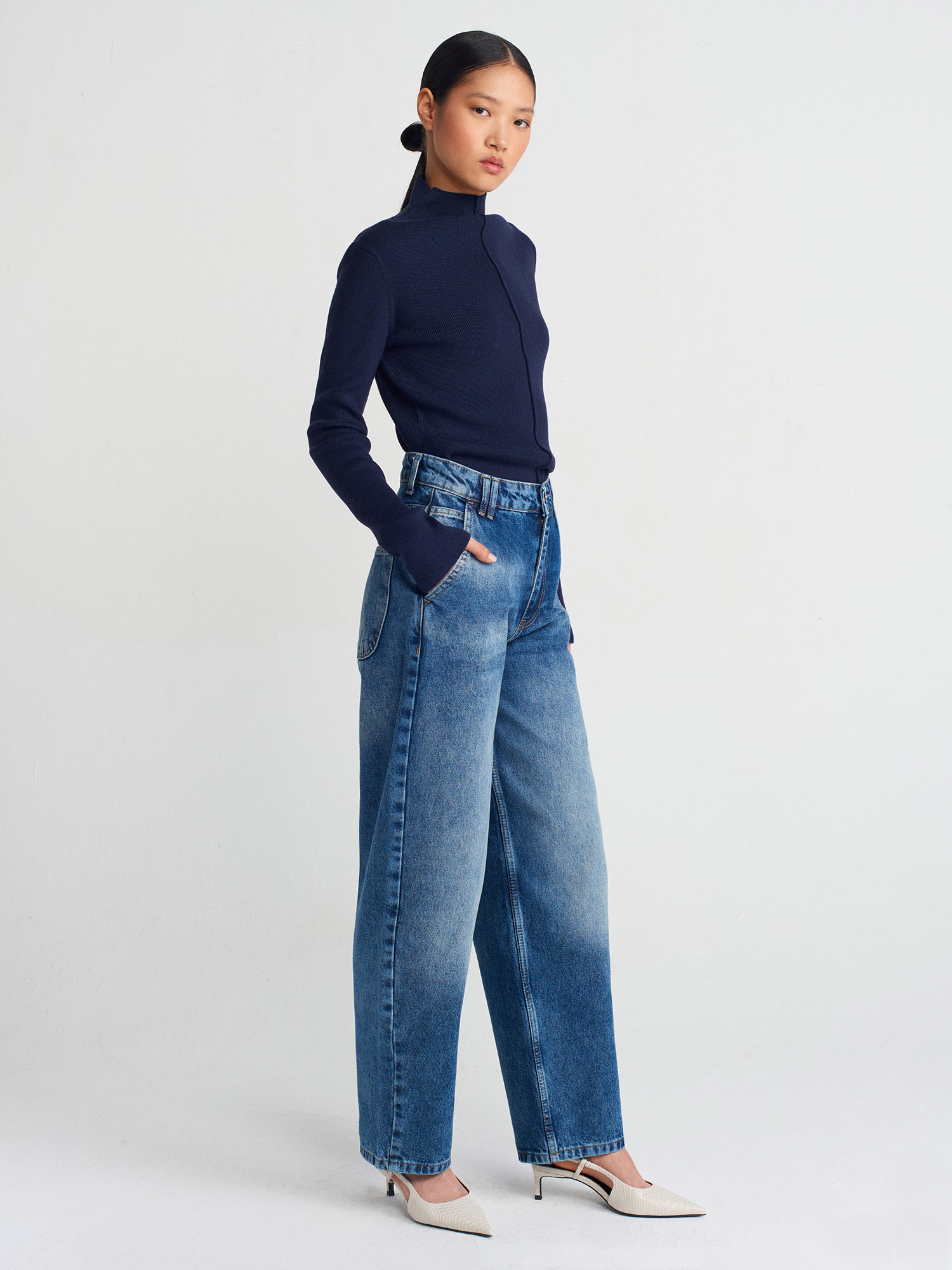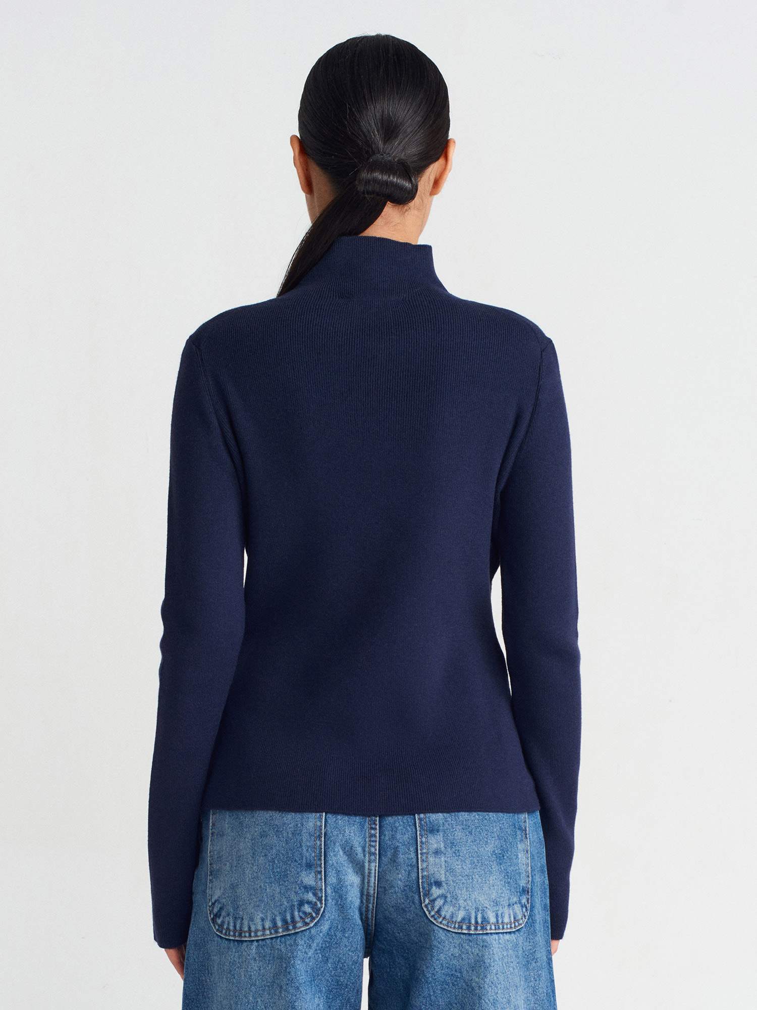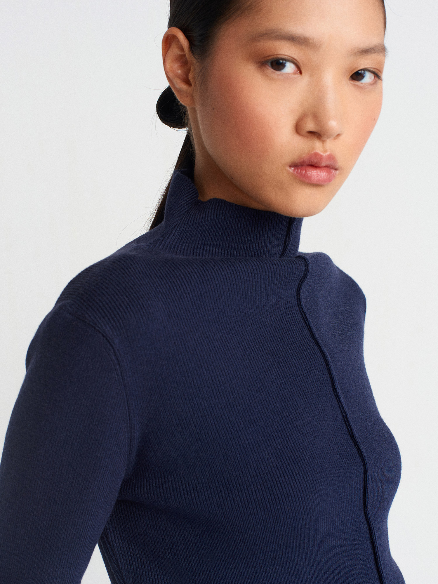 10682 Dik Yaka Dikiş Detaylı Triko Kazak-Lacivert