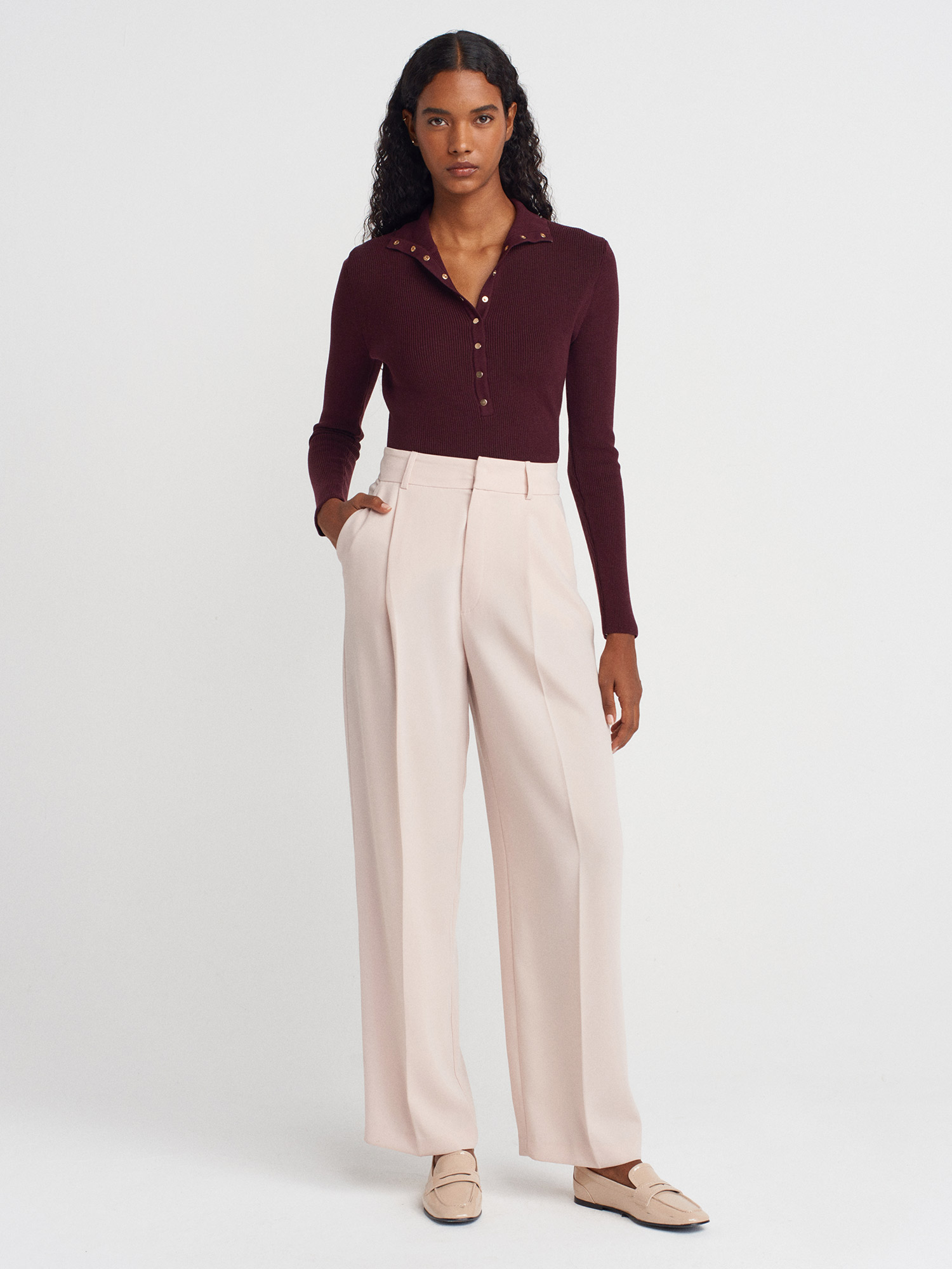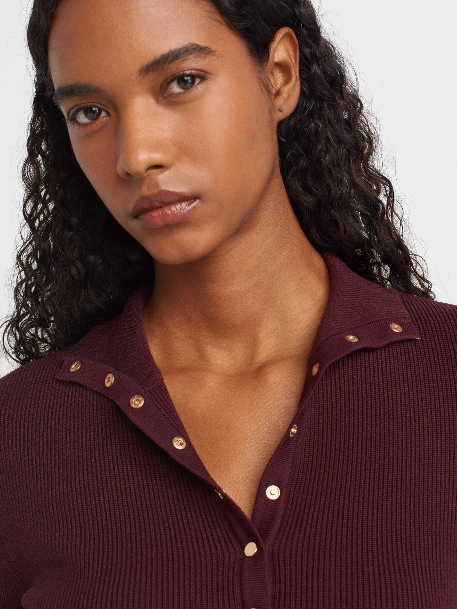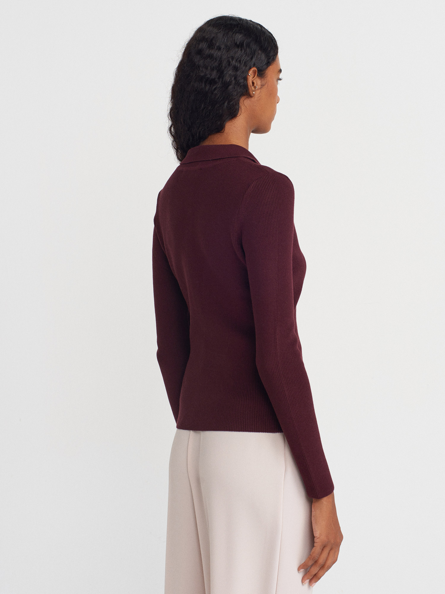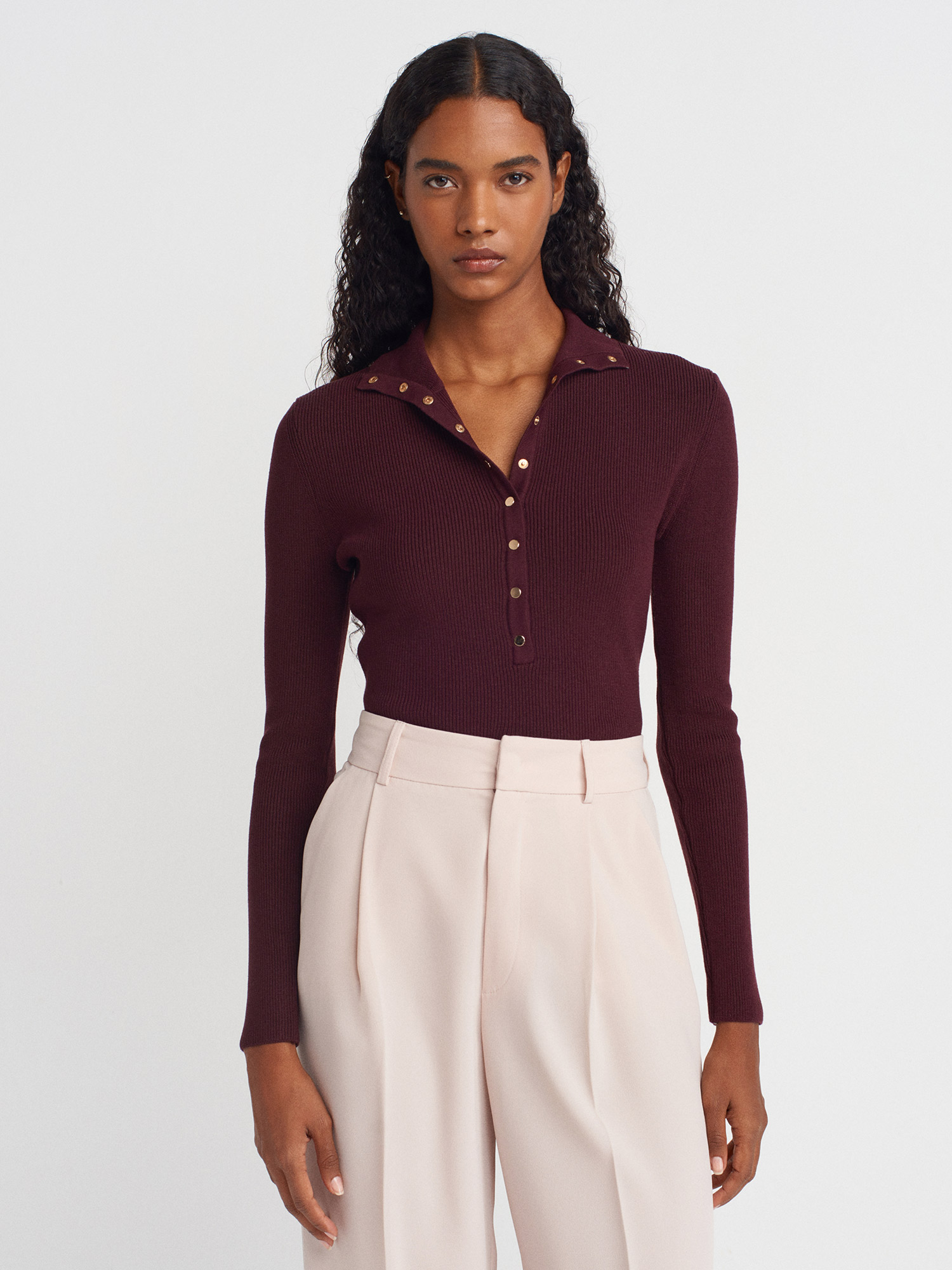 10686 Dik Yaka Çıtçıtlı Triko Kazak-Bordo