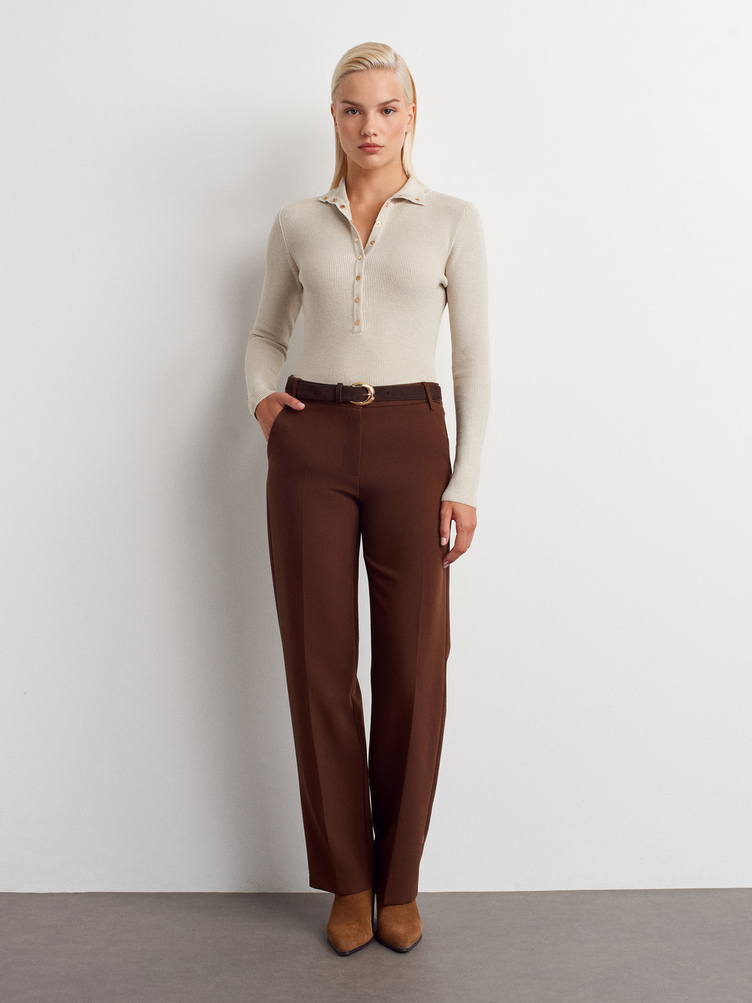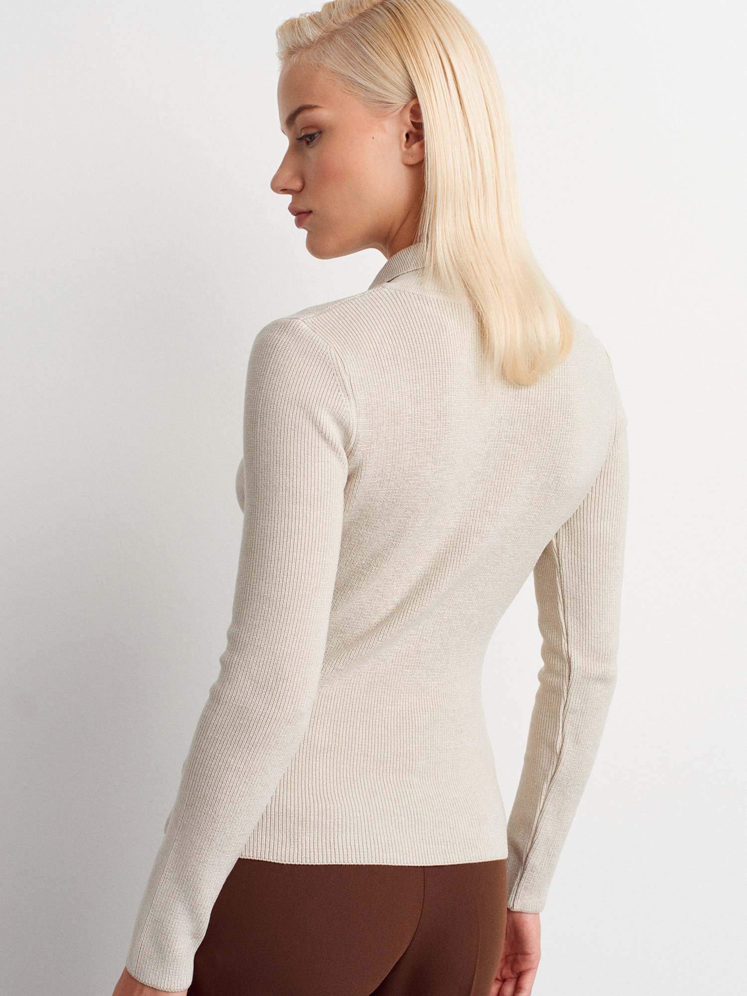 10686 Dik Yaka Çıtçıtlı Triko Kazak-Taş