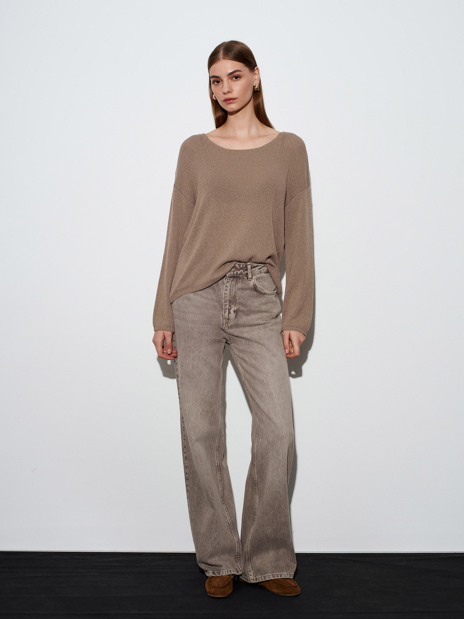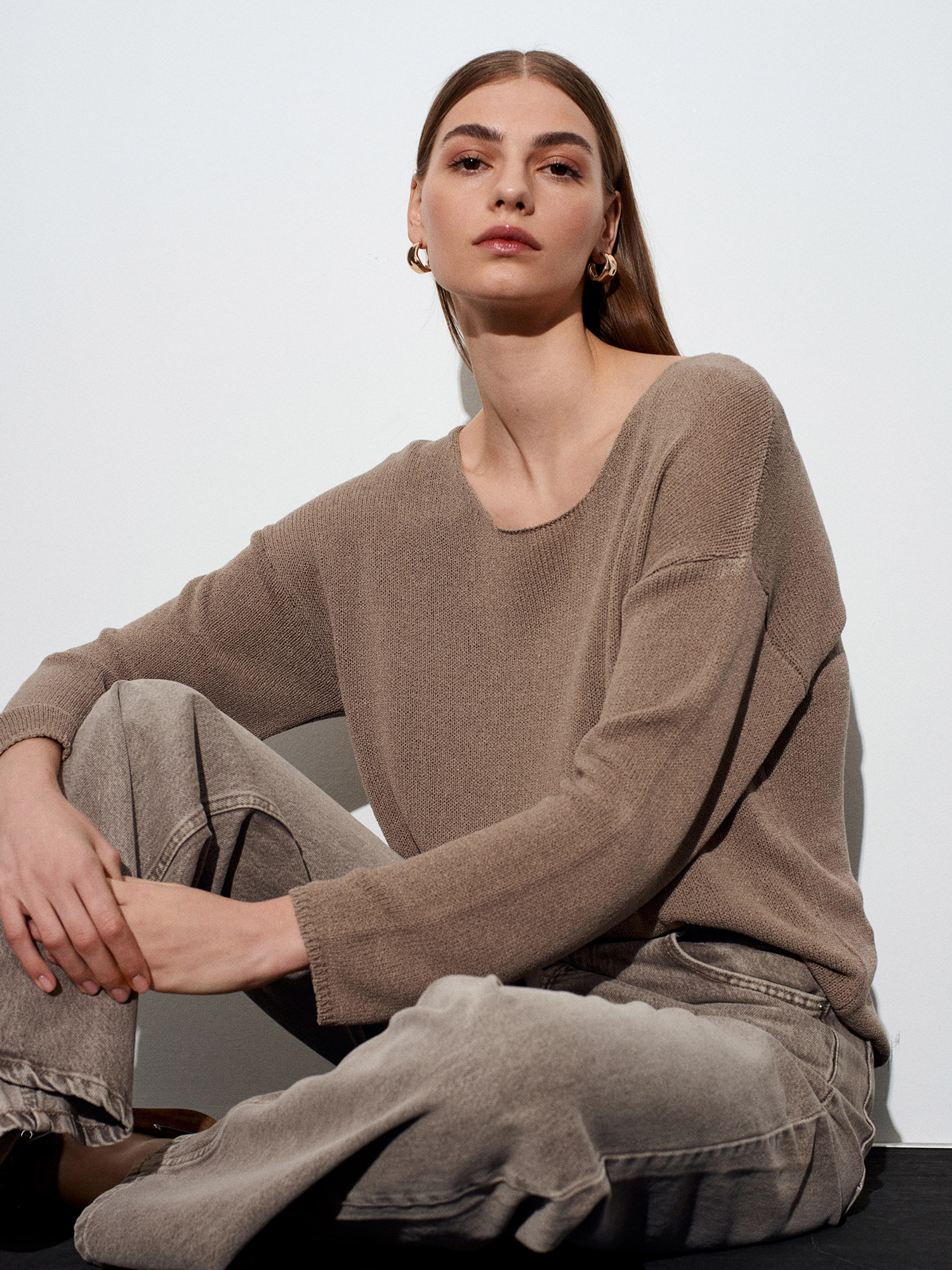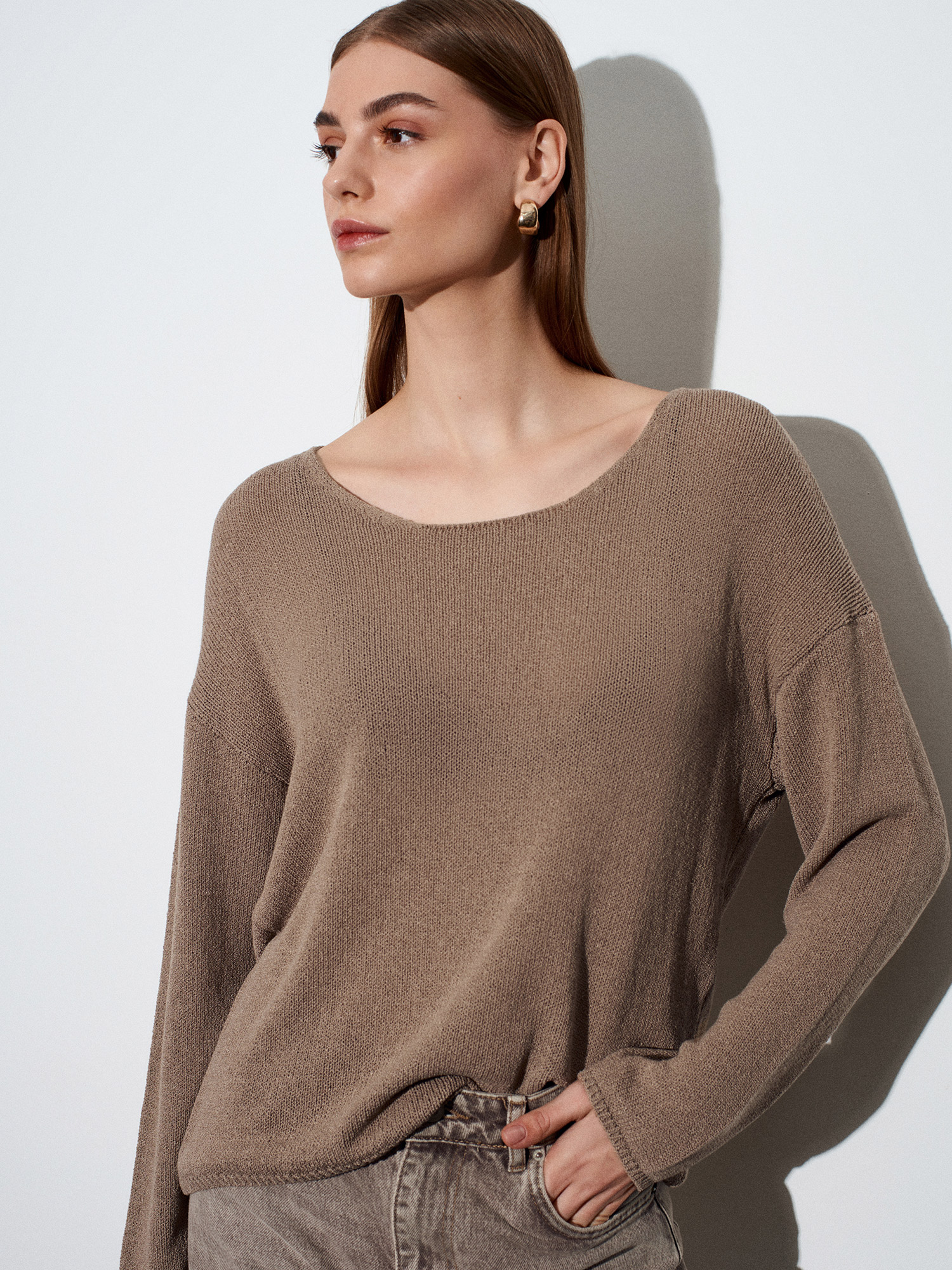 10706 Oval Yaka Dökümlü Kazak-Koyu Vizon